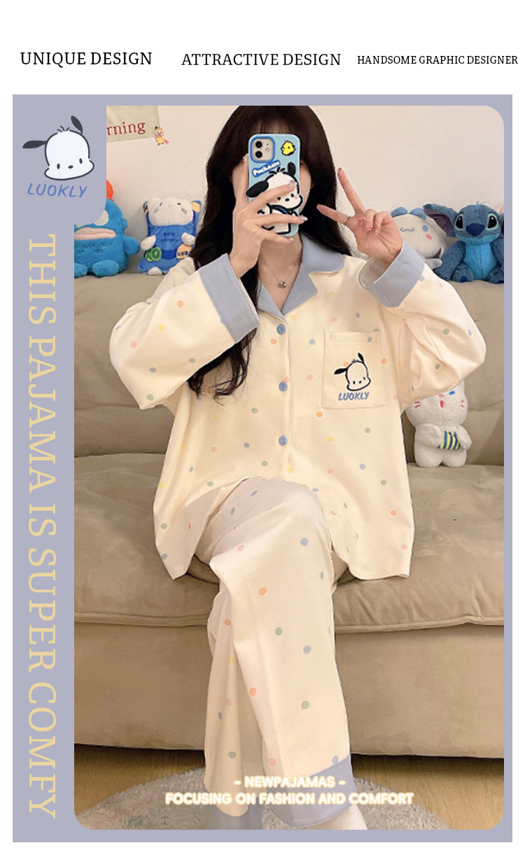 • CMK168 폴카 도트 토끼 가디건 긴팔 슈트