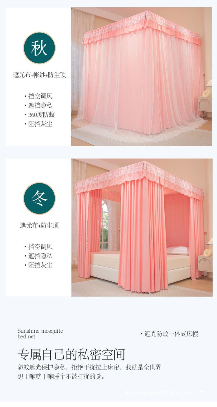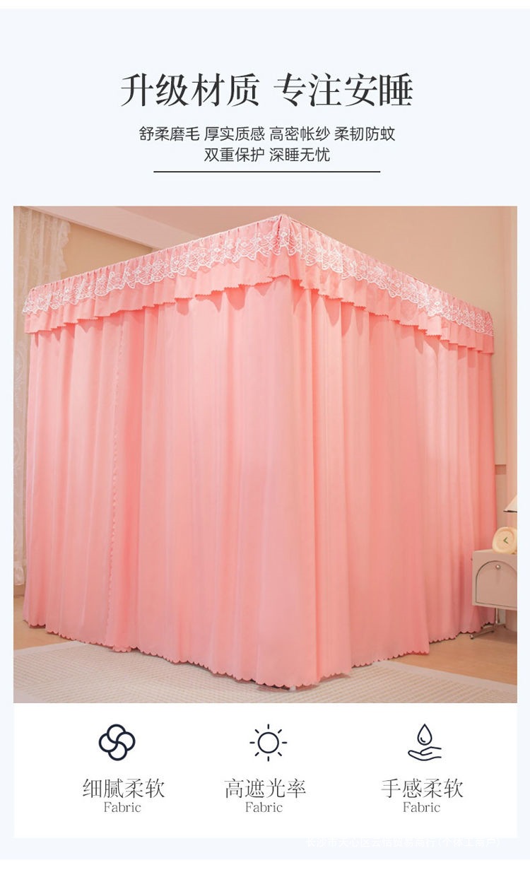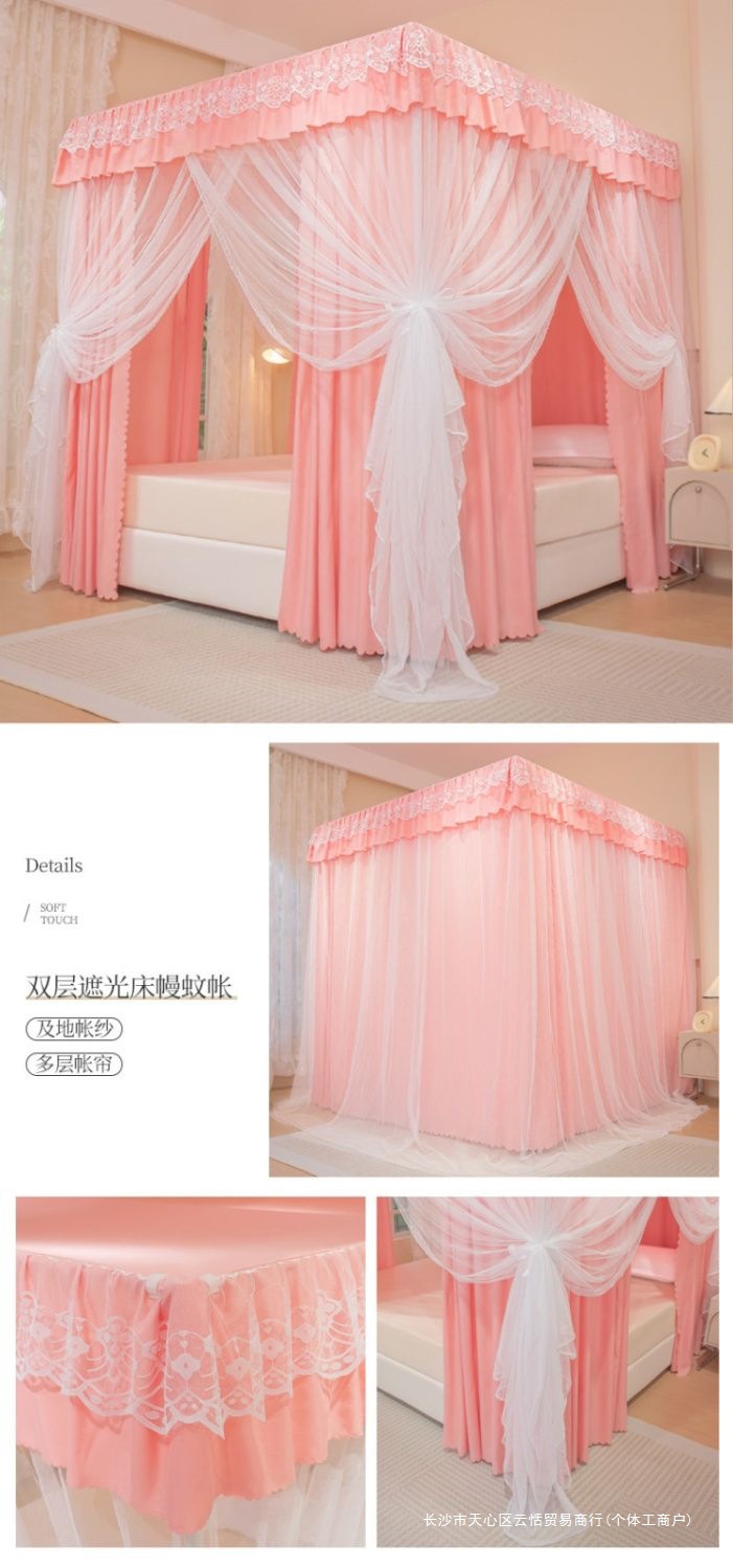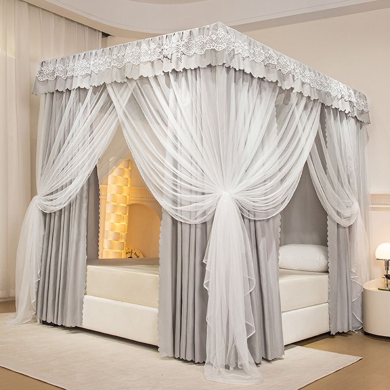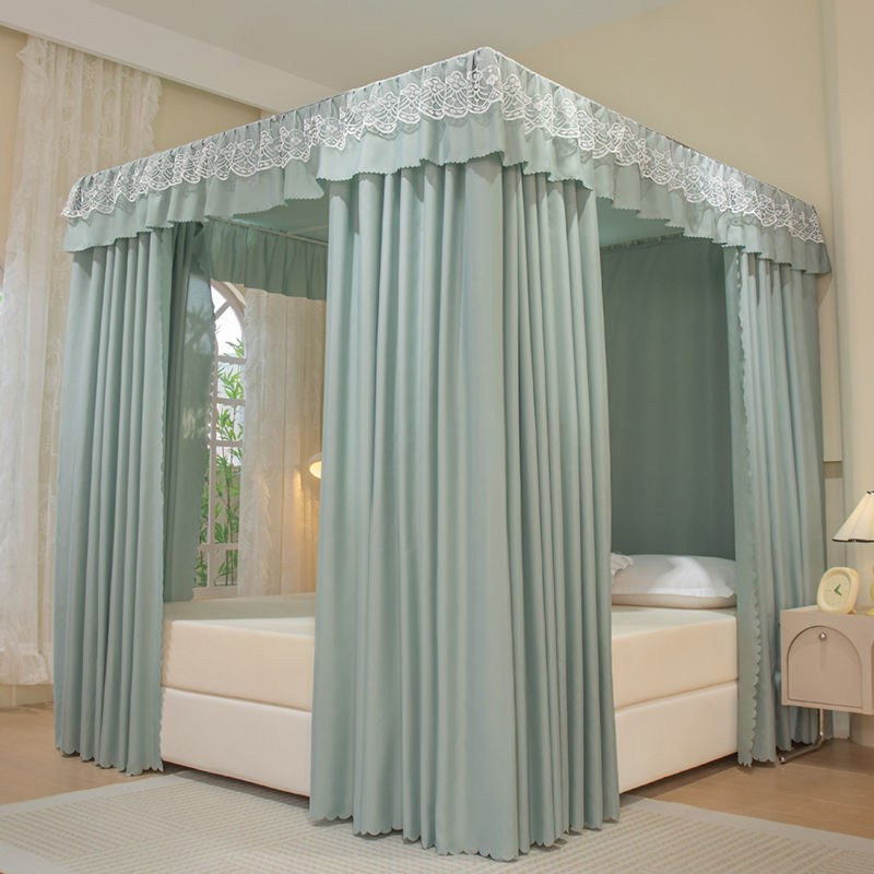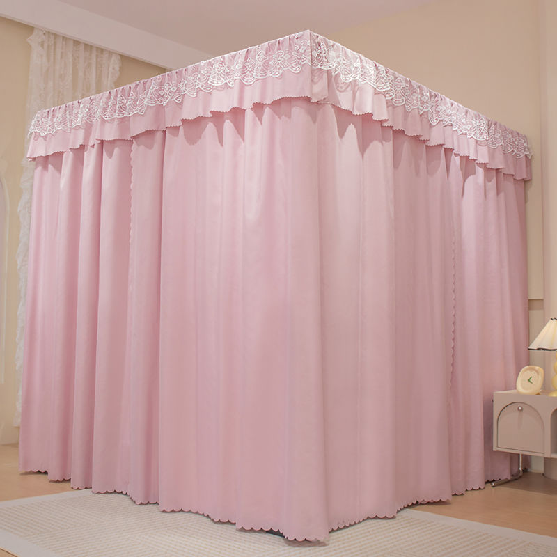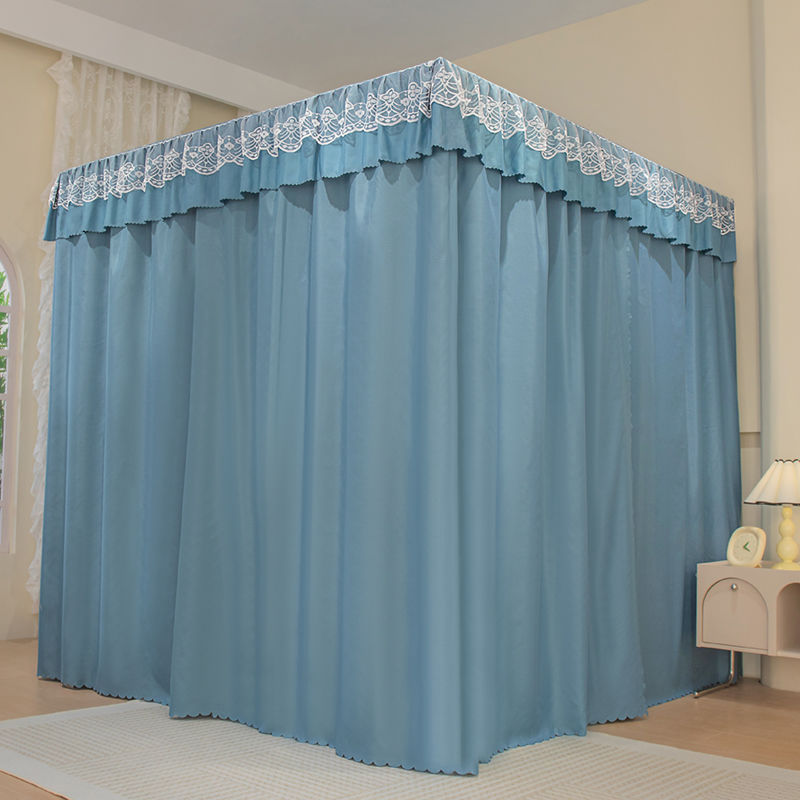모기장 침대 커튼, 가정용 침실용 차광, 스탠드가 있는 일체형, 암호화 및 두꺼운 궁전 바닥 침대 커튼, 방진 상단 천스토어 가기
