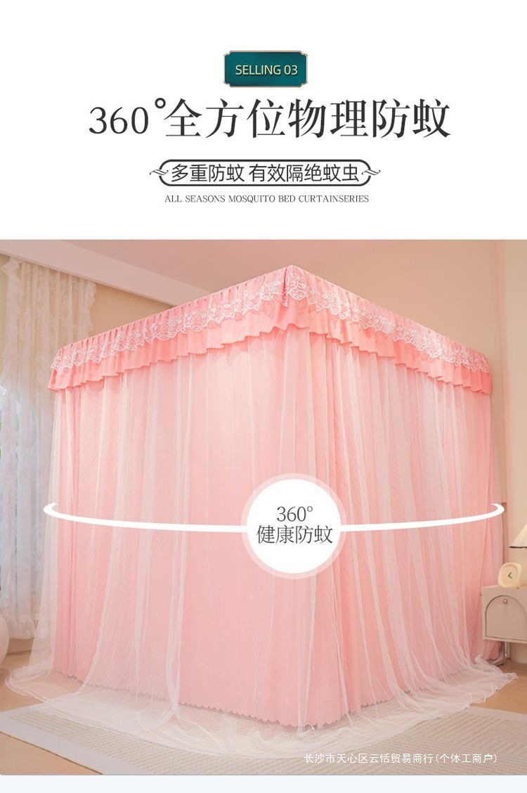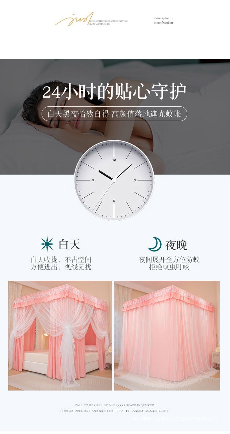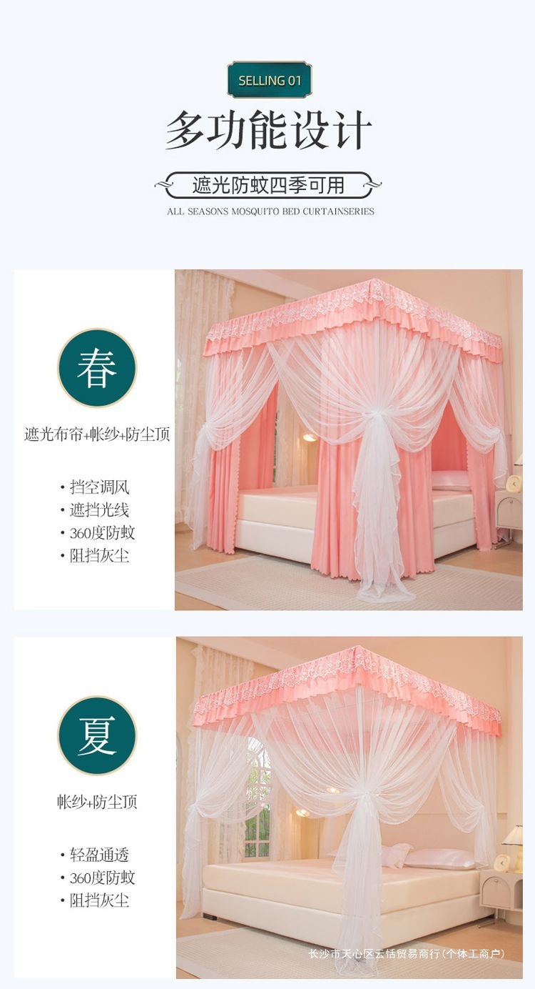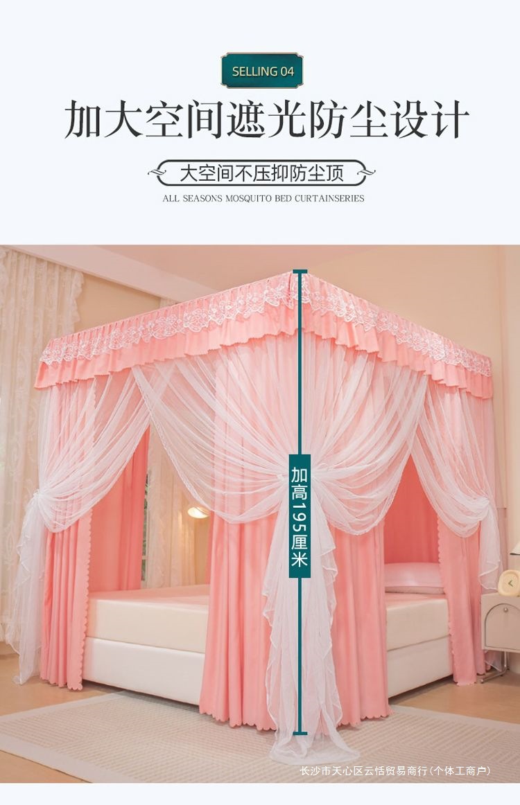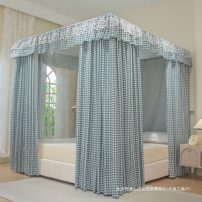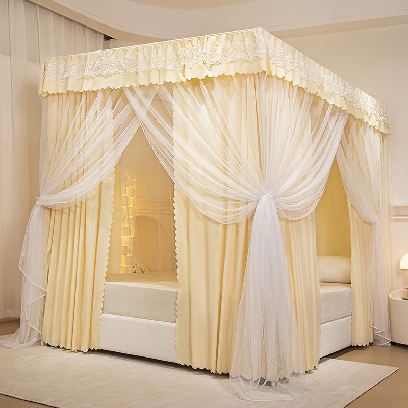 모기장 침대 커튼, 가정용 침실용 차광, 스탠드가 있는 일체형, 암호화 및 두꺼운 궁전 바닥 침대 커튼, 방진 상단 천스토어 가기