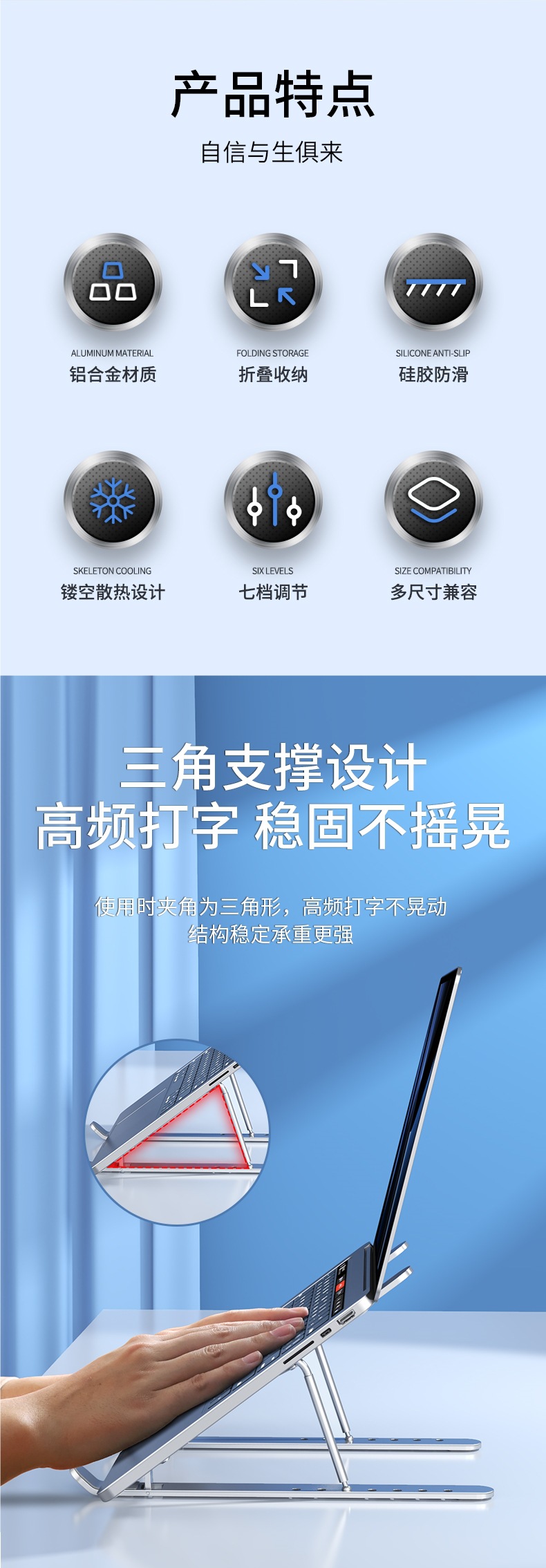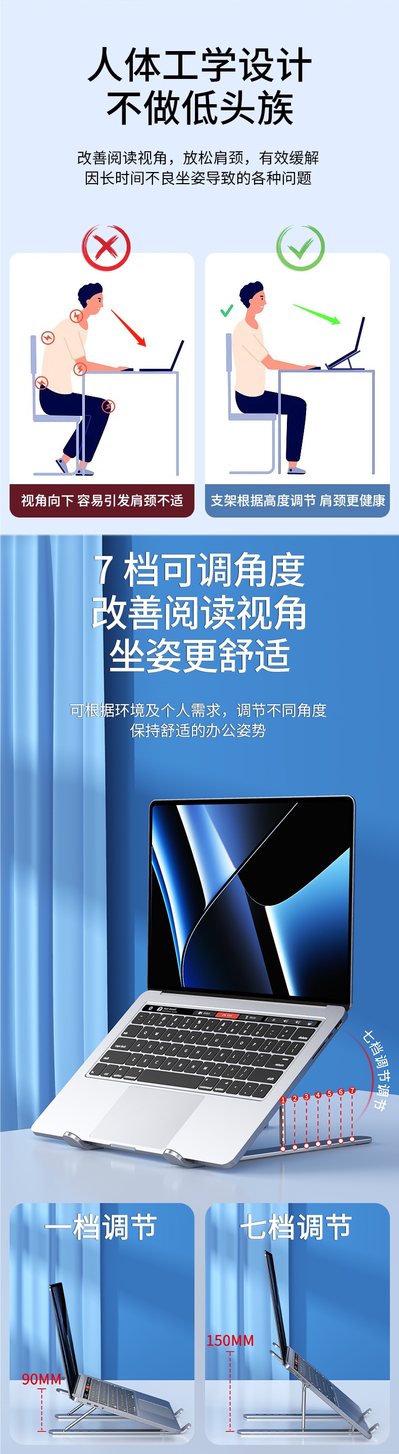 노트북 스탠드 브래킷 데스크탑 높이 라디에이터 접이식 휴대용 지지대 공중에 놓인 수직 조절 가능