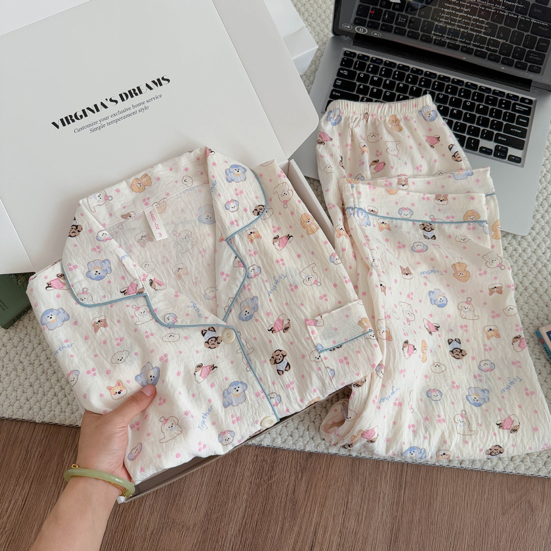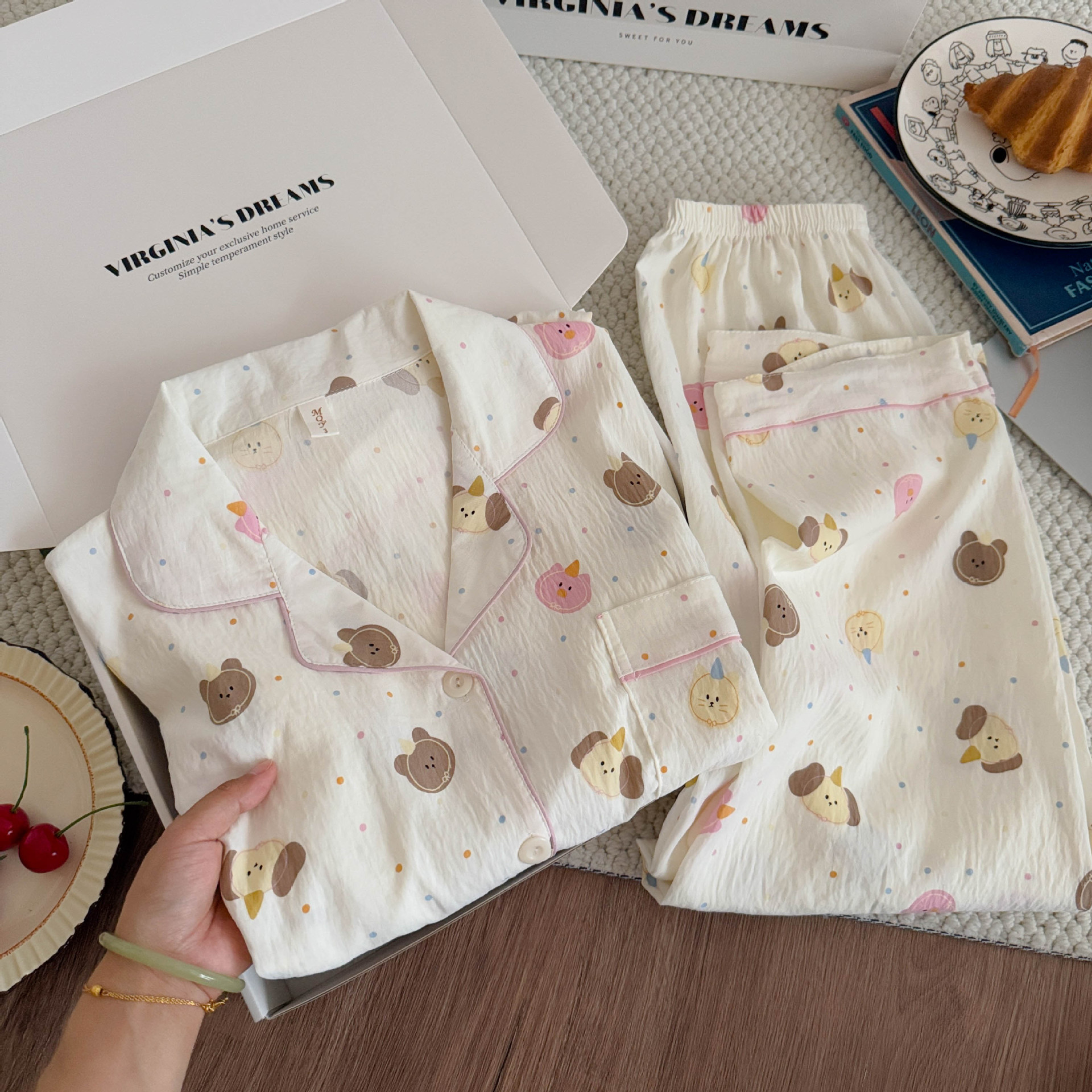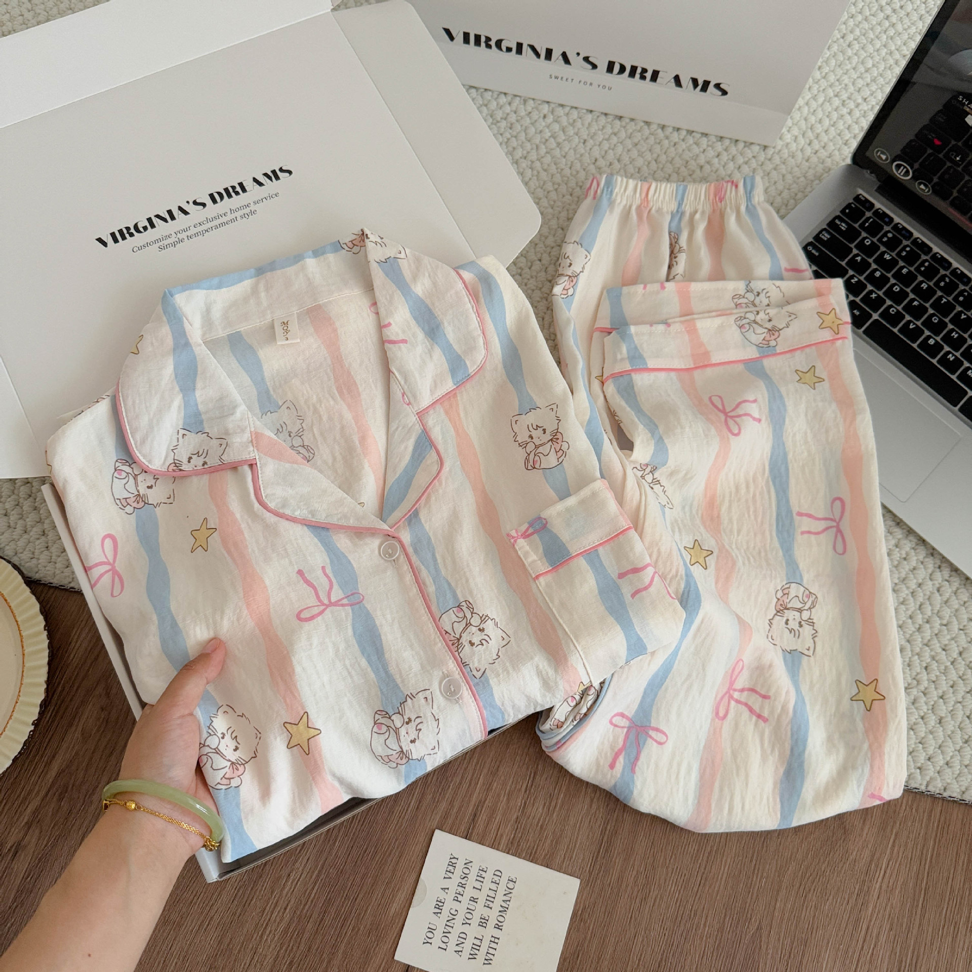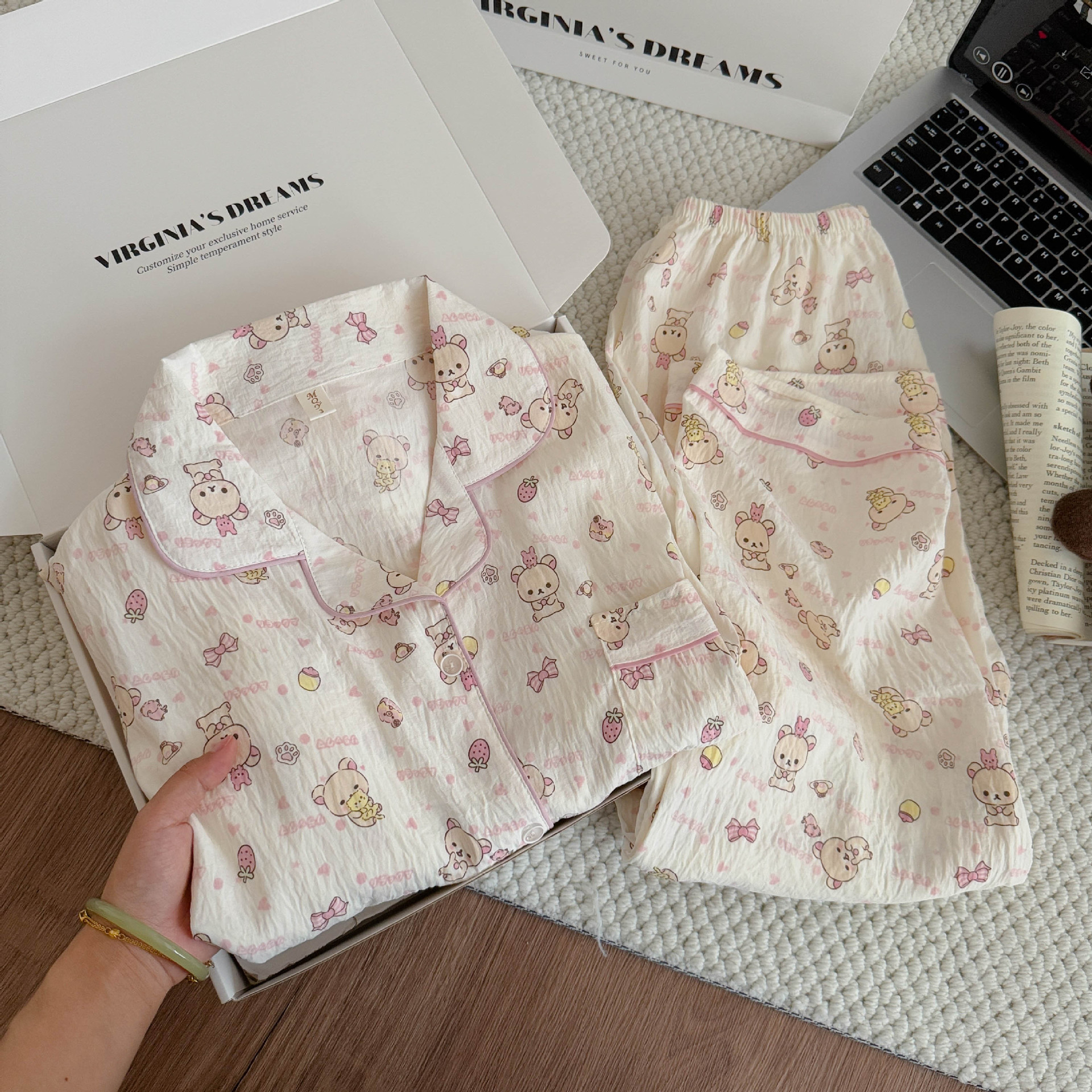 여성용 잠옷, 봄, 가을 긴팔 바지, 얇고 달콤하고 귀여운 여성용 홈웨어 세트, 봄, 여름에 외출 가능스토어 가기