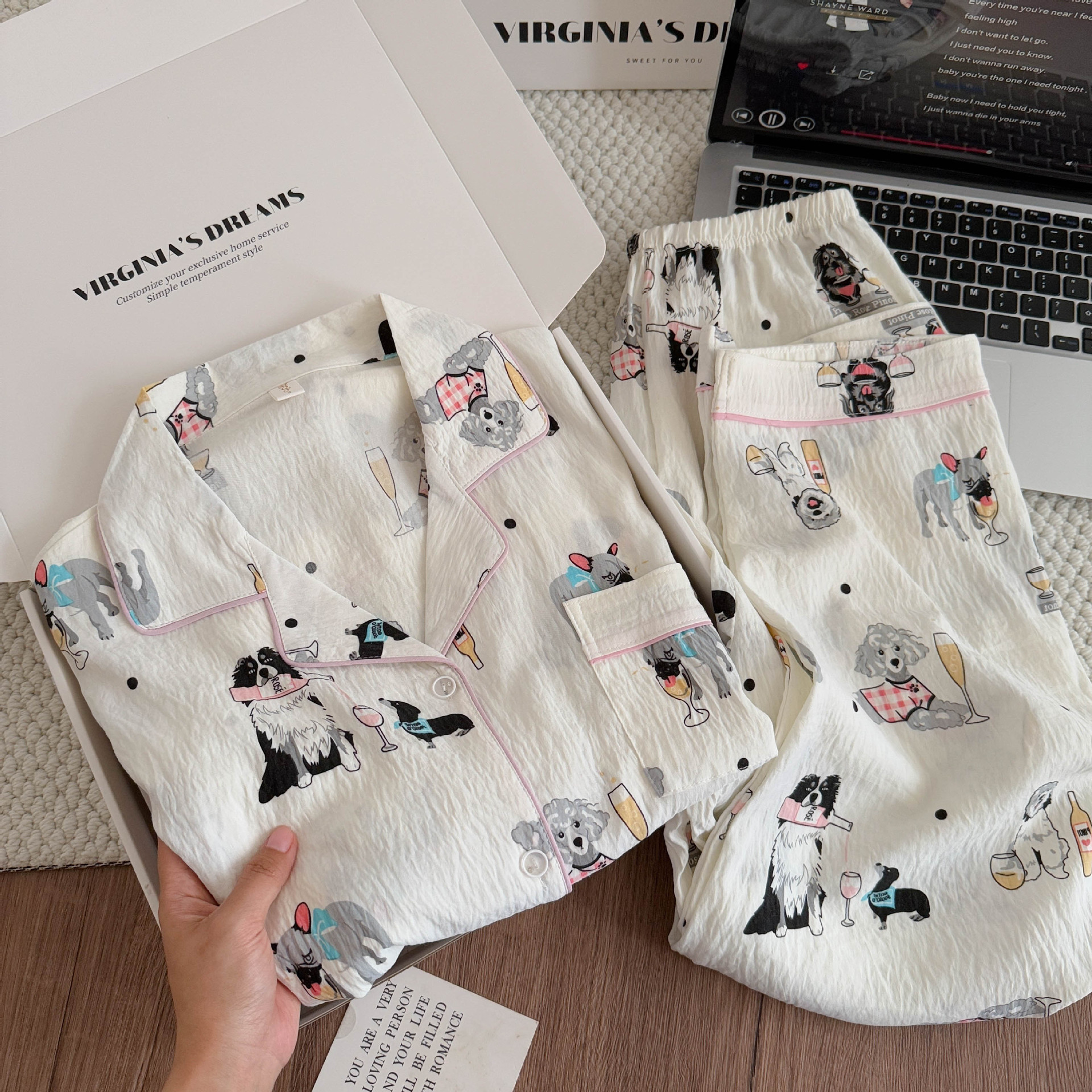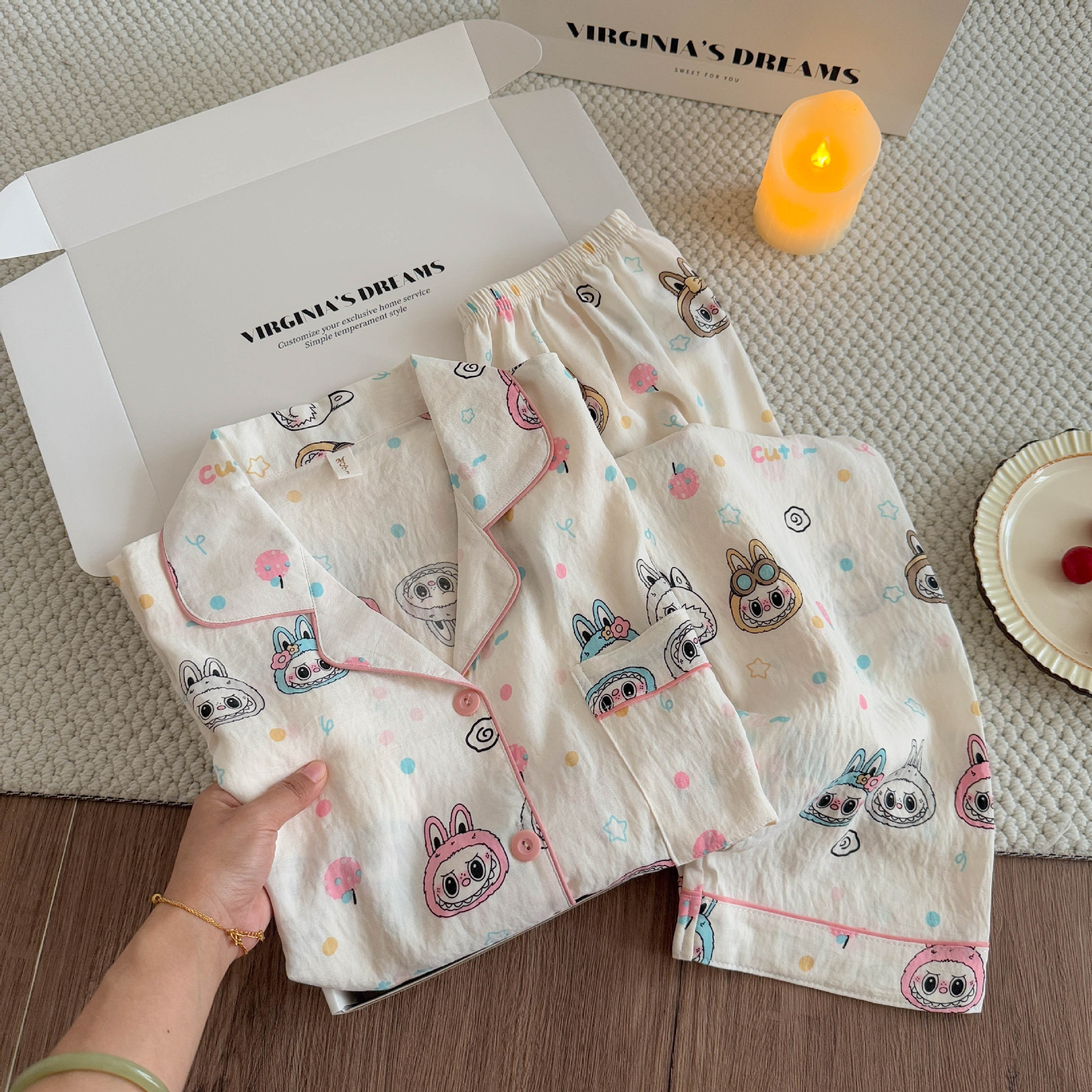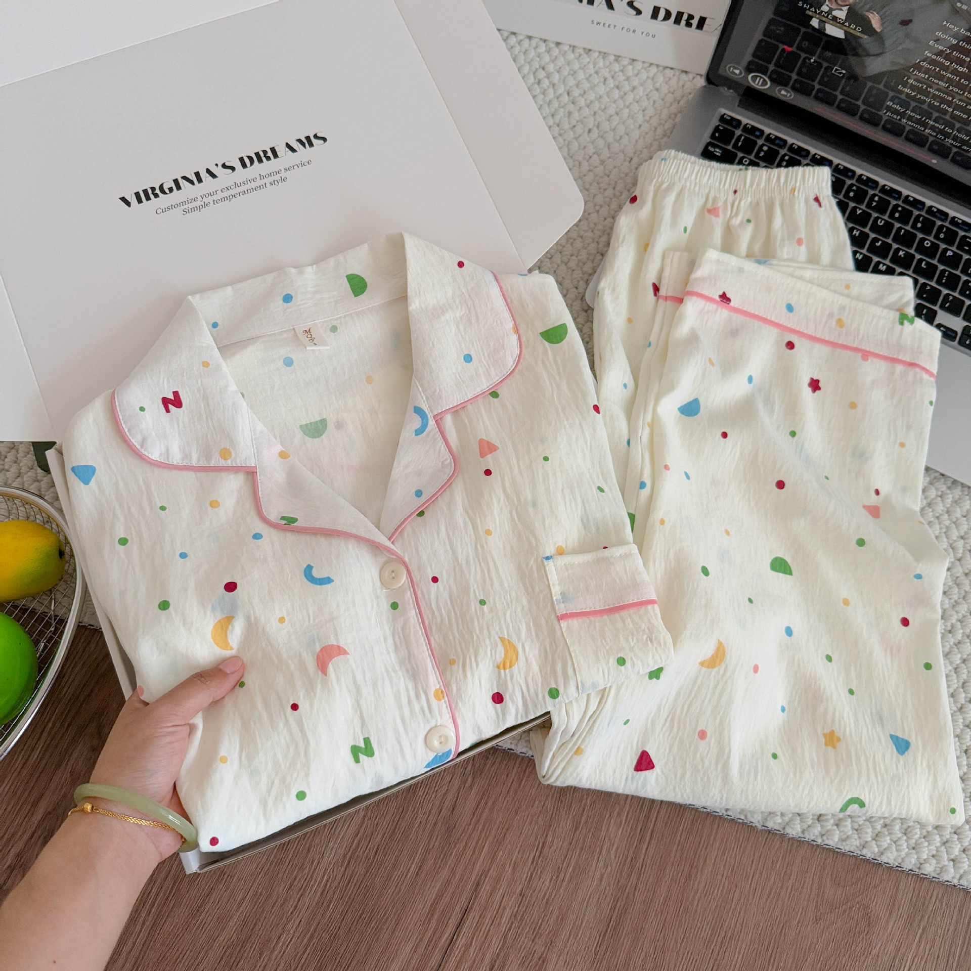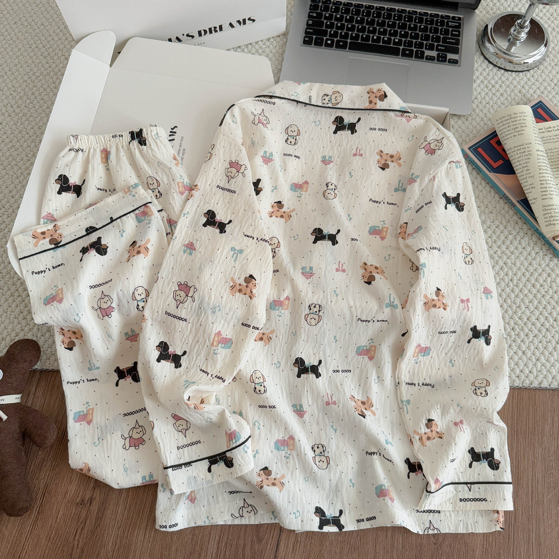 여성용 잠옷, 봄, 가을 긴팔 바지, 얇고 달콤하고 귀여운 여성용 홈웨어 세트, 봄, 여름에 외출 가능스토어 가기