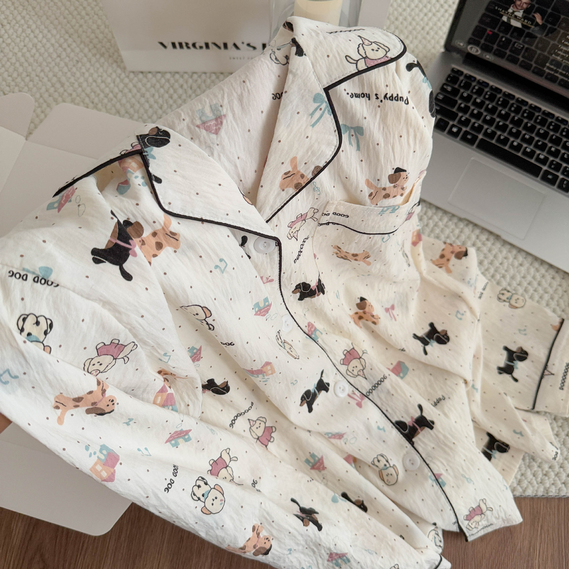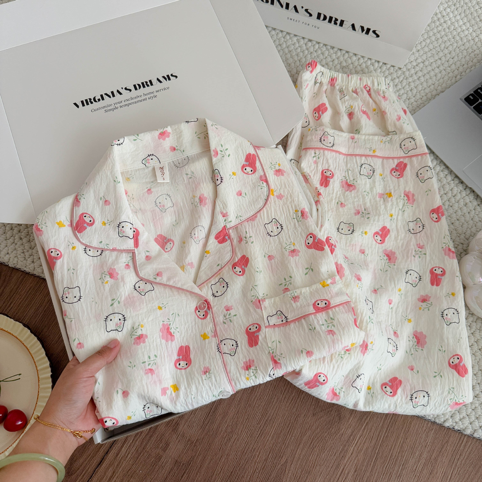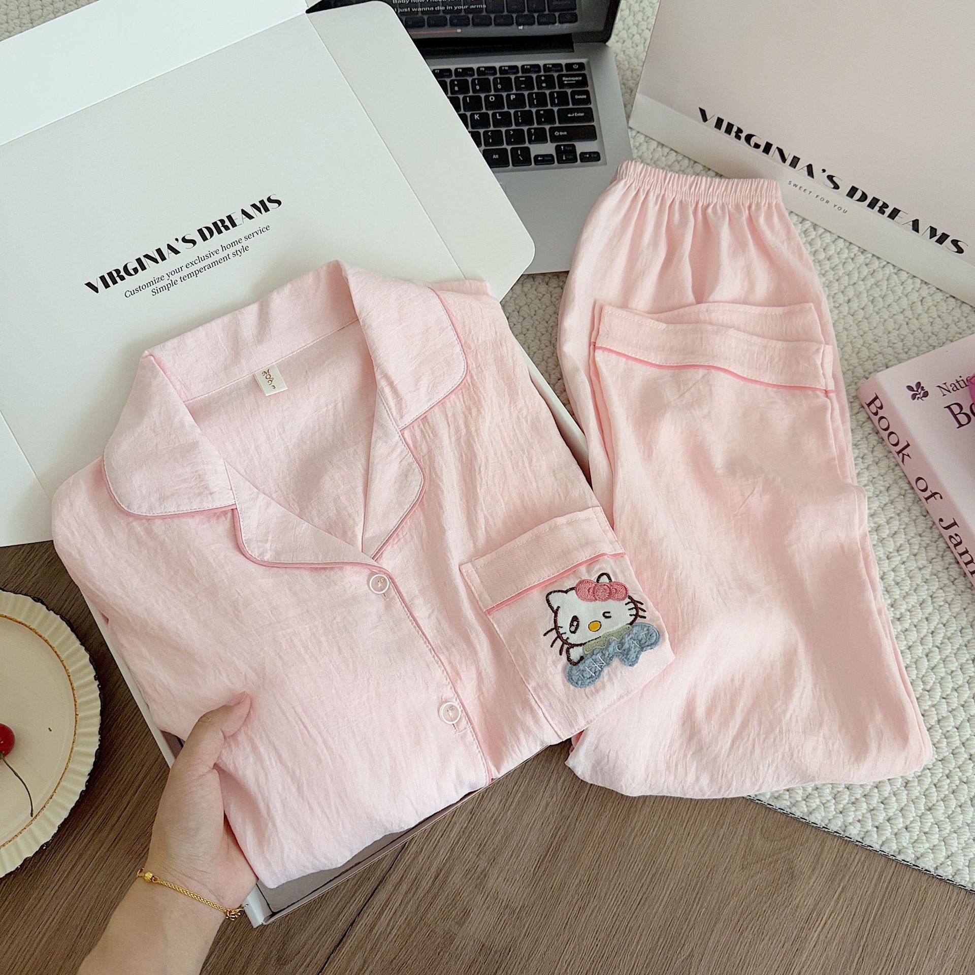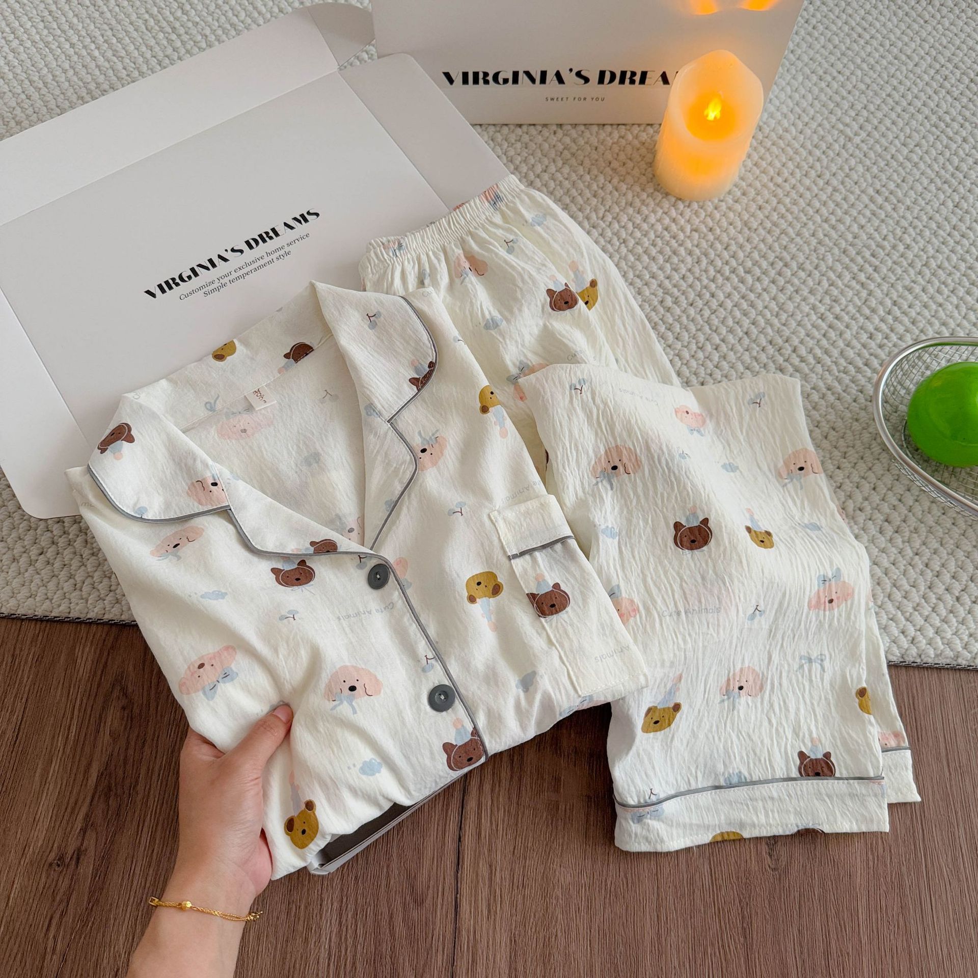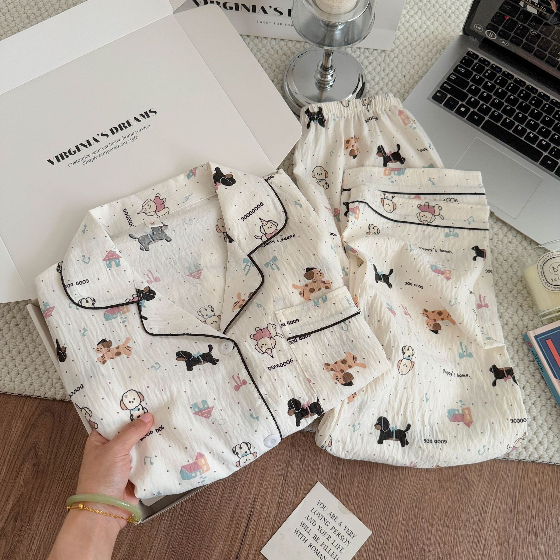여성용 잠옷, 봄, 가을 긴팔 바지, 얇고 달콤하고 귀여운 여성용 홈웨어 세트, 봄, 여름에 외출 가능스토어 가기