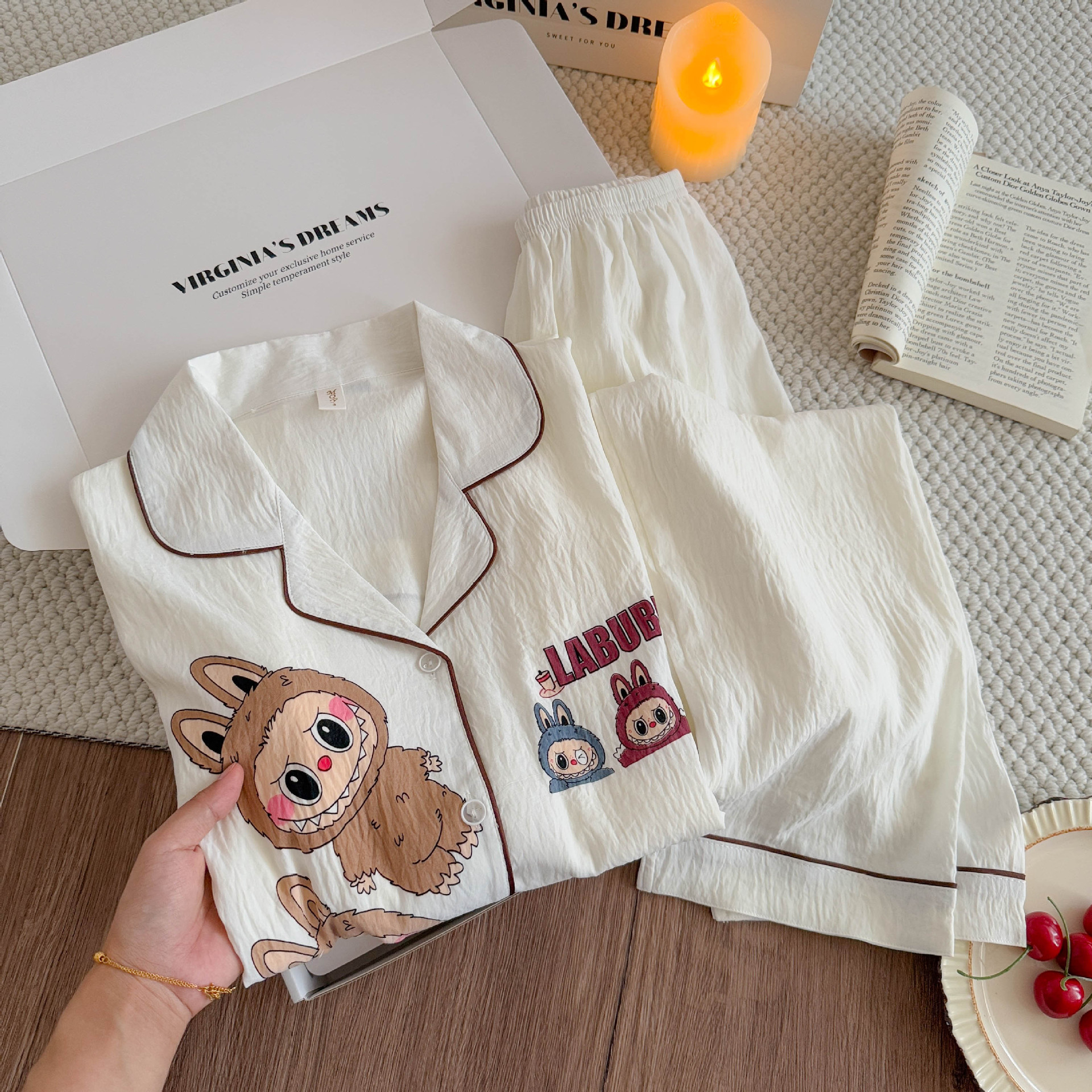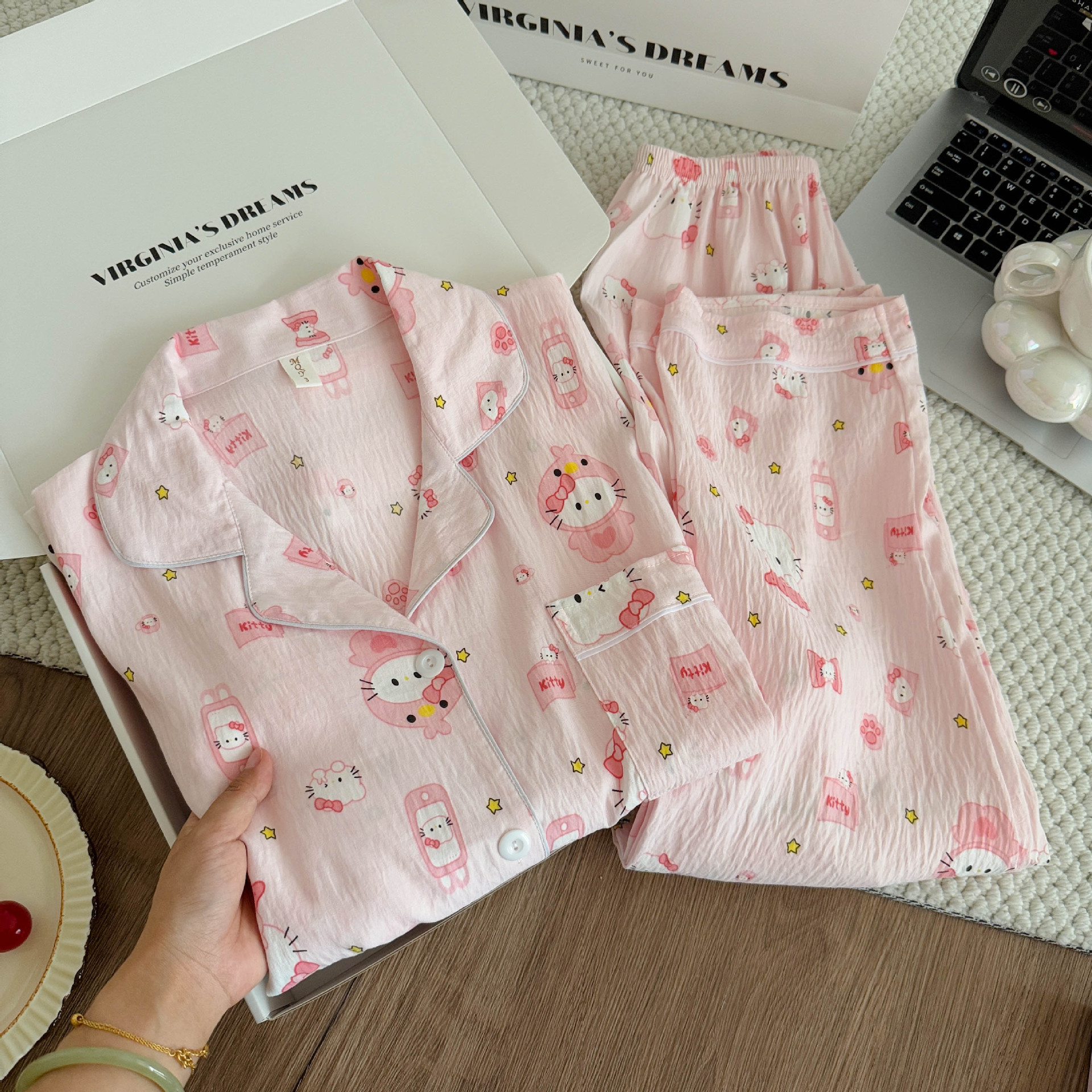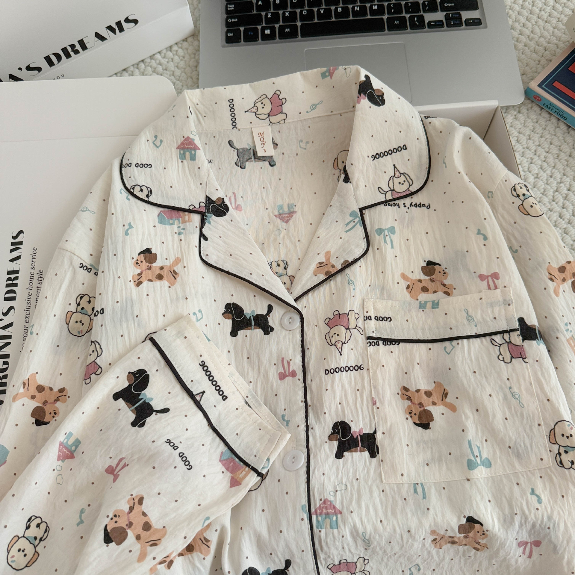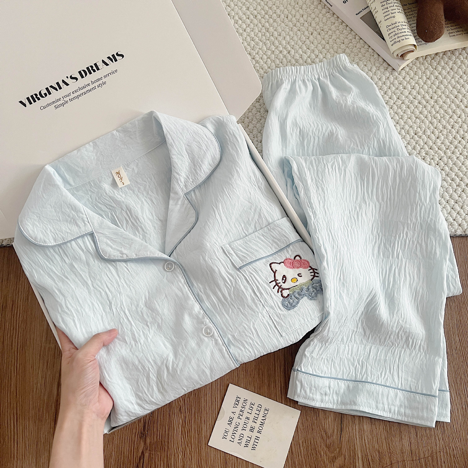 여성용 잠옷, 봄, 가을 긴팔 바지, 얇고 달콤하고 귀여운 여성용 홈웨어 세트, 봄, 여름에 외출 가능스토어 가기