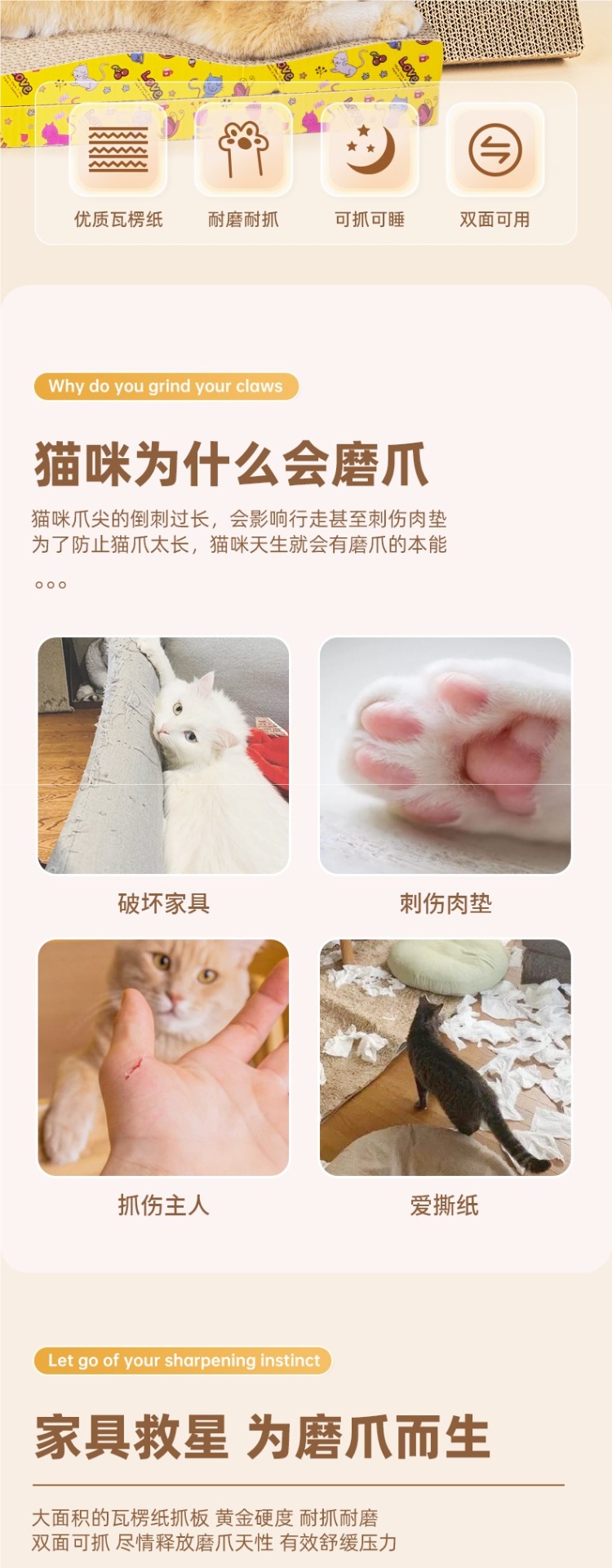 고양이 스크래치 보드, 고양이 둥지, 긁힘 방지, 내마모성 및 비떨어지는 직사각형 골판지 대형 발톱 연삭 보드, 고양이 용품, 고양이 장난감