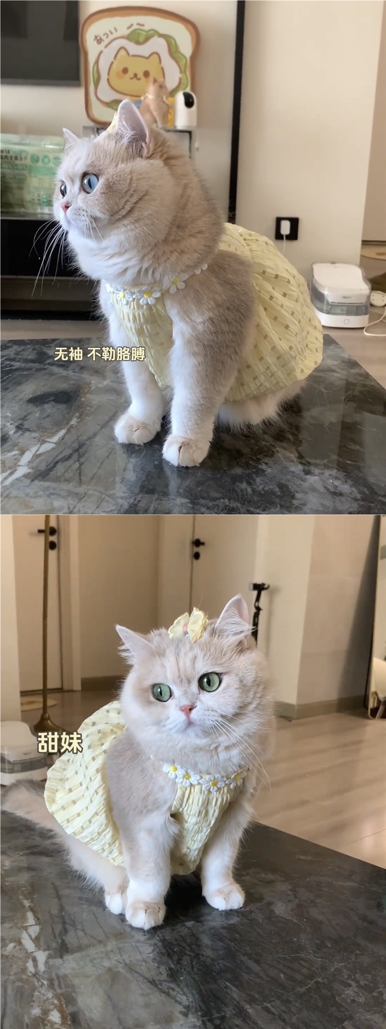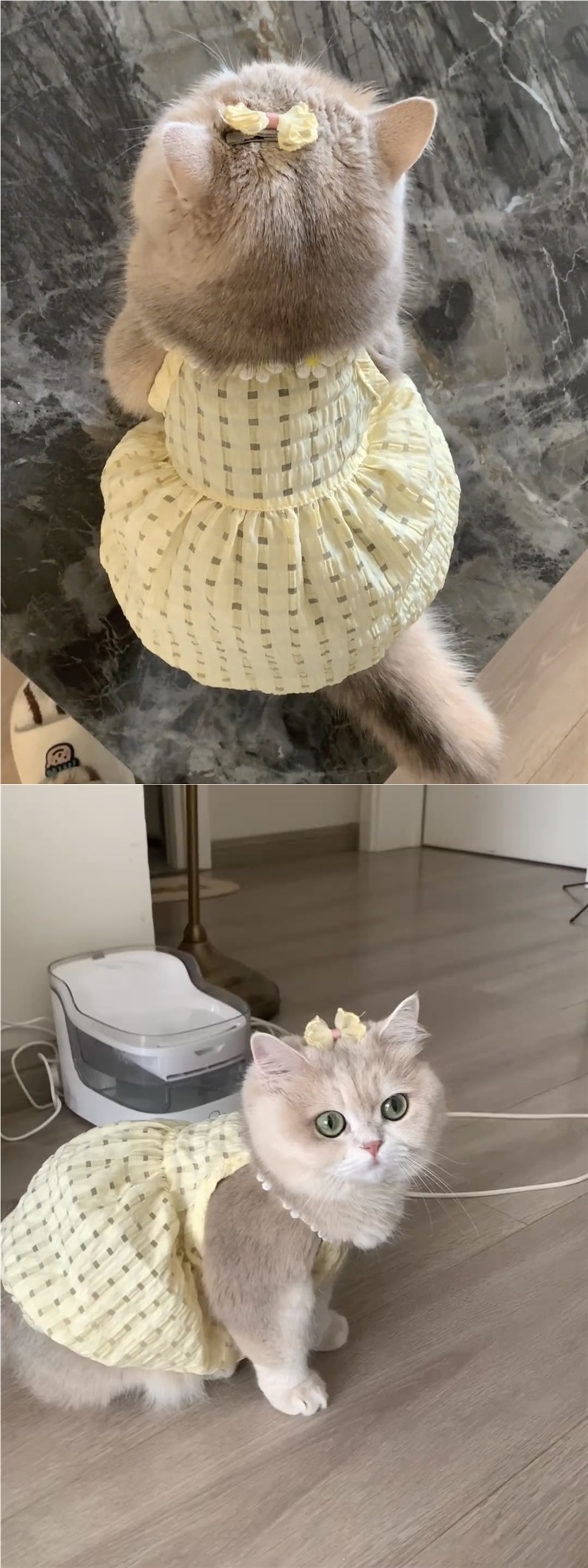 고양이 여름옷, 작은 치마, 털빠짐 방지, 귀여운 인 골드 그라데이션 래그돌 고양이, 브리티시 쇼트헤어 여름 서스펜더 스커트스토어 가기