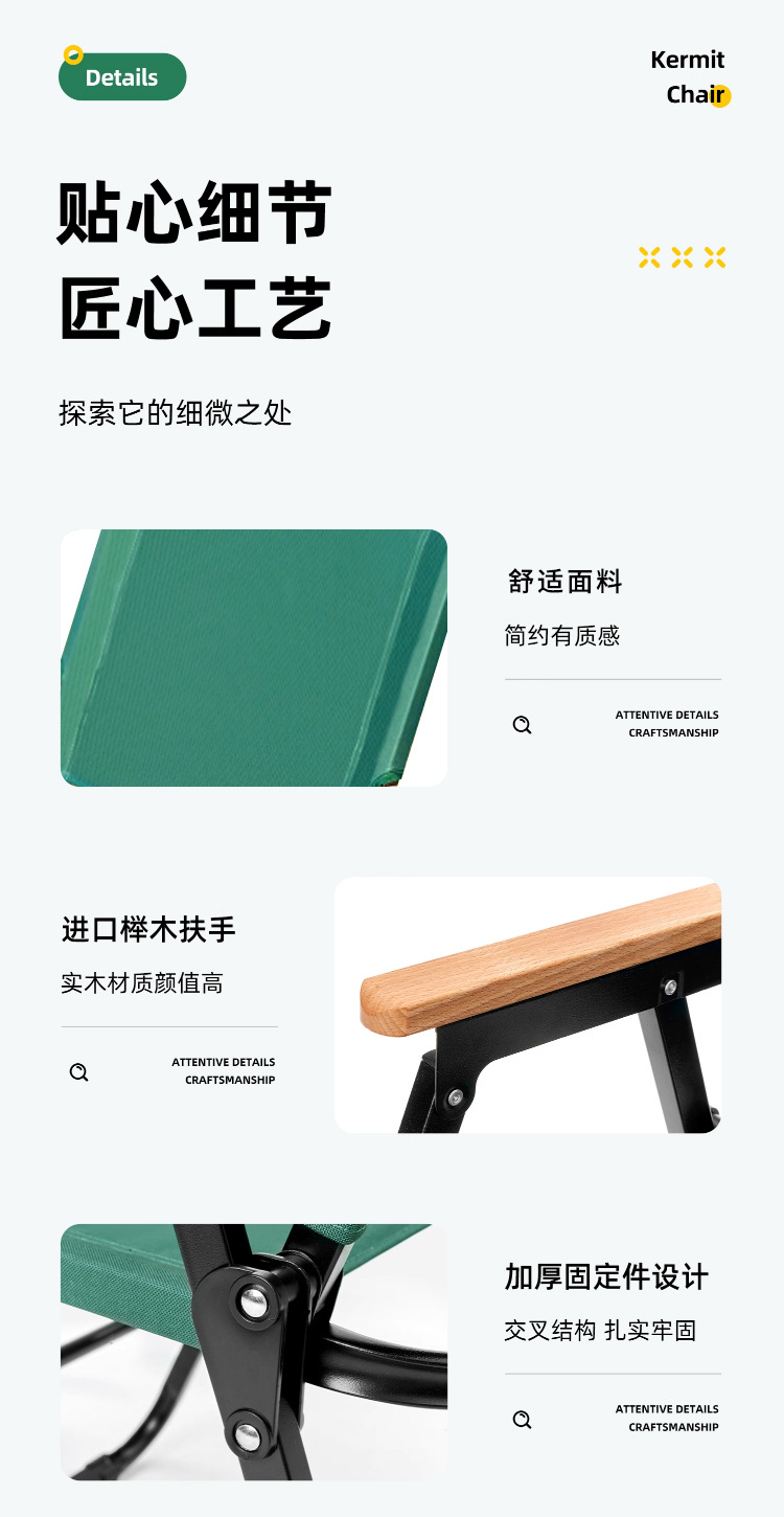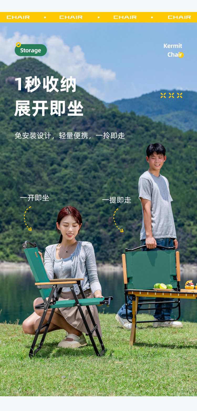야외 접이식 의자 캠핑 의자 Kermit 의자 휴대용 캠핑 의자 초경량 해변 야외 피크닉 의자
