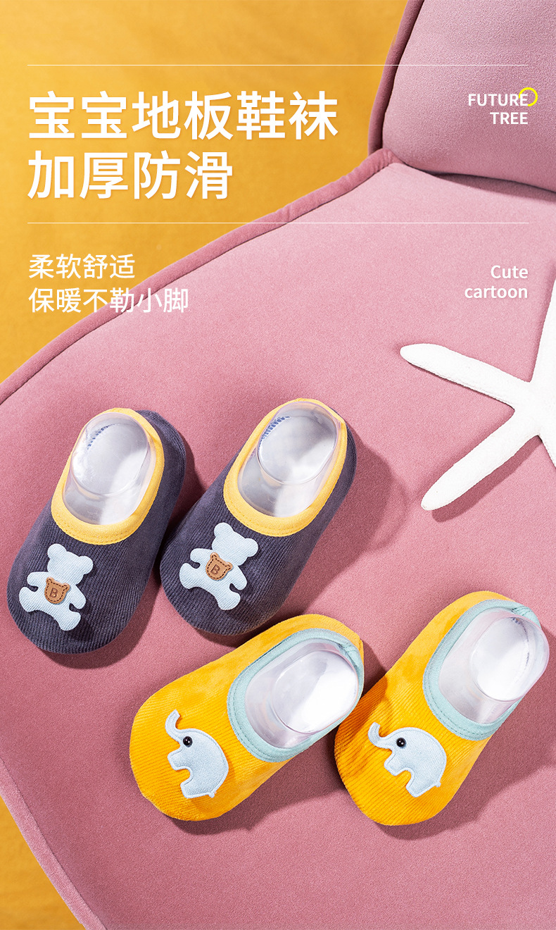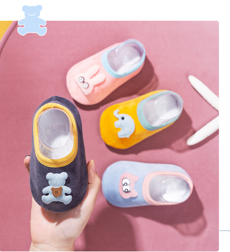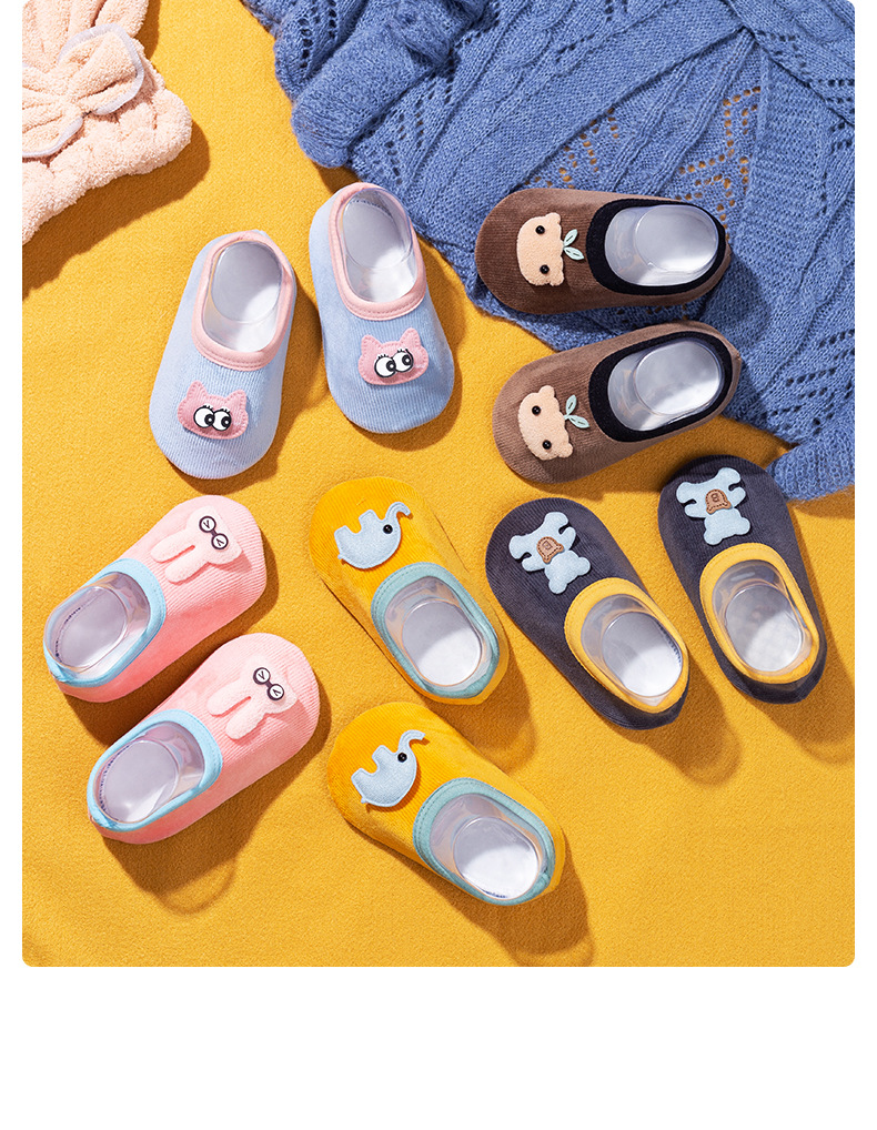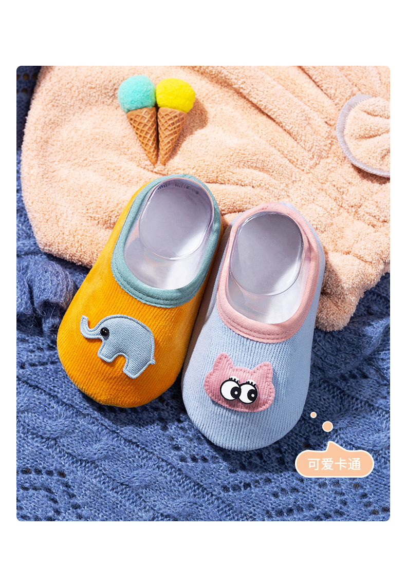 귀여운 만화 패턴 아기 바닥 양말 점선 미끄럼 방지 부드러운 땀 흡수 통기성 어린이 홈 실내 신발 및 양말 커버스토어 가기