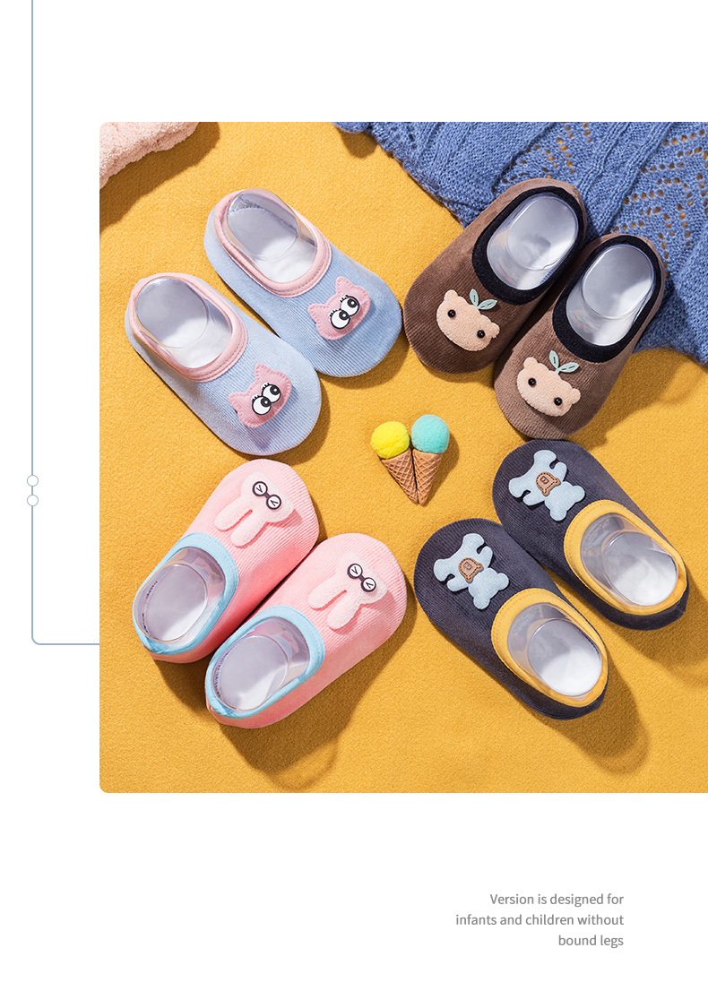 귀여운 만화 패턴 아기 바닥 양말 점선 미끄럼 방지 부드러운 땀 흡수 통기성 어린이 홈 실내 신발 및 양말 커버