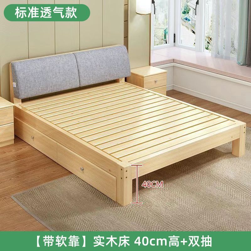 • 원목 침대 높이 40 + 더블 서랍 + 더블 베개 [두꺼운 소프트백]