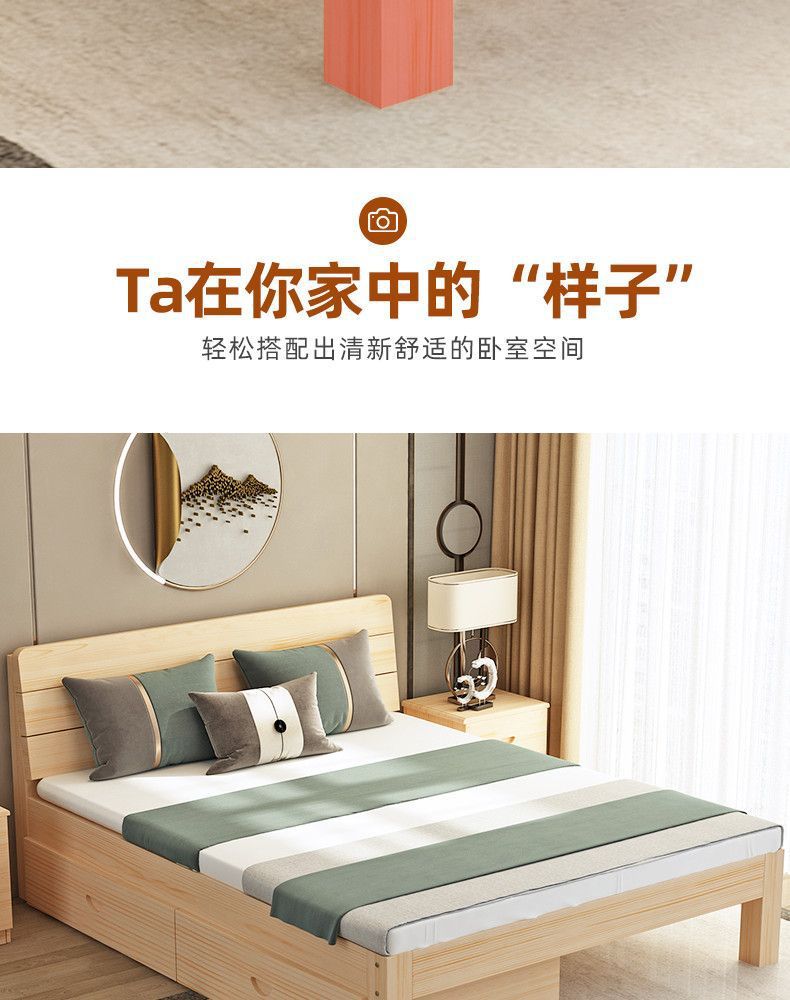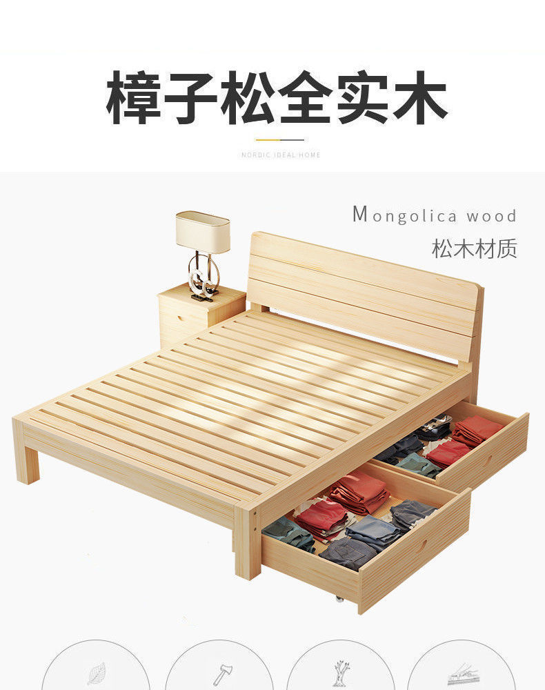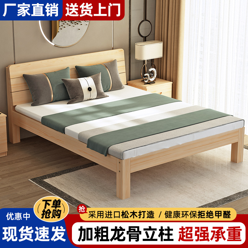 임대 주택 단단한 나무 침대 두꺼운 1.5m 단단한 나무 침대 간단한 더블 침대 경제적인 가정용 마스터 침실 침대스토어 가기