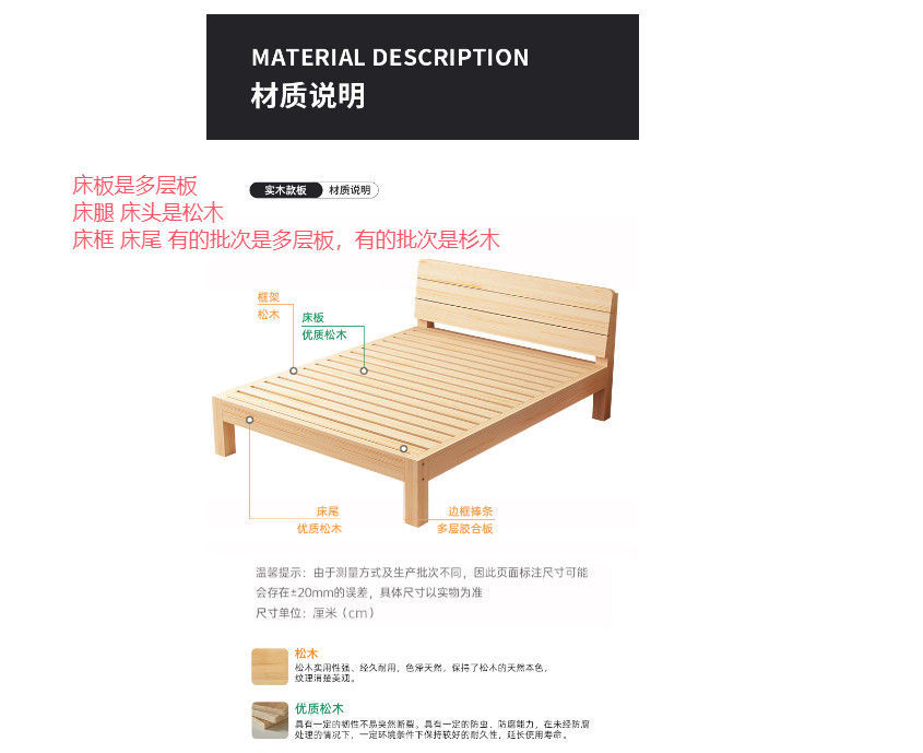 • 원목 침대 높이 30 + 매트리스 + 이중 베개 [두꺼운 부드러운 가방]