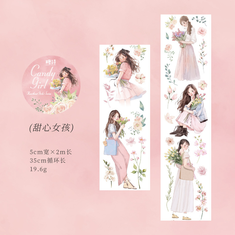 Sugar Poetry Heartbeat 소녀 시리즈 Washi 테이프 INS 귀여운 핸드북 DIY 장식 사이클 스티커 6 가지 옵션스토어 가기