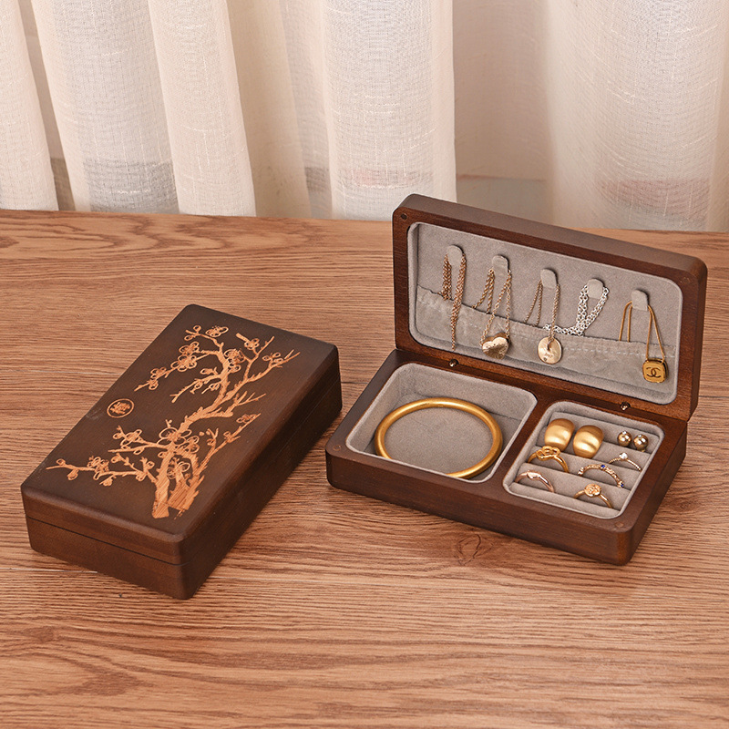 하이 엔드 단단한 나무 보석 상자 휴대용 여행 절묘한 도난 방지 반지 보석 팔찌 목걸이 보관 상자 중국 스타일스토어 가기