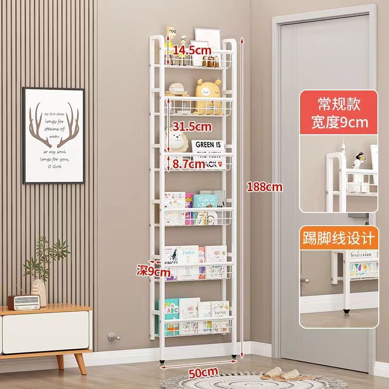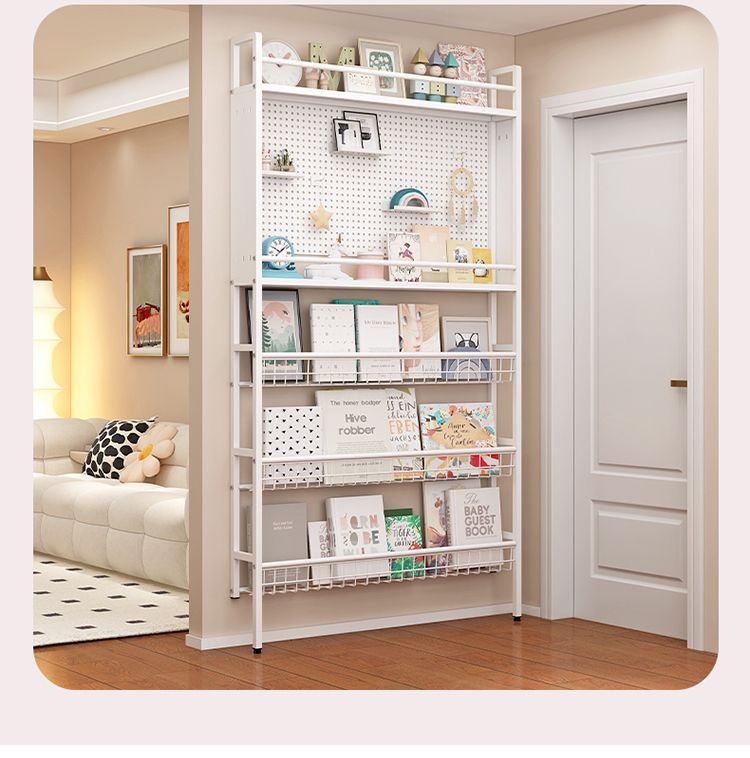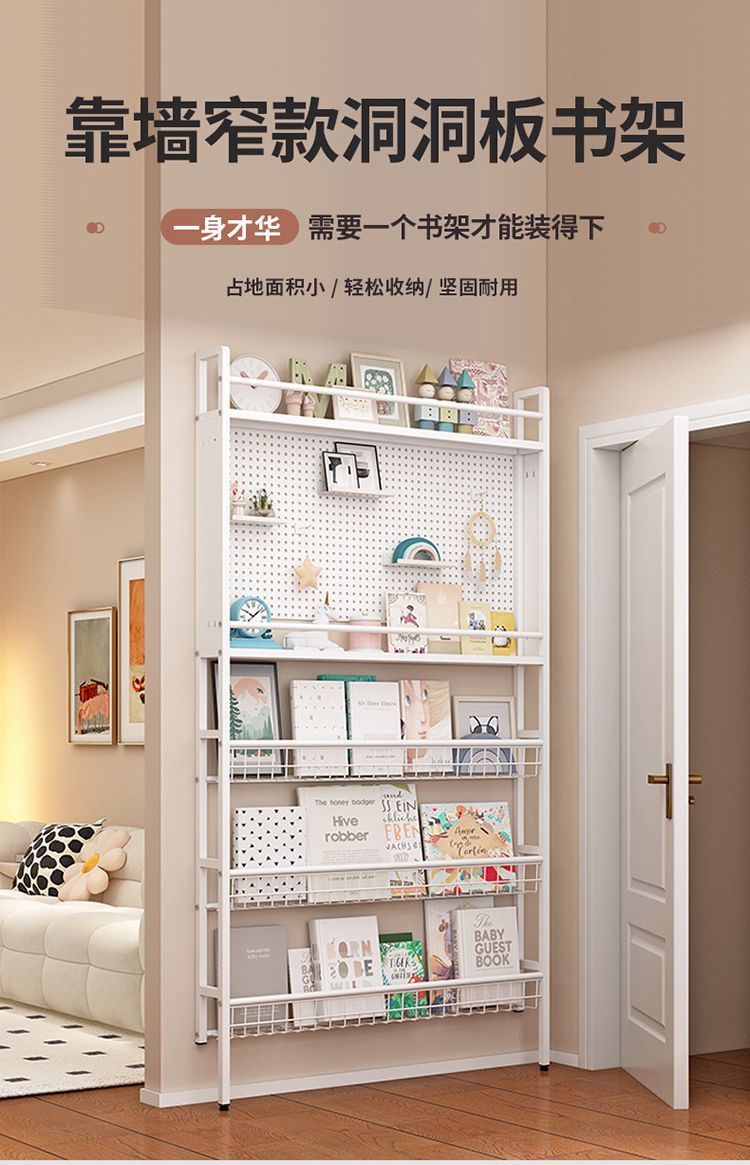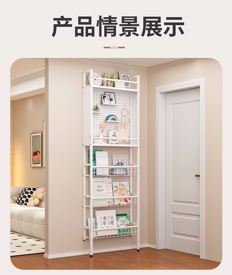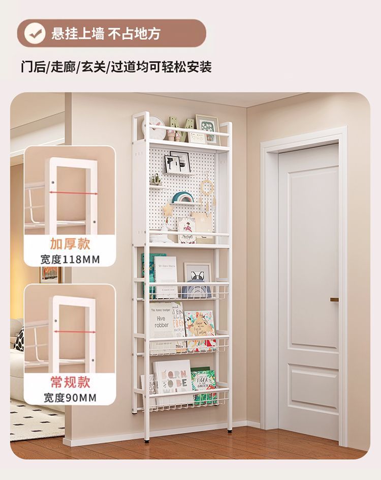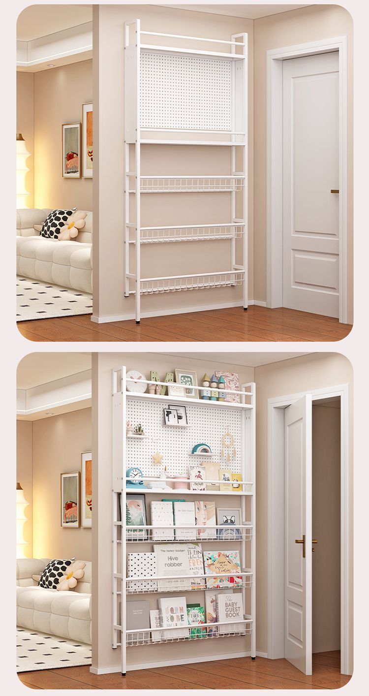 구멍이 뚫린 보드 문 뒤에 있는 다층 매우 좁은 수납 선반, 욕실 침실 문 뒤에 있는 수납 선반, 벽 수납 선반, 철제 선반스토어 가기