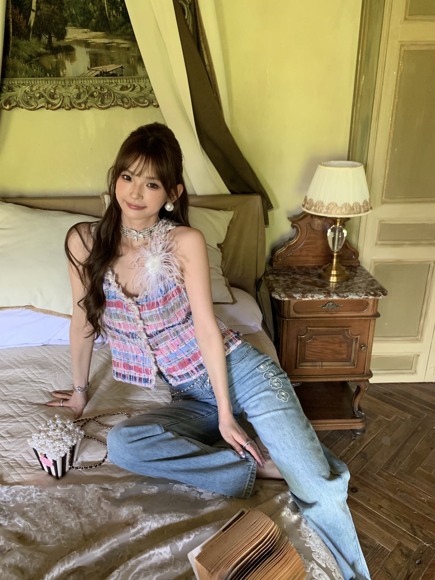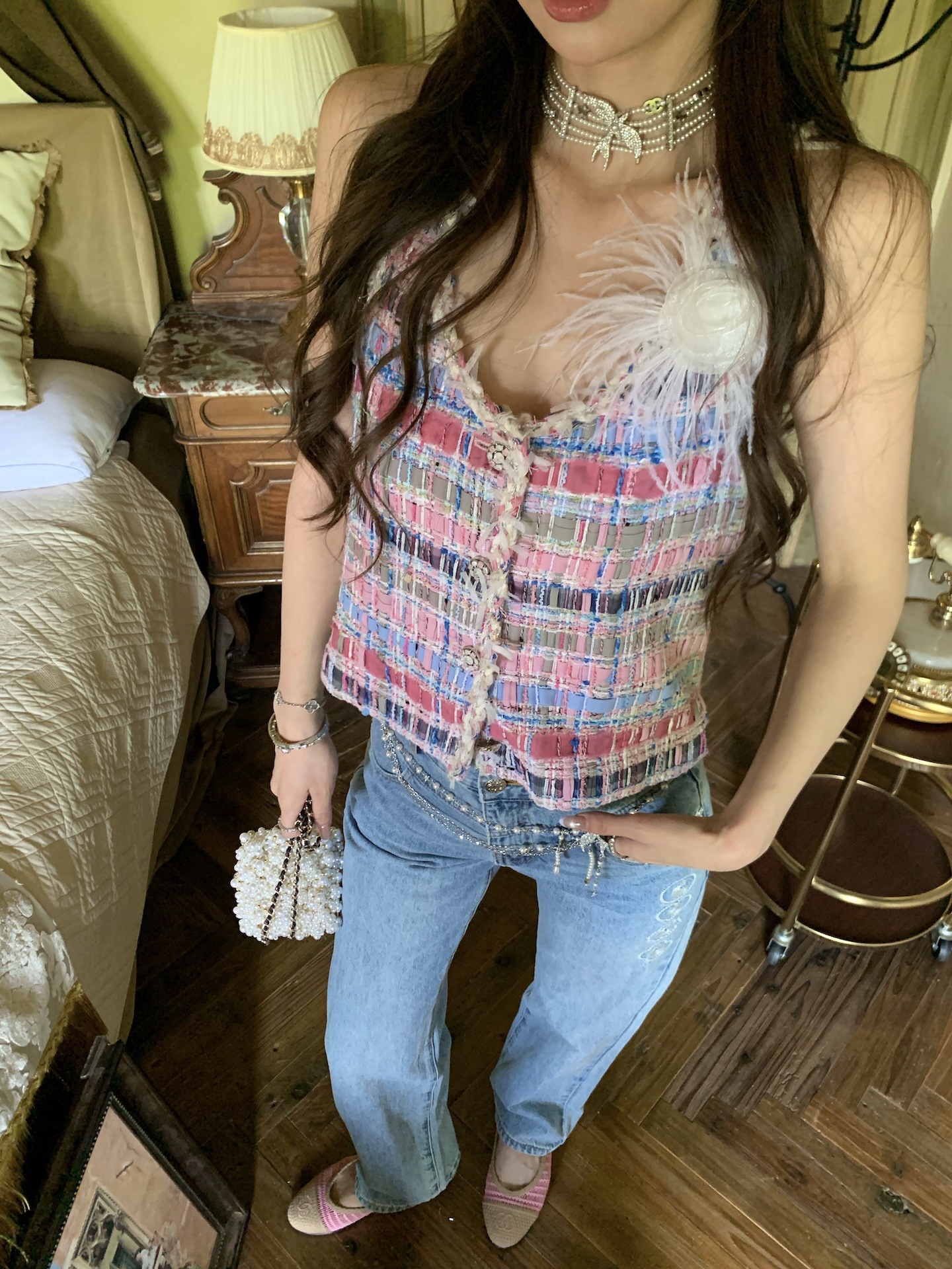 프랑스 고급 맞춤 염색 실 소재의 샤넬 스타일 조끼 여성용 2025 봄 가을 신상 수제 패션 조끼 트렌드스토어 가기