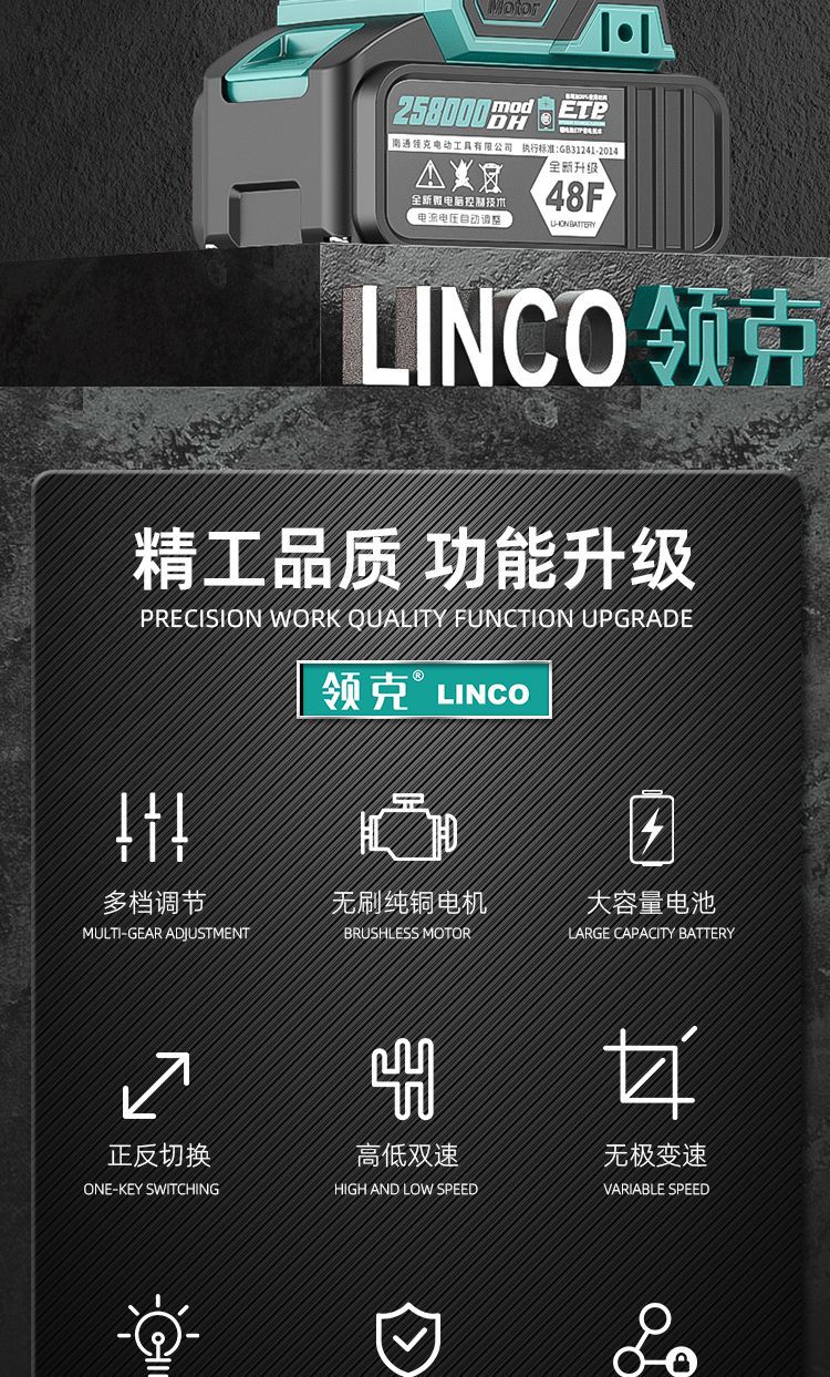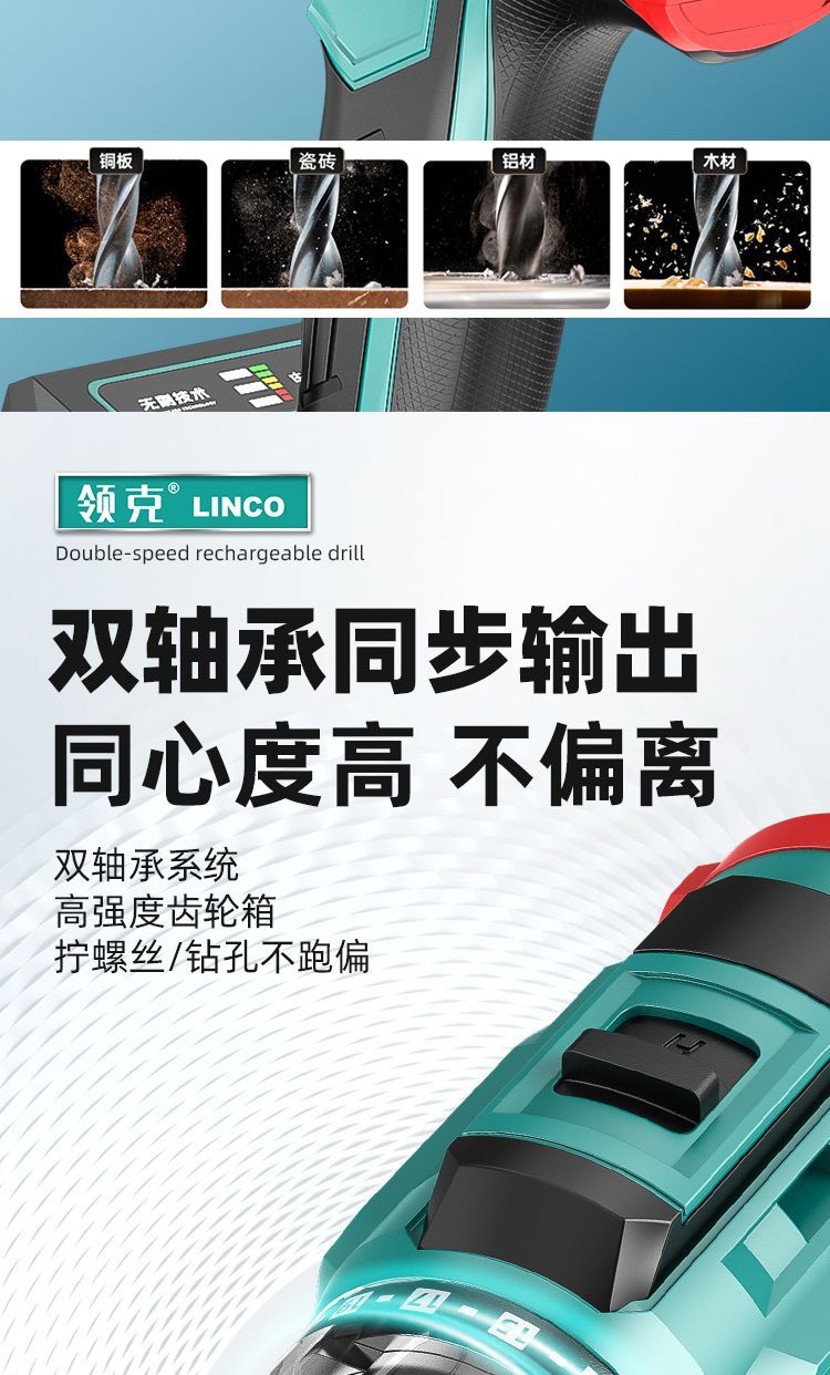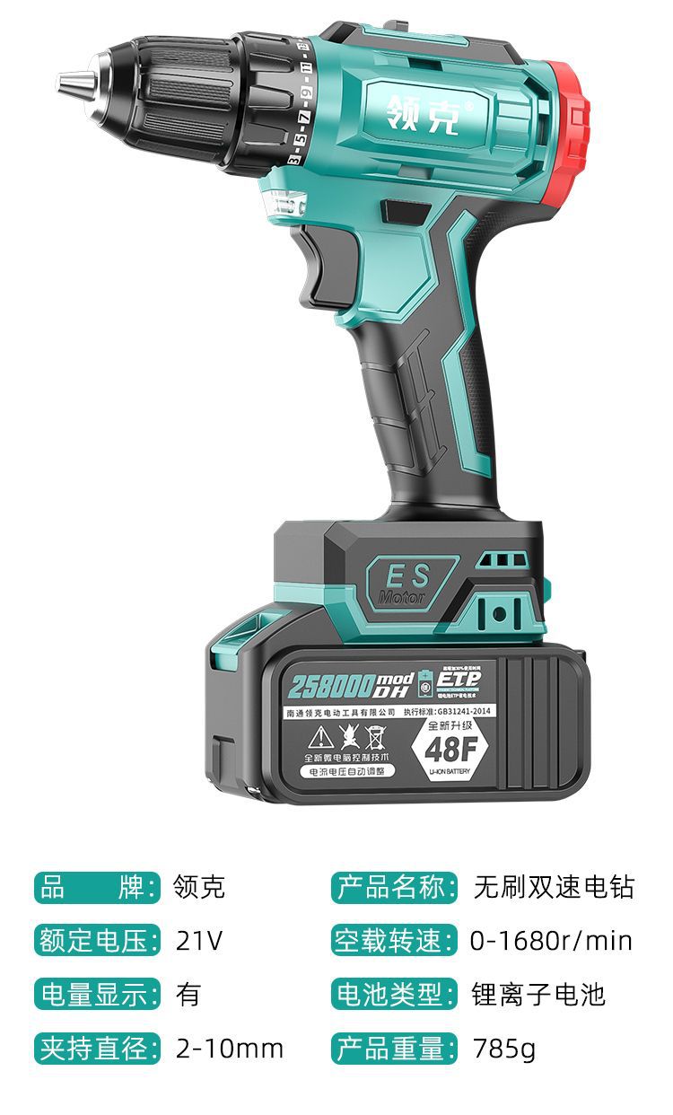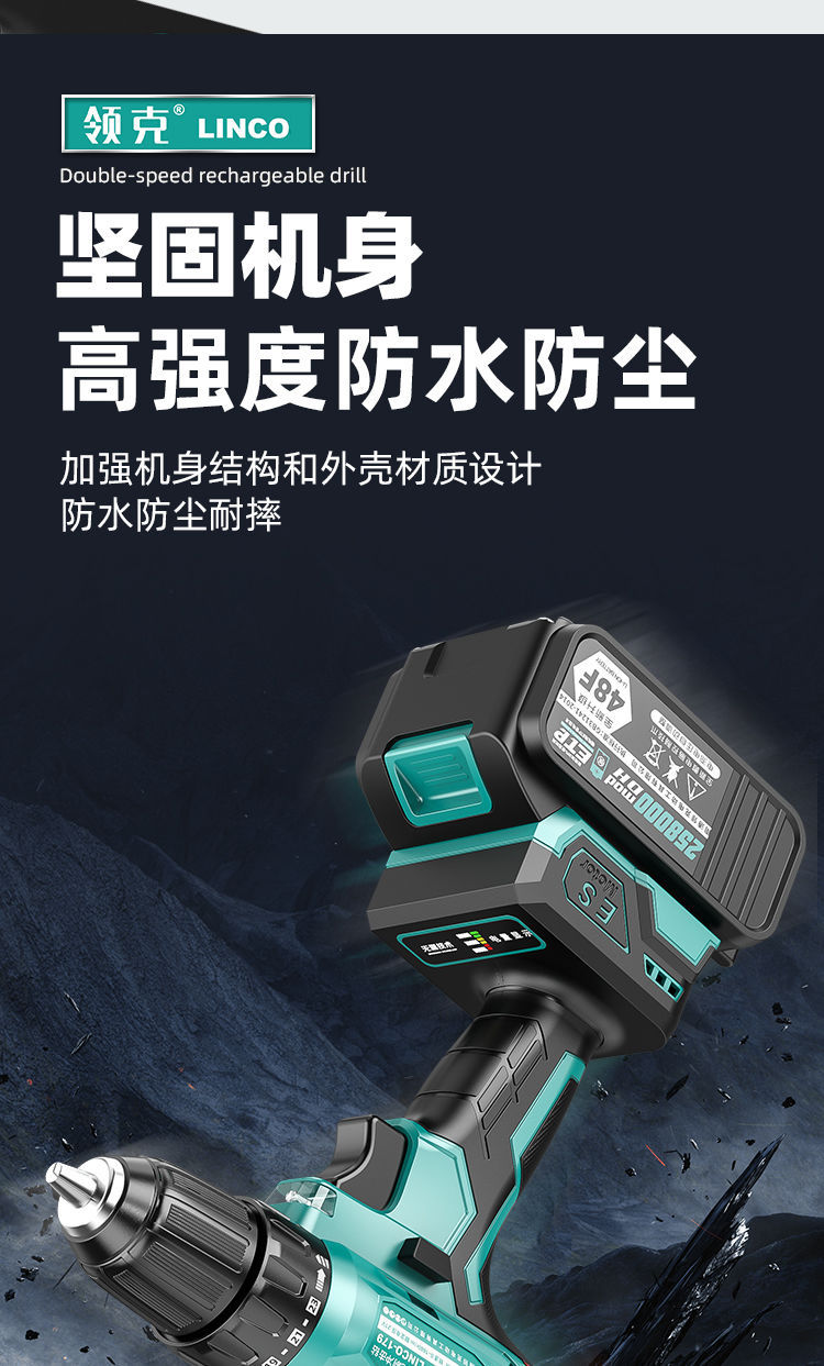 Lynk & Co 핸드 드릴 충전식 리튬 브러시리스 임팩트 이중 속도 가정용 멀티 도구 드라이버 권총 48 범용