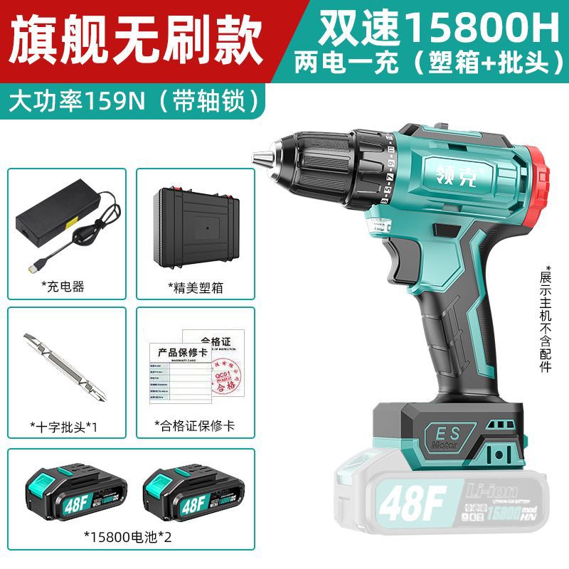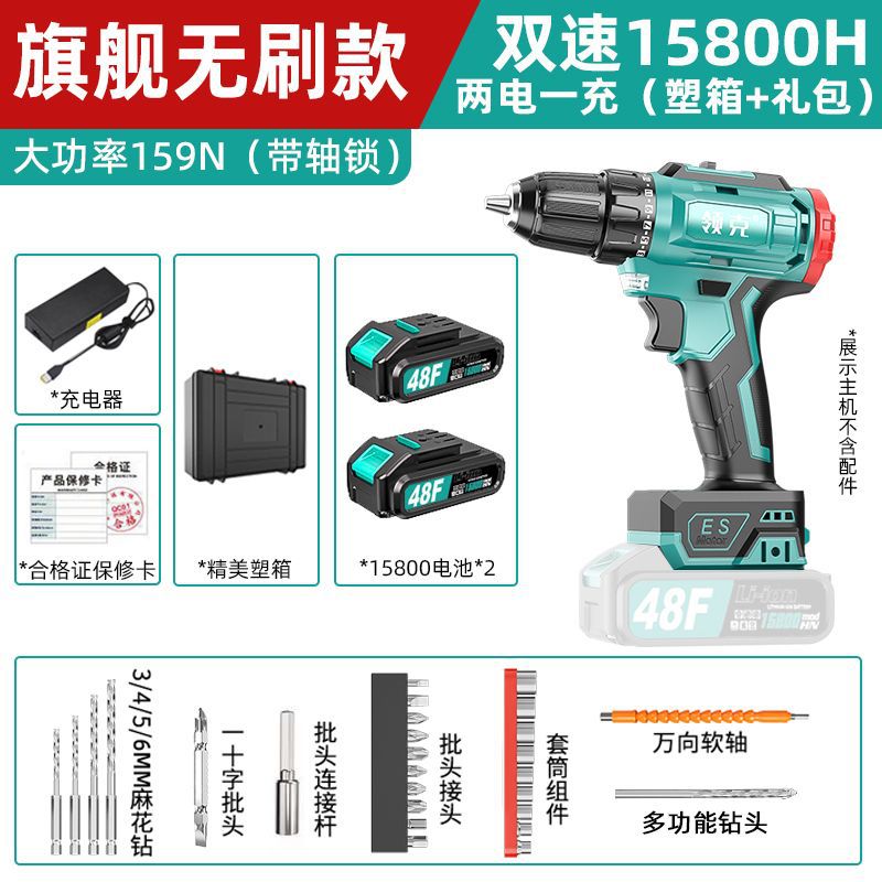 • 플래그십 브러시리스 고출력 159N(샤프트 잠금 장치 포함) - 브러시리스 15800H 배터리 2개 및 플라스틱 충전 상자 1개 + 선물 가방