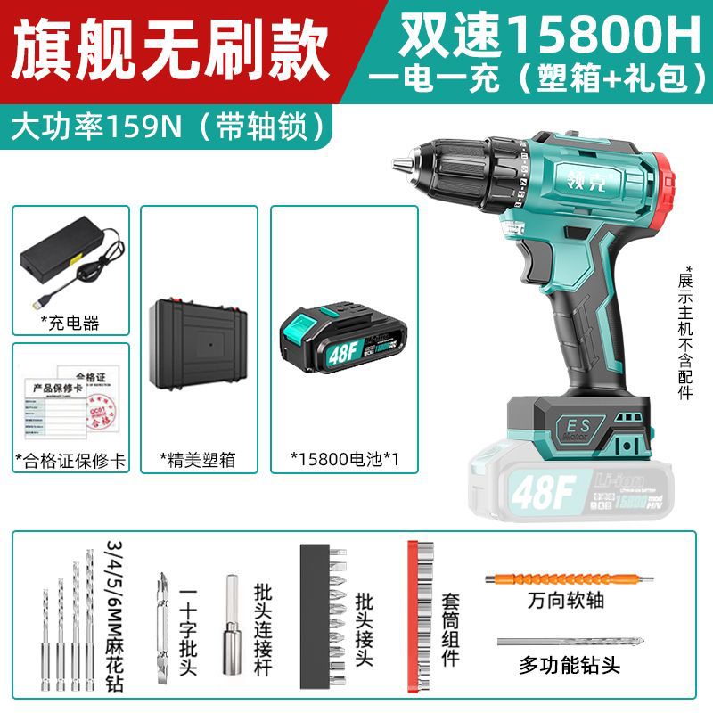 • 플래그십 브러시리스 고출력 159N(샤프트 잠금 장치 포함) - 브러시리스 15800H 배터리 1개 및 플라스틱 상자 1개 + 선물 가방