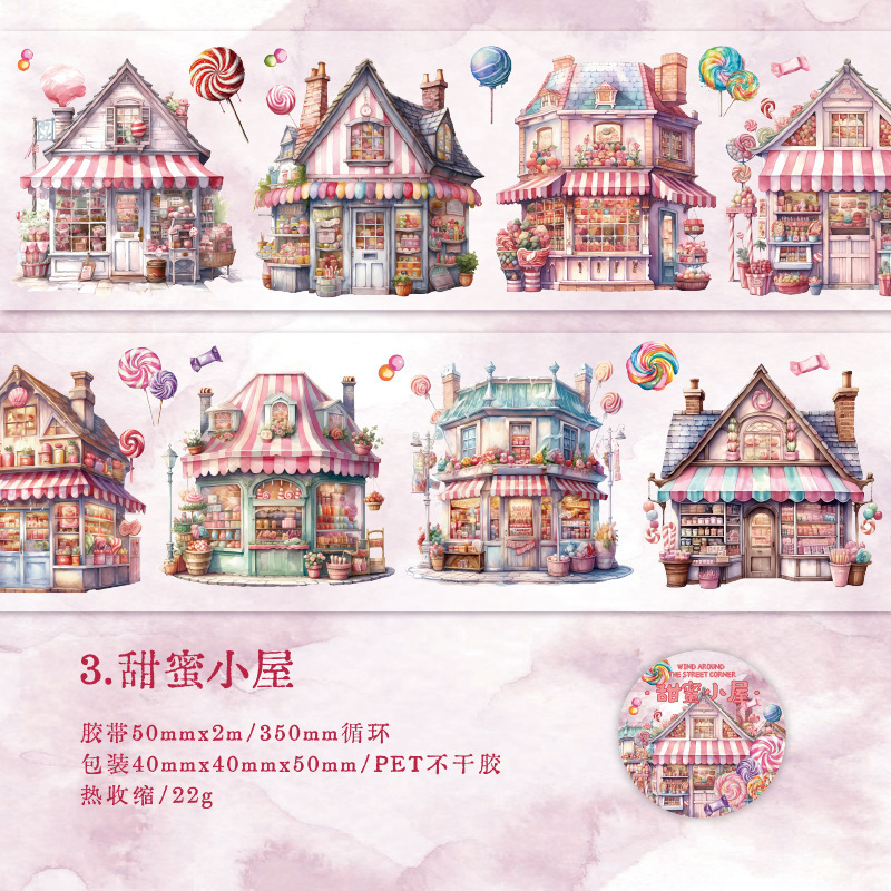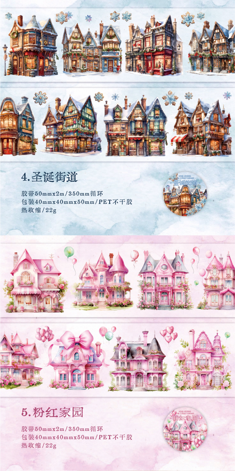 Yanji Fengguo Street Corner 시리즈 애완 동물 테이프 쉘 라이트 유럽 건축 핸드북 장식 수제 DIY 6 스타일