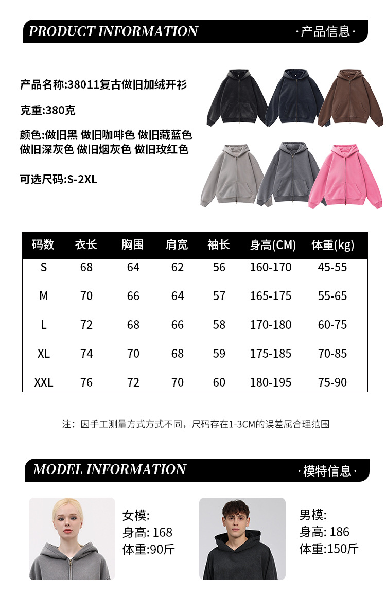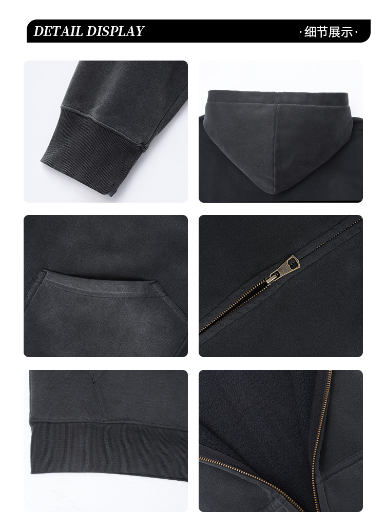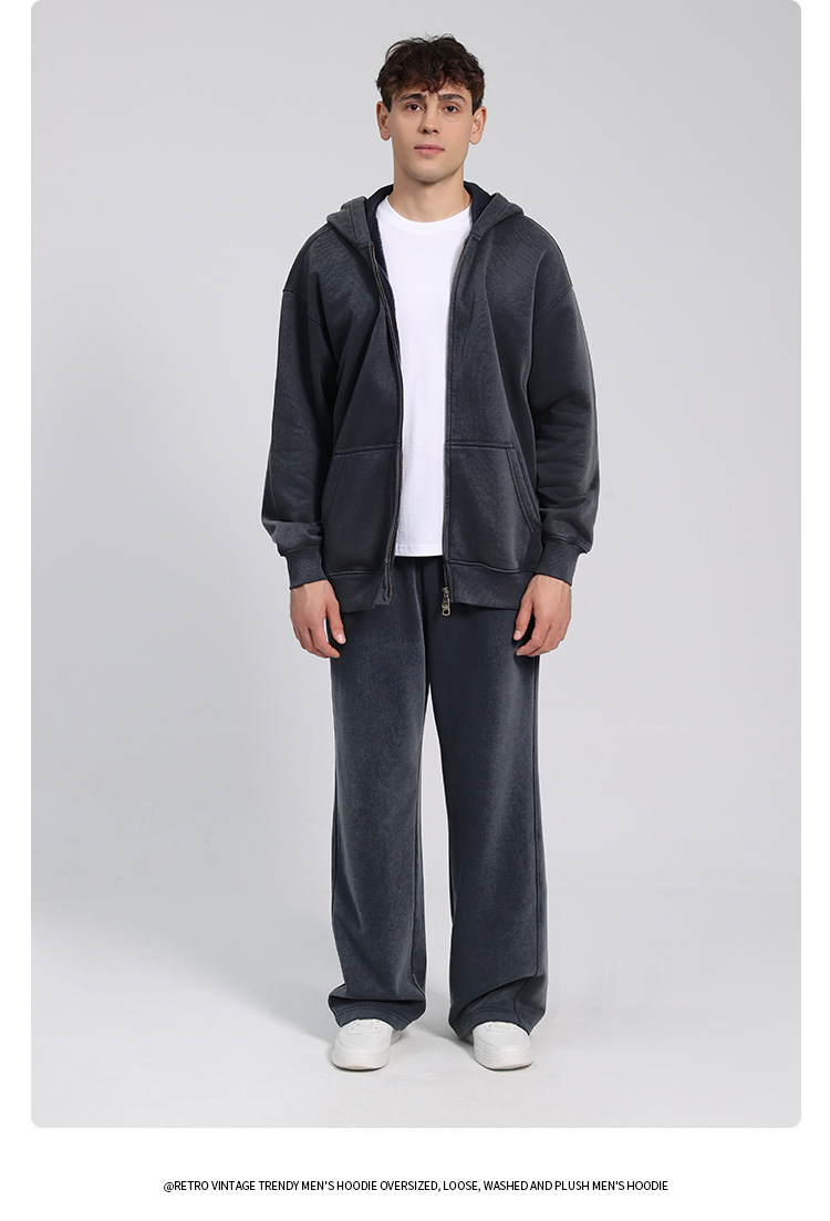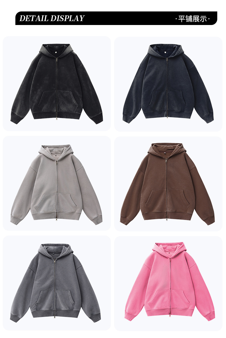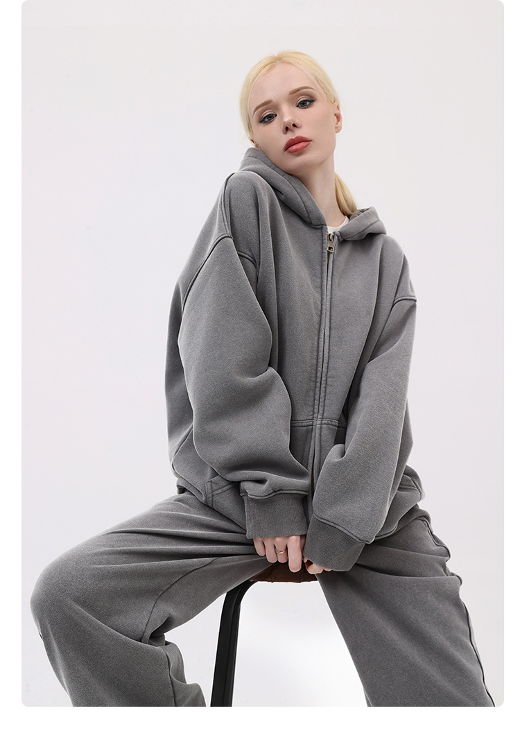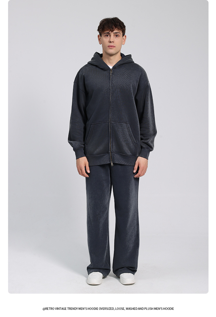 380g 디스트레스드 벨벳 지퍼 후드 스웨트셔츠 라지 사이즈 오프 숄더 레트로 워싱 벨벳 가디건 오버사이즈
