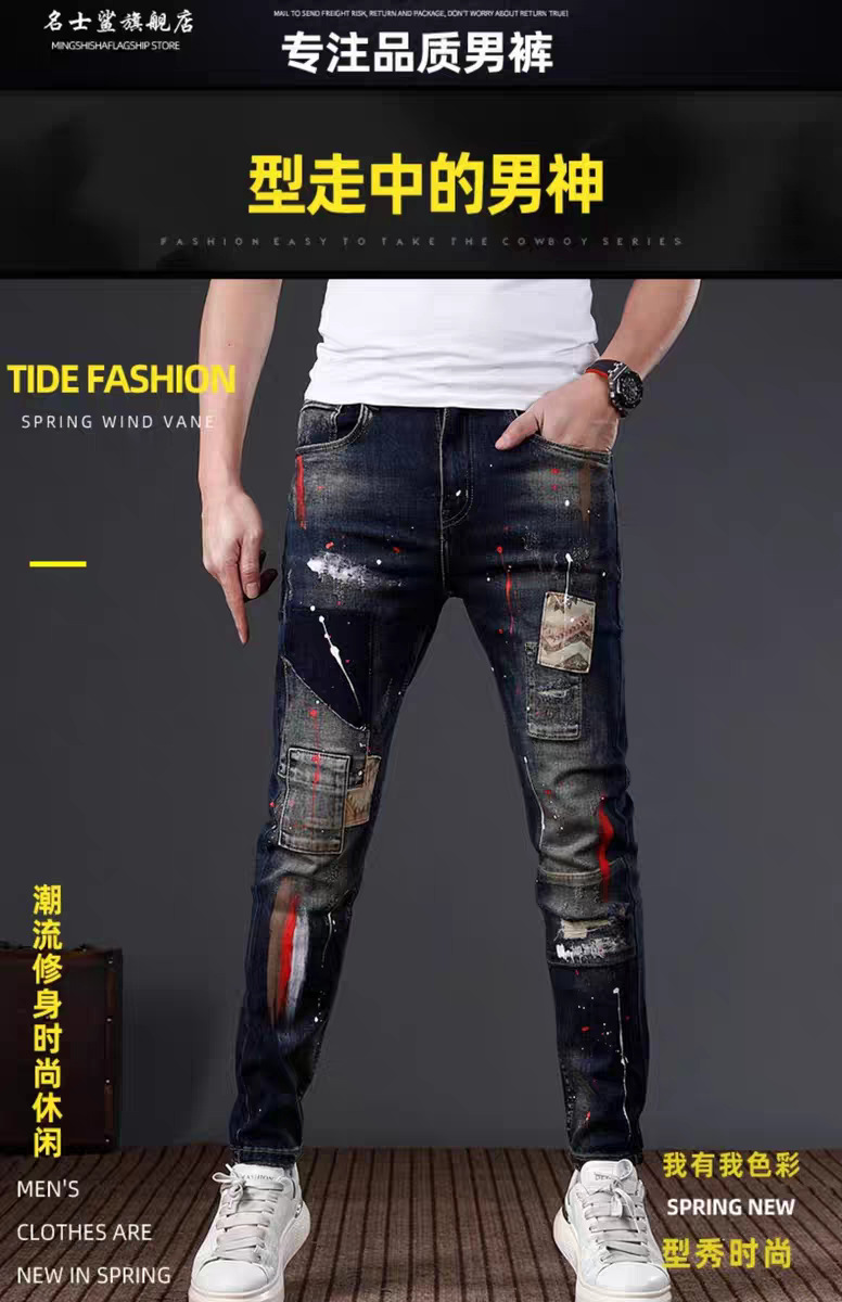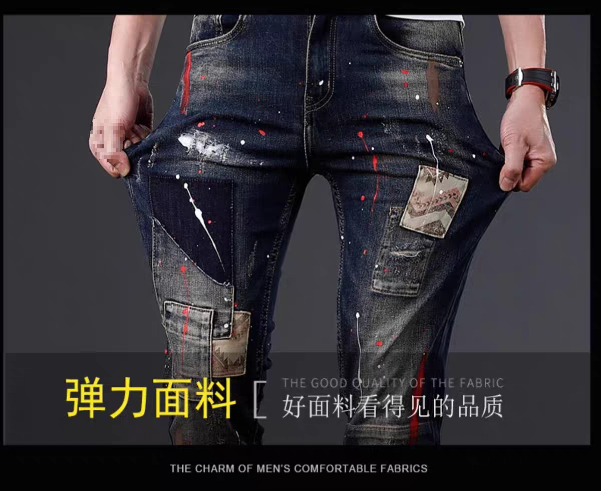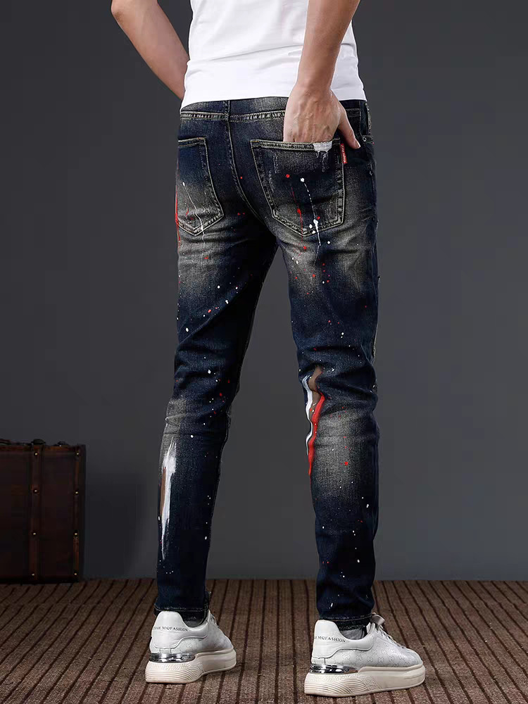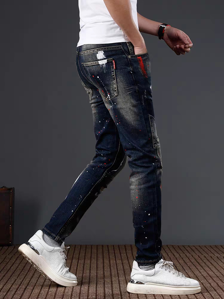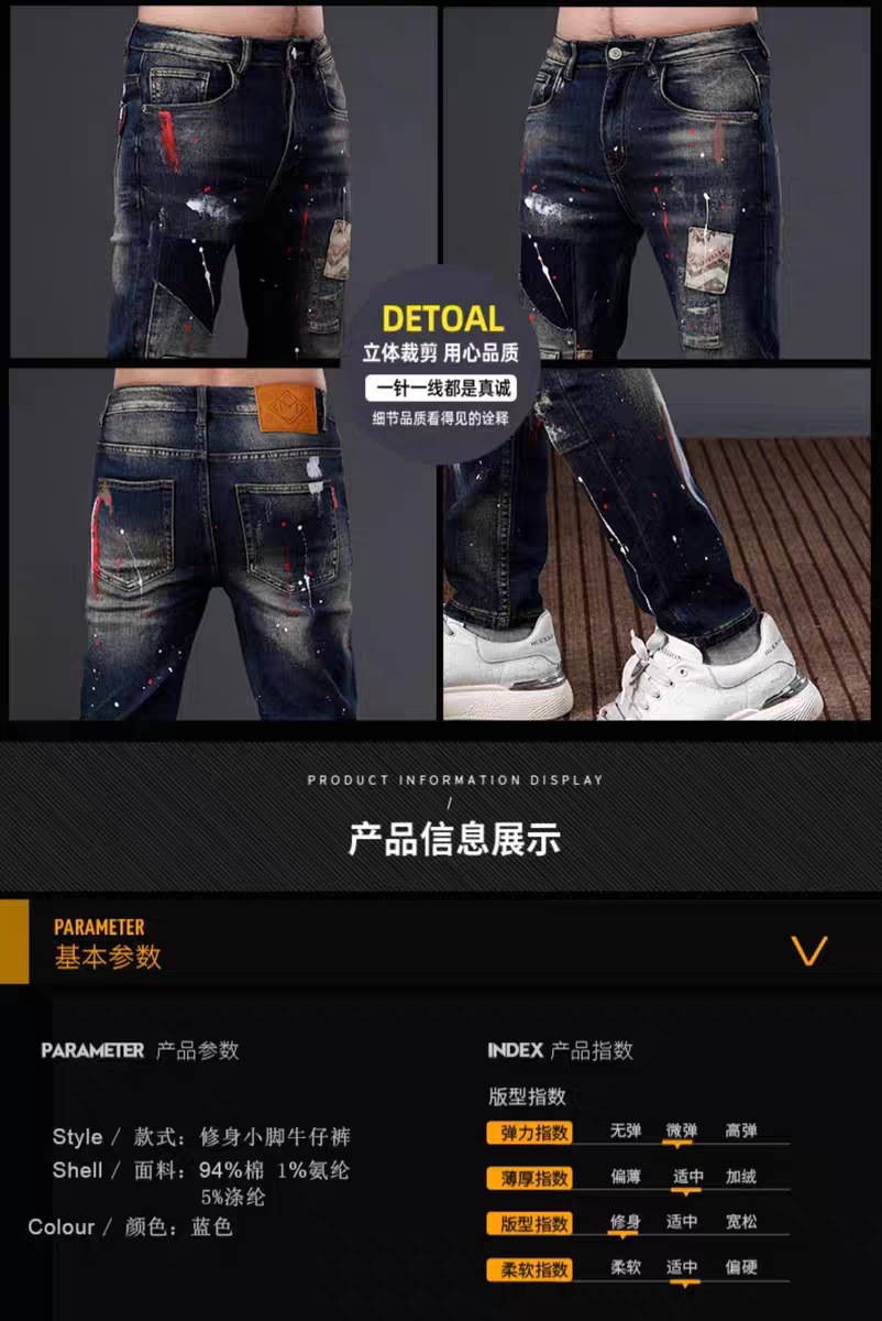 남성용 봄/가을용 투야 탄성 워싱 데미지 진, 스트레이트 루즈핏, 유럽/미국 하이 스트리트 스타일 롱 팬츠스토어 가기