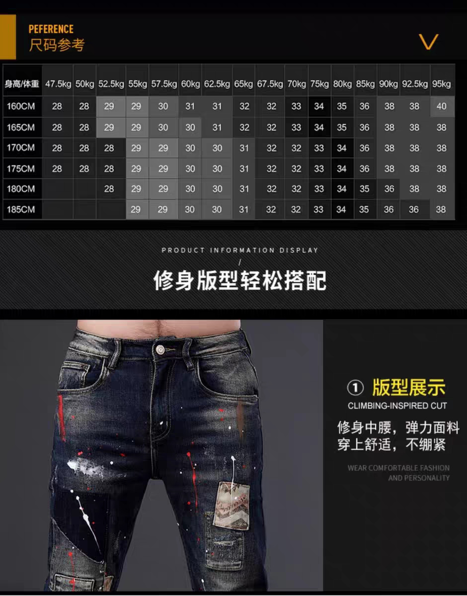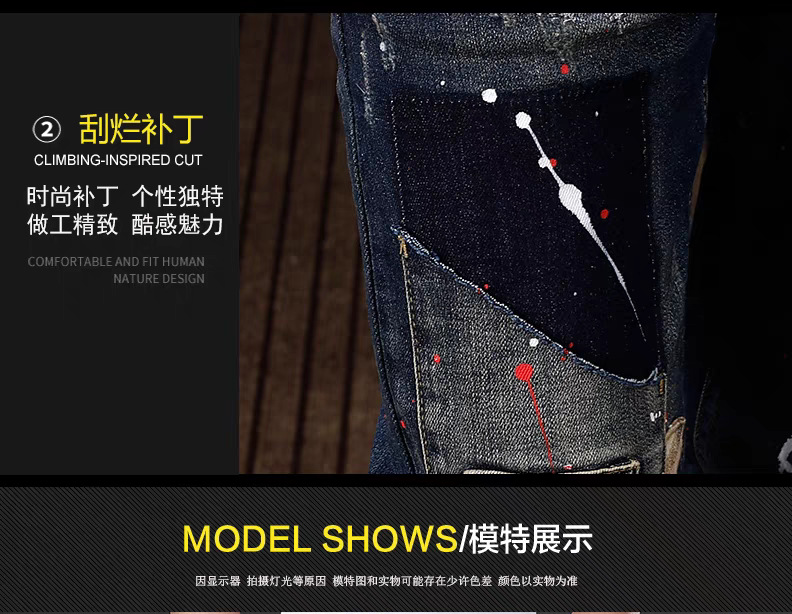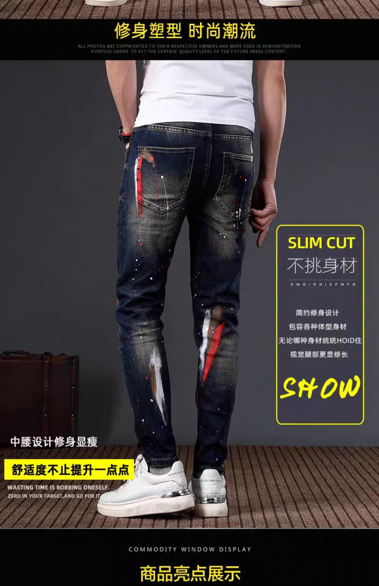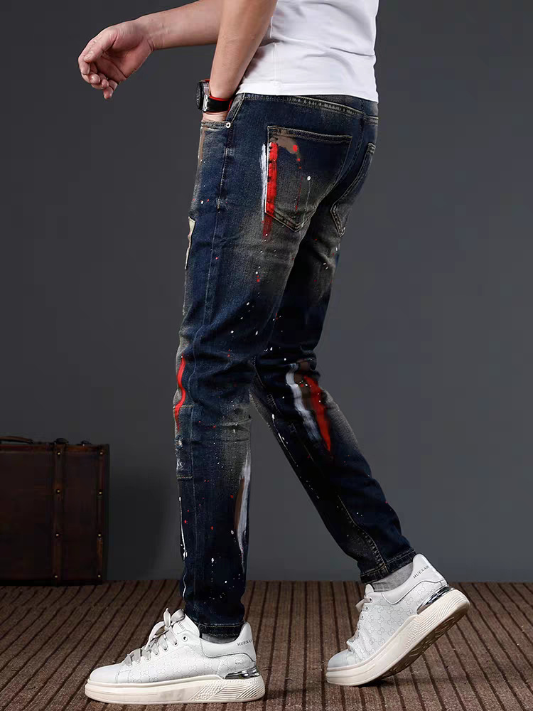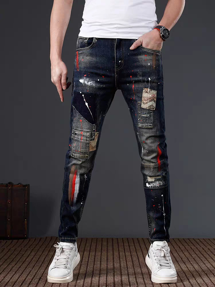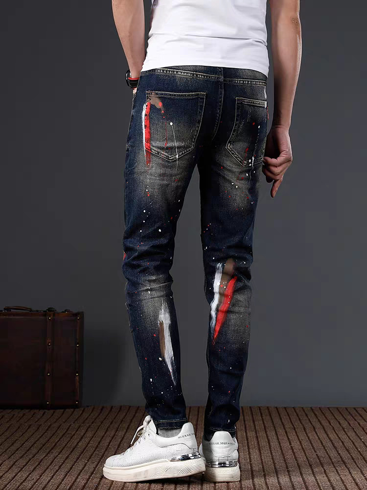 남성용 봄/가을용 투야 탄성 워싱 데미지 진, 스트레이트 루즈핏, 유럽/미국 하이 스트리트 스타일 롱 팬츠스토어 가기