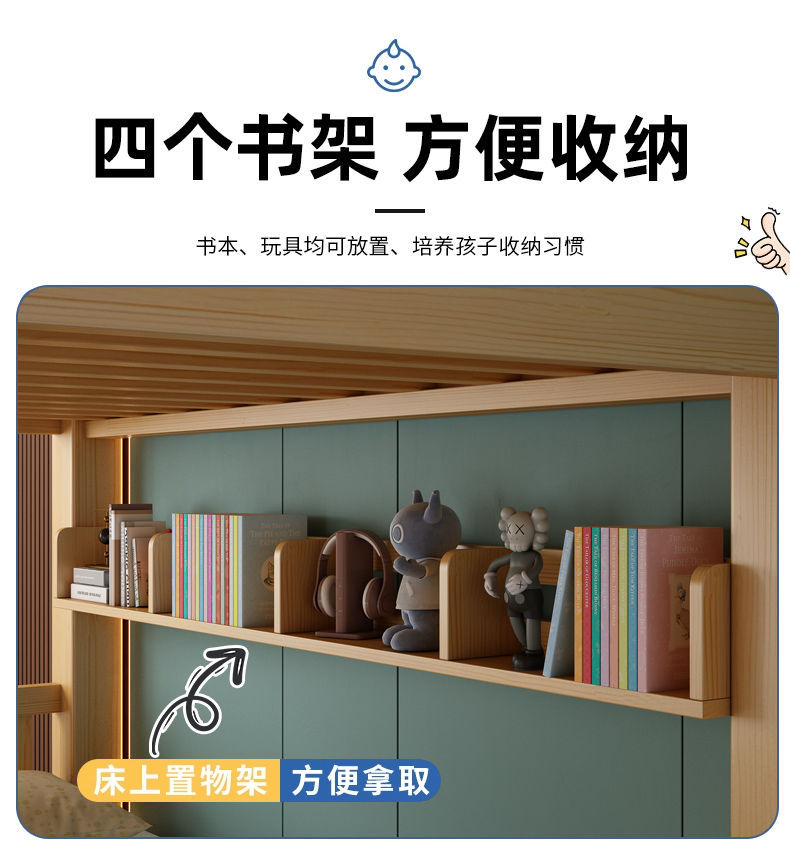 • [두꺼운 원목] 곡선사다리 + 책장 + 서랍 + 코코넛 야자 매트리스