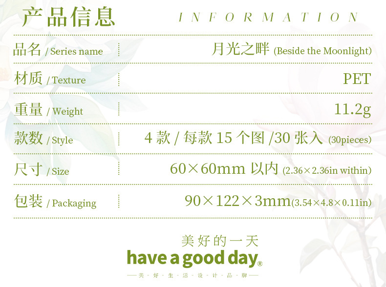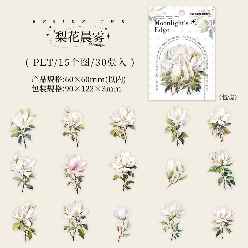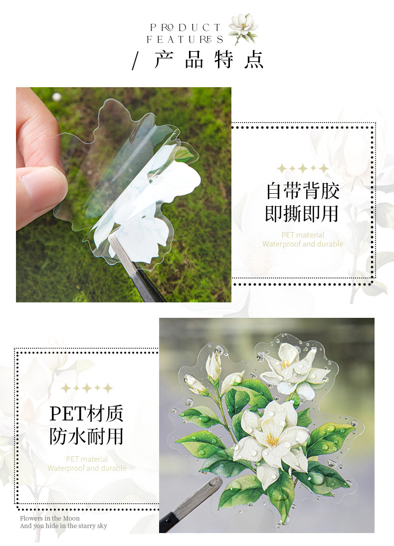 달빛 시리즈 아름다운 날 꽃 테마 PET 스티커 DIY 핸드북 콜라주 장식 재료스토어 가기