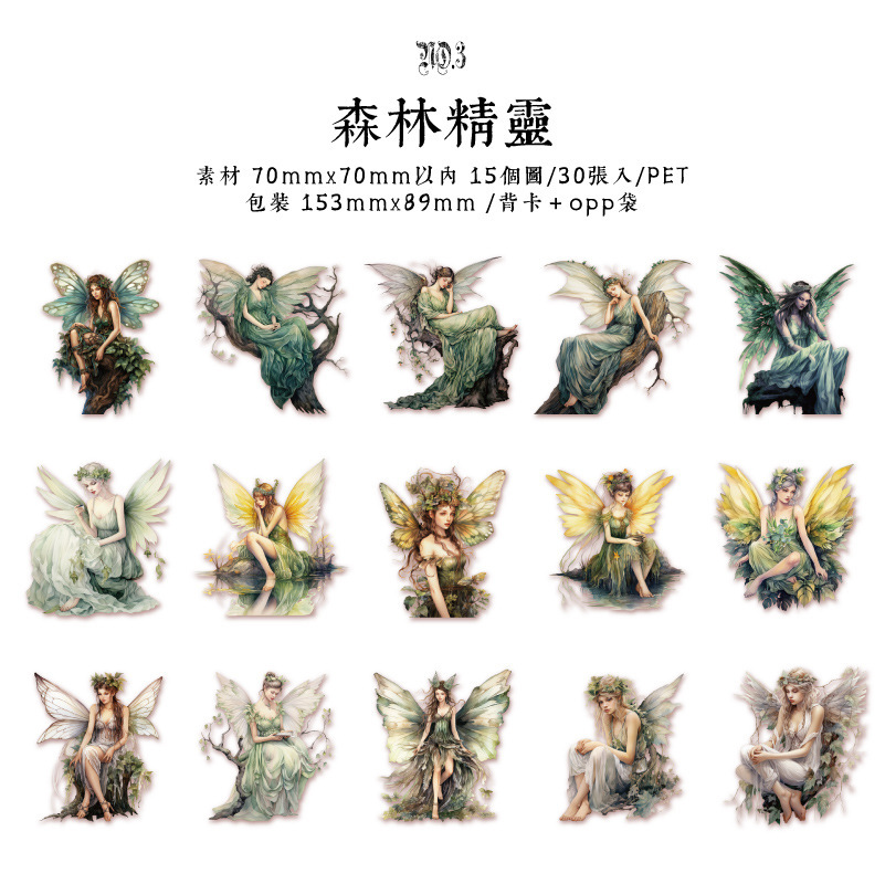 Yanji 다각성 엘프 시리즈 PET 스티커 팩 엘프 테마 핸드북 DIY 재료 장식 스티커 30장 6가지 스타일스토어 가기