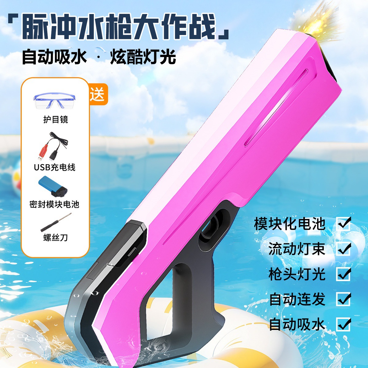 물총 어린이 장난감 전기 펄스 연속 물총 소녀 총구 빛나는 장난감 어린이 고압 물총