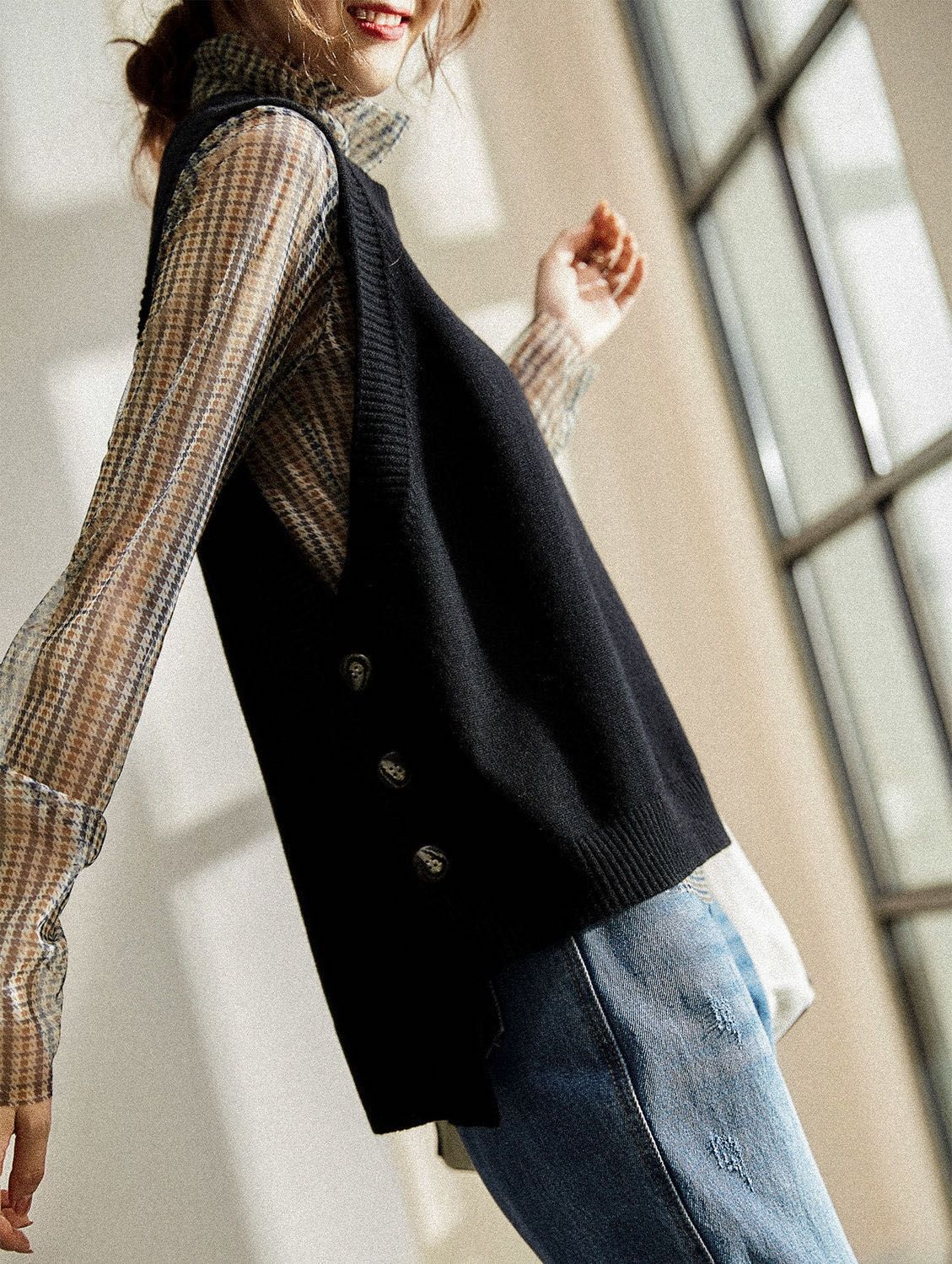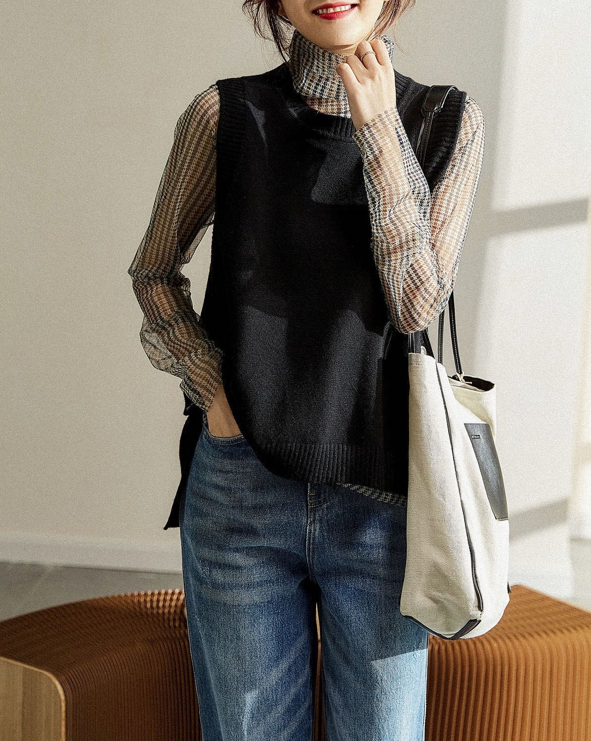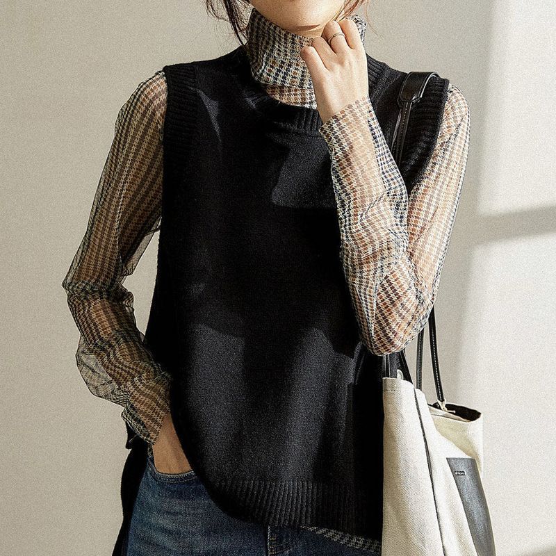 니트 조끼와 양복 조끼 울 2025 새로운 봄, 가을, 겨울 겉옷 여성 스웨터 조끼 레이어링스토어 가기