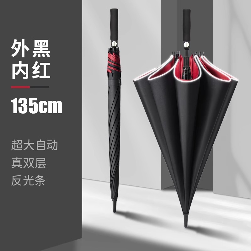 • [강화 우산 프레임] 이중 자동 직선 손잡이 150CM 초대형 모델 - 외부는 검정색, 내부는 빨간색 [유리 섬유