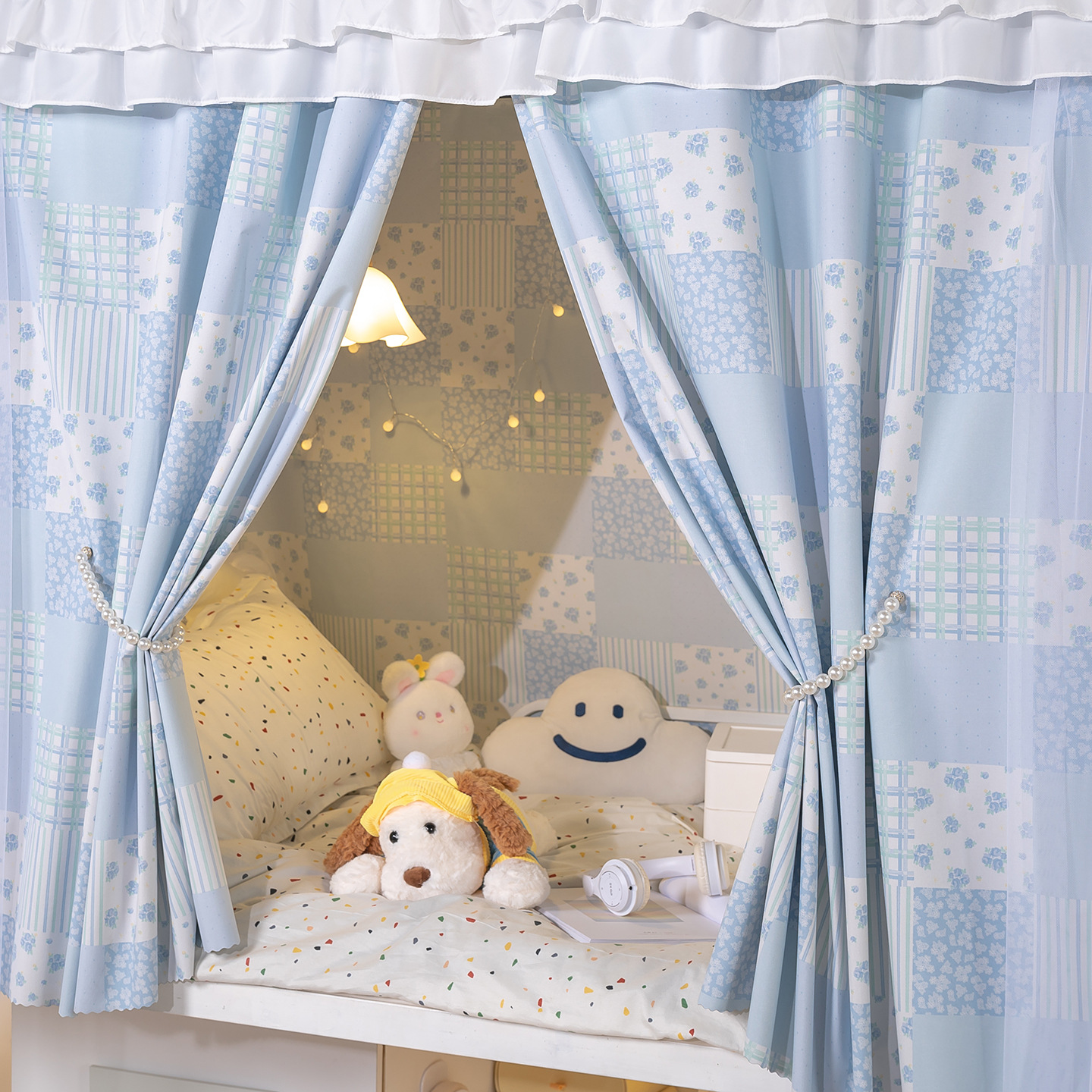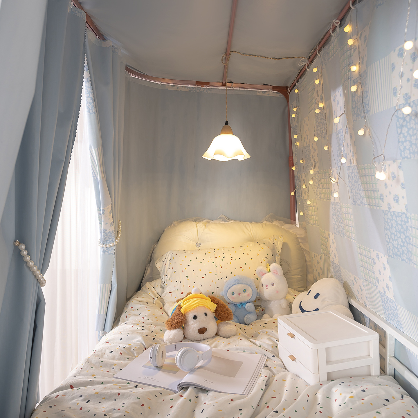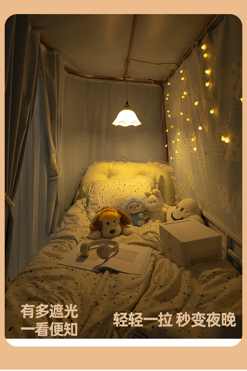 공주 스타일 U자형 더블 슬라이드 트랙 학생 기숙사 침대 커튼 모기장 일체형 강력한 차광 이층 슬라이드 커튼스토어 가기