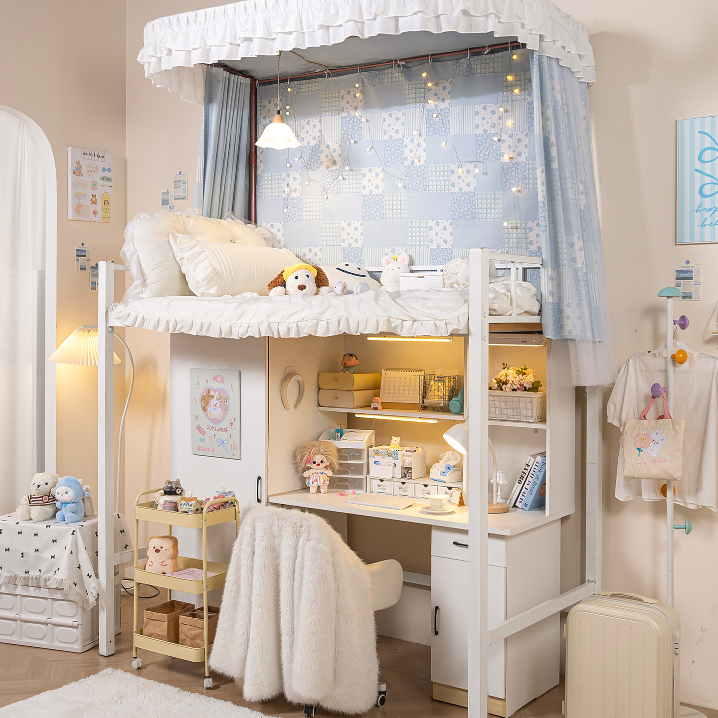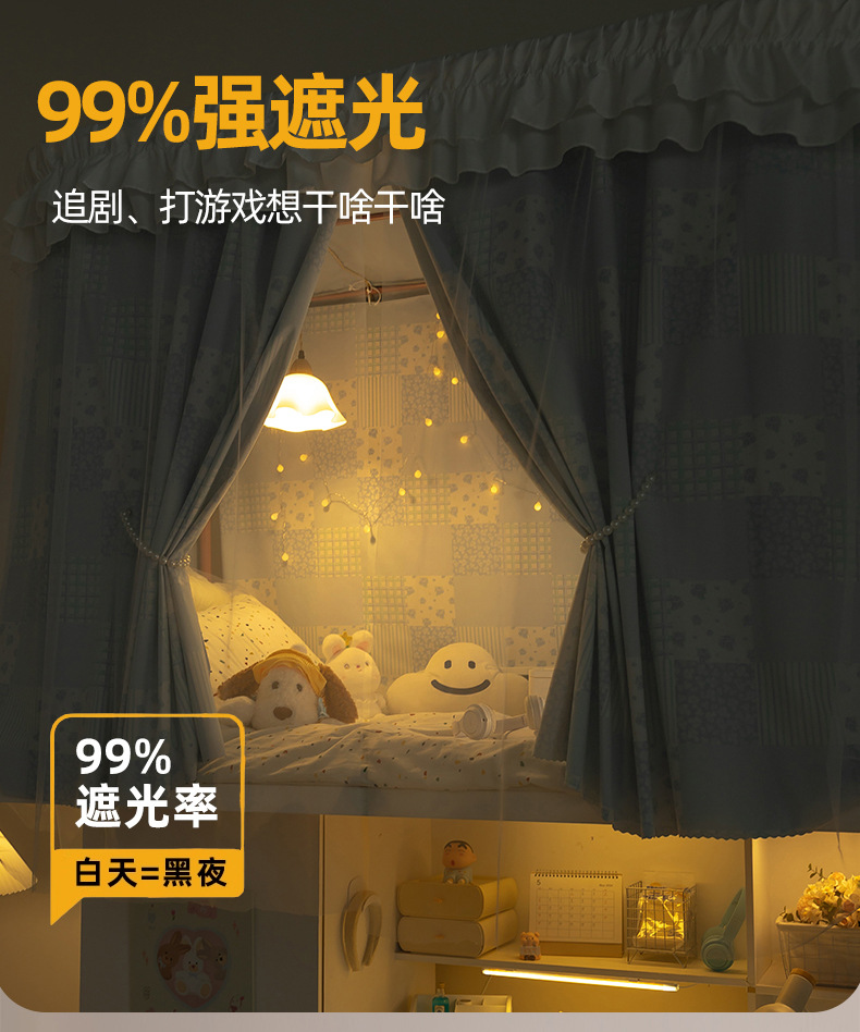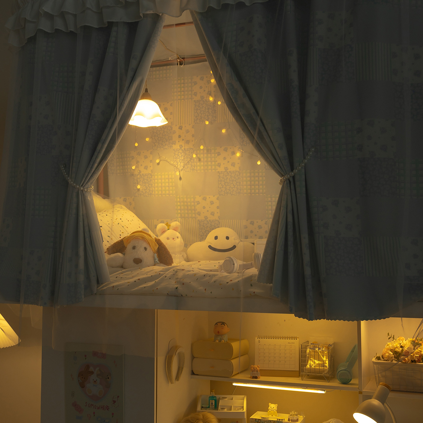 공주 스타일 U자형 더블 슬라이드 트랙 학생 기숙사 침대 커튼 모기장 일체형 강력한 차광 이층 슬라이드 커튼스토어 가기