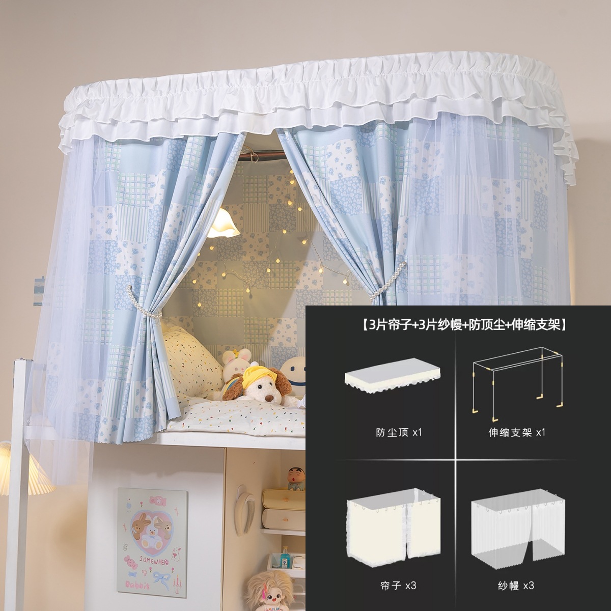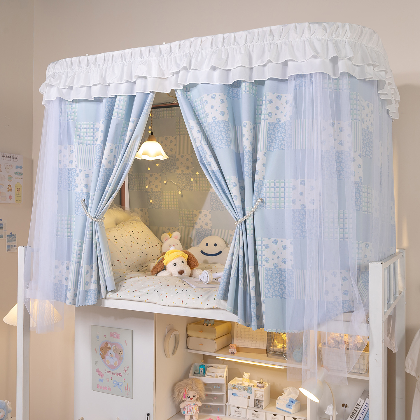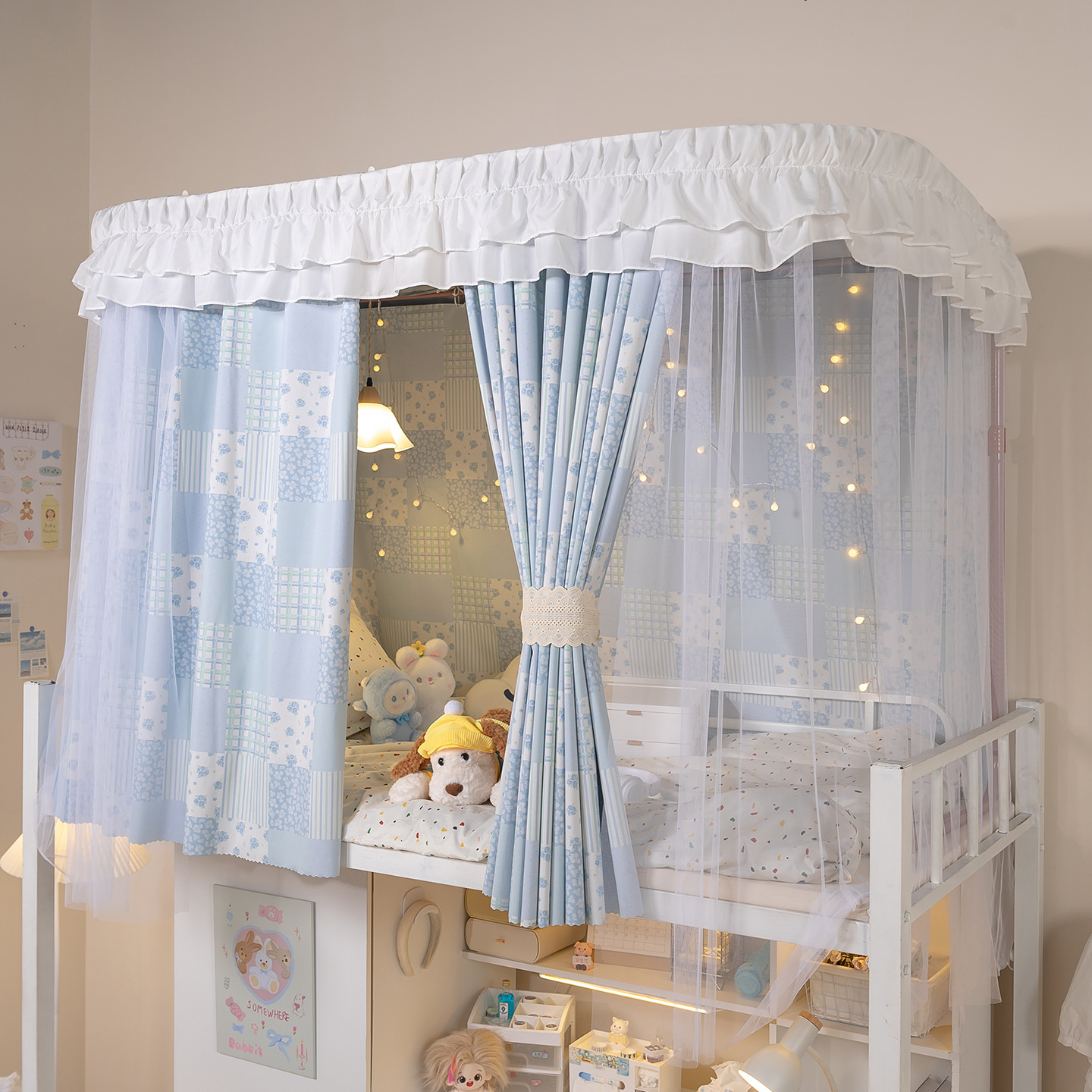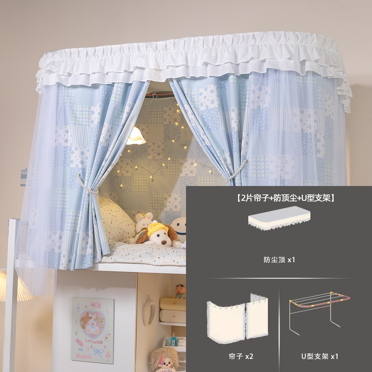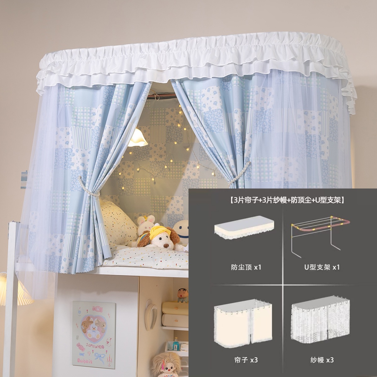 공주 스타일 U자형 더블 슬라이드 트랙 학생 기숙사 침대 커튼 모기장 일체형 강력한 차광 이층 슬라이드 커튼