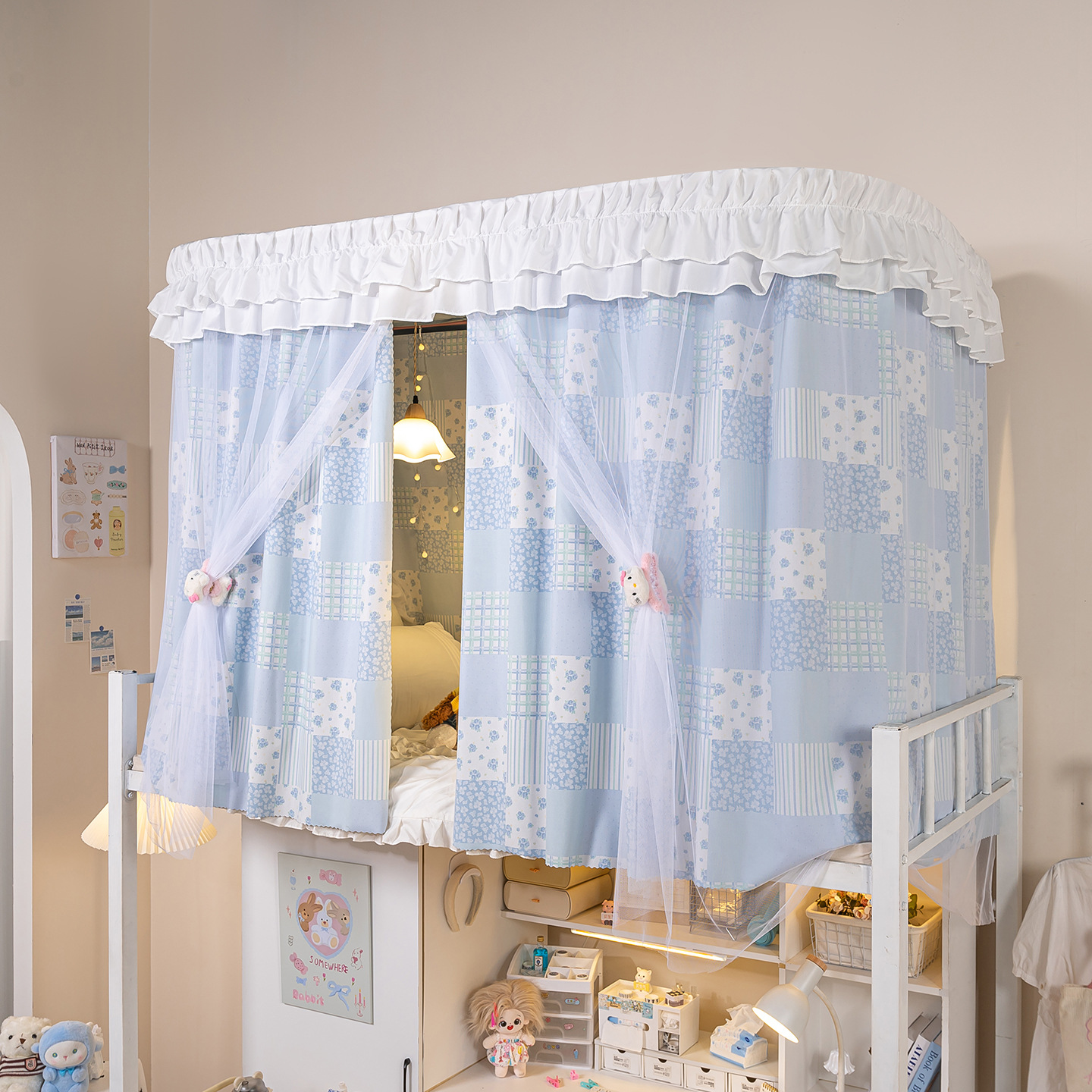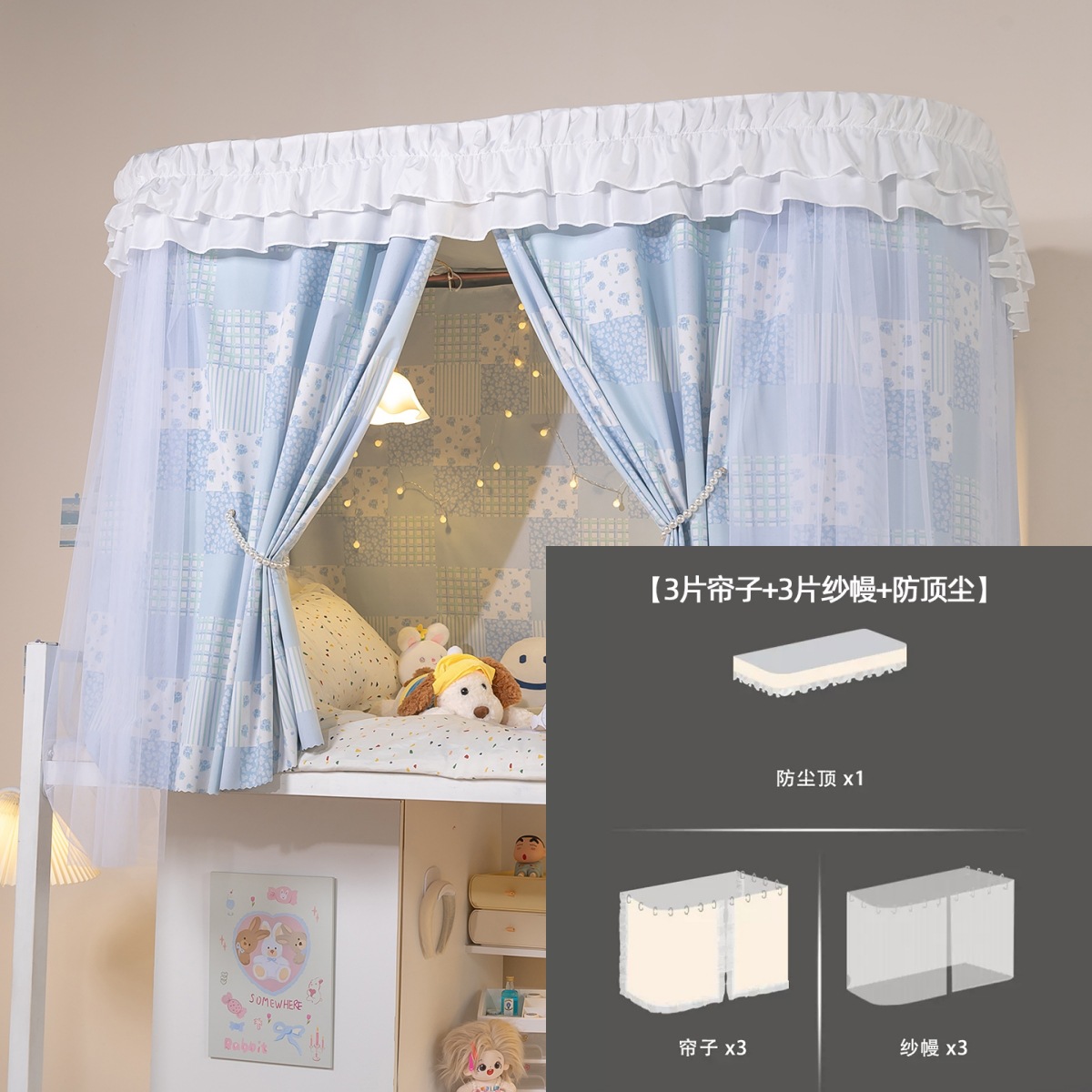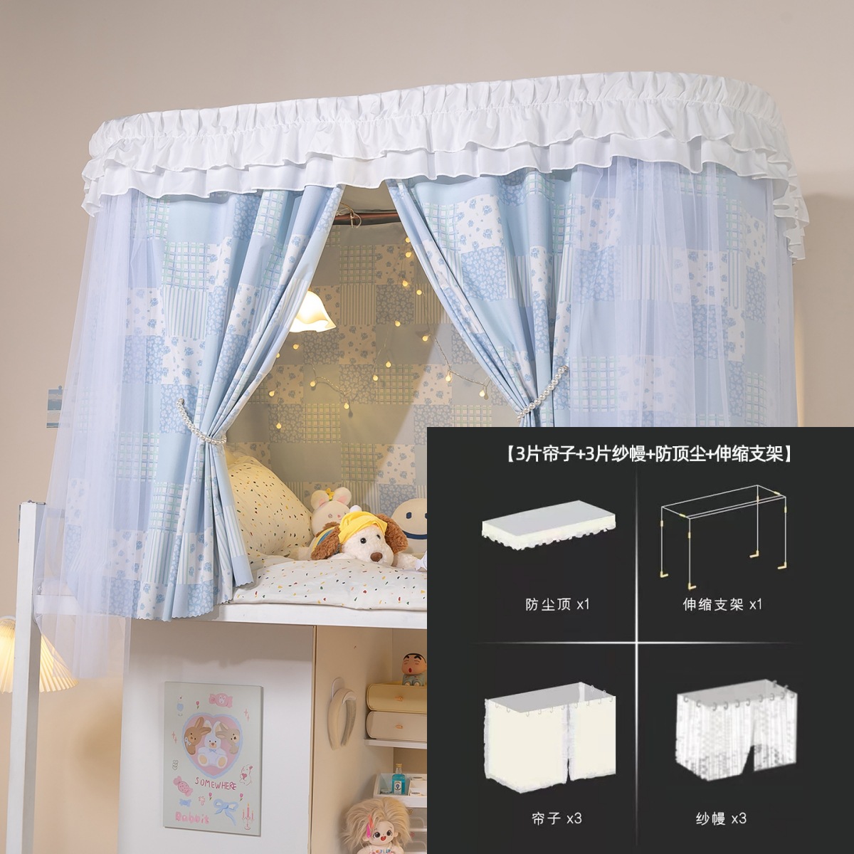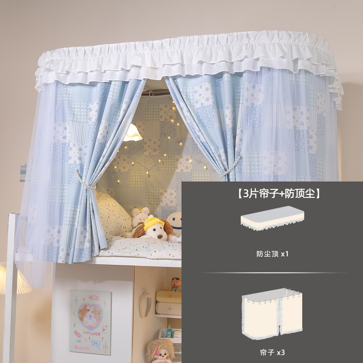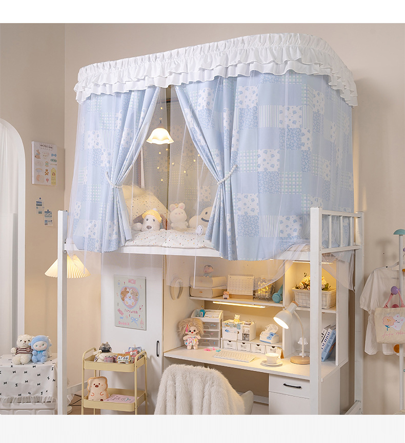 공주 스타일 U자형 더블 슬라이드 트랙 학생 기숙사 침대 커튼 모기장 일체형 강력한 차광 이층 슬라이드 커튼