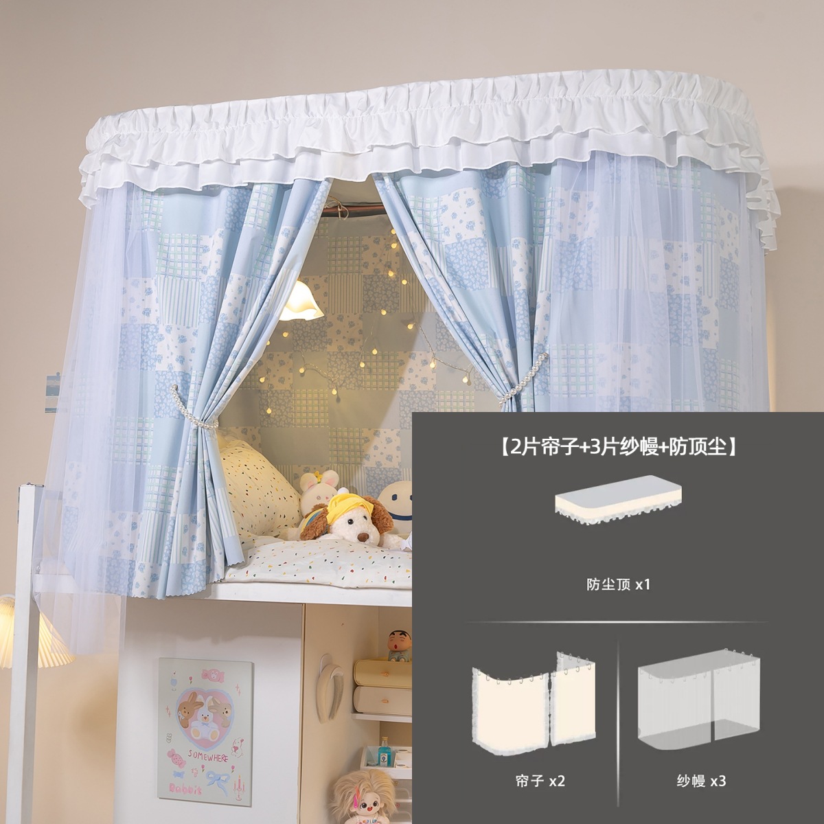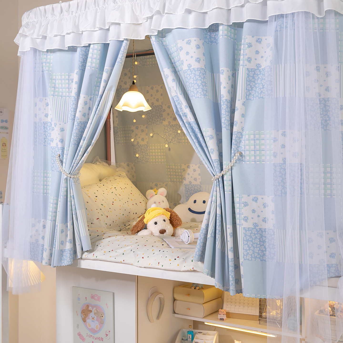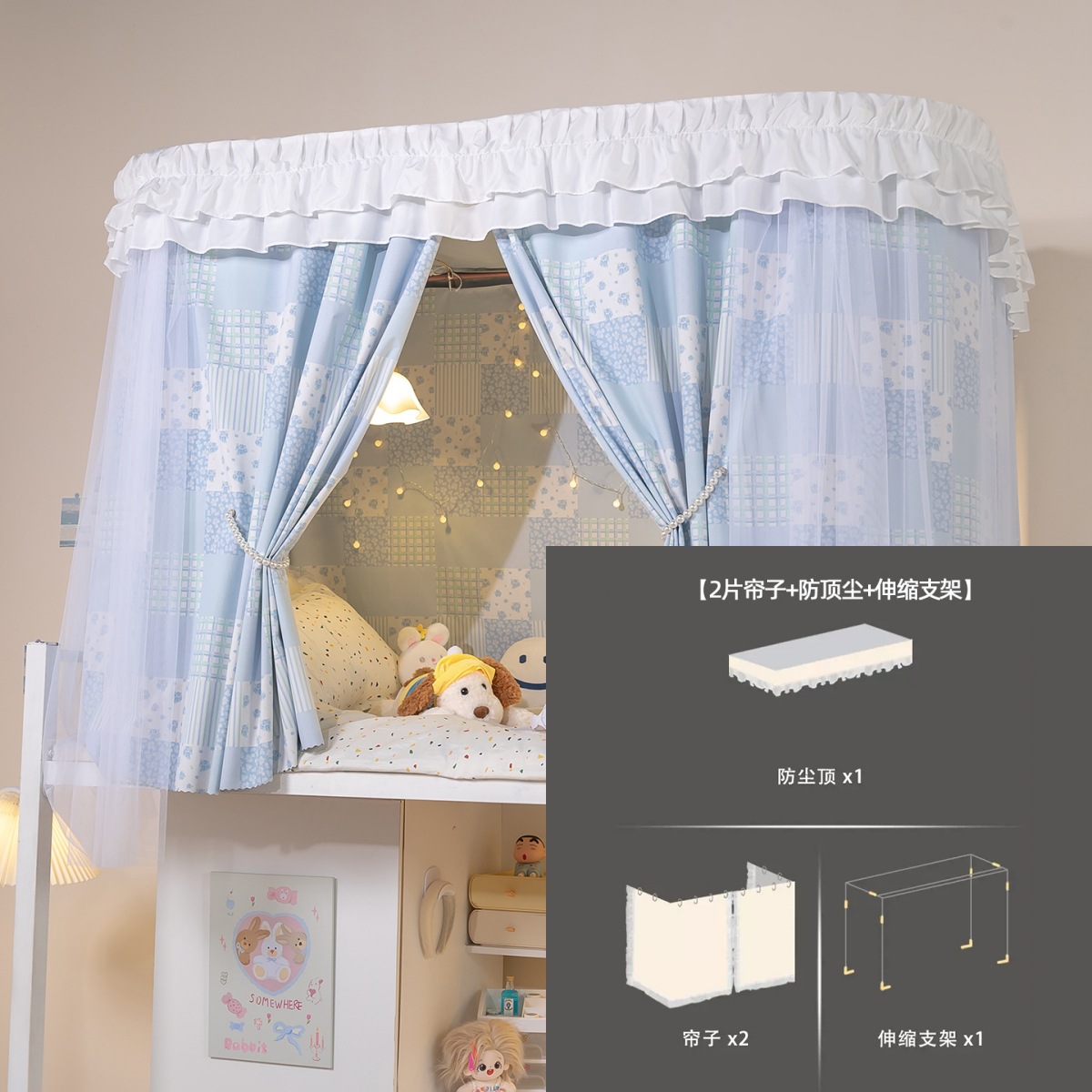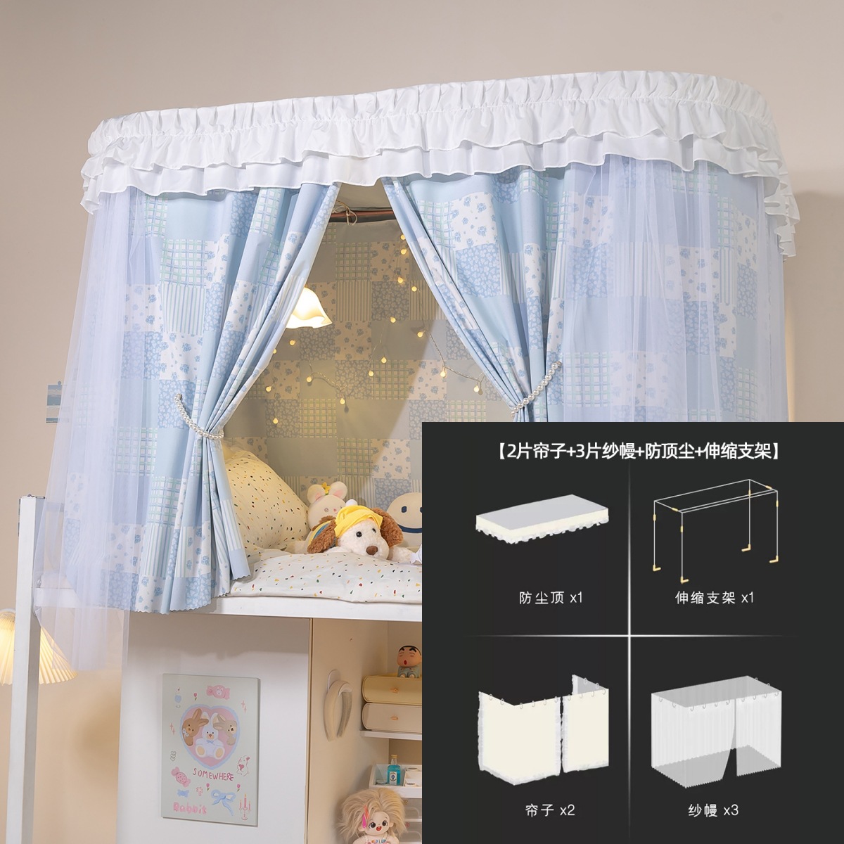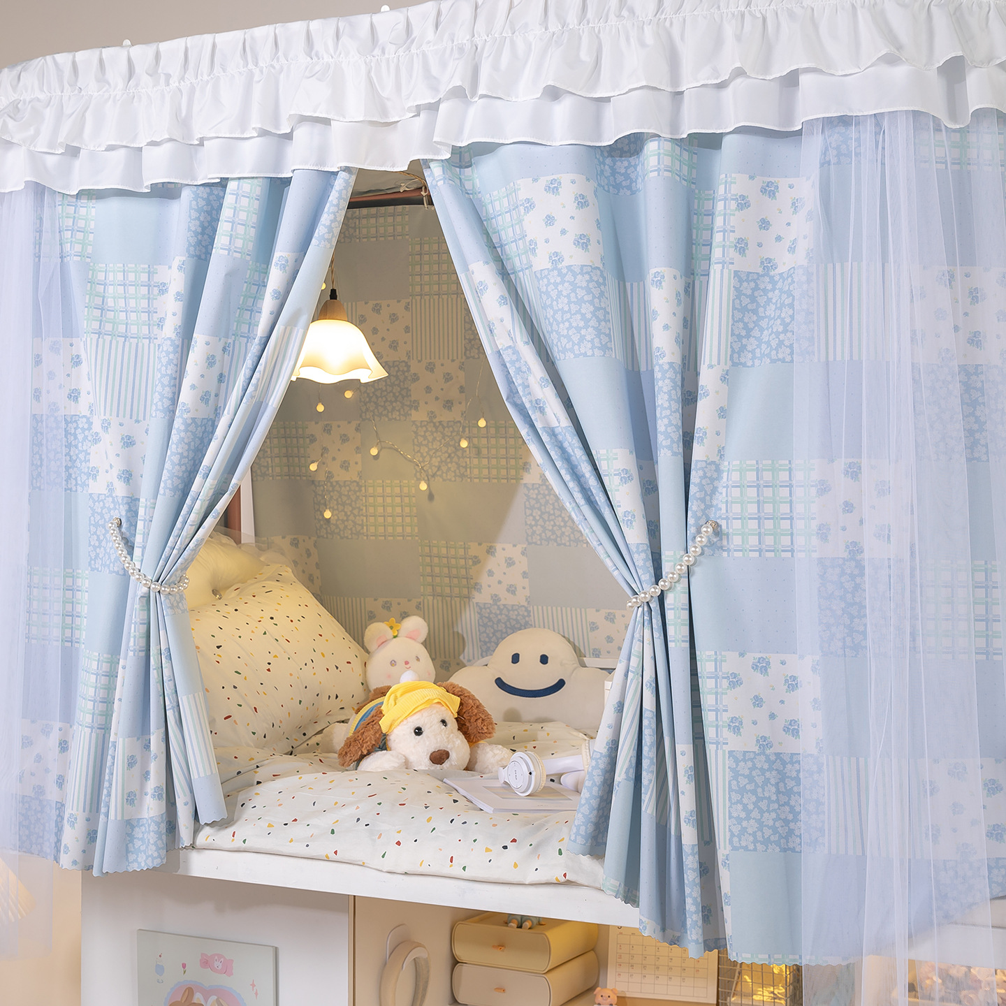 공주 스타일 U자형 더블 슬라이드 트랙 학생 기숙사 침대 커튼 모기장 일체형 강력한 차광 이층 슬라이드 커튼