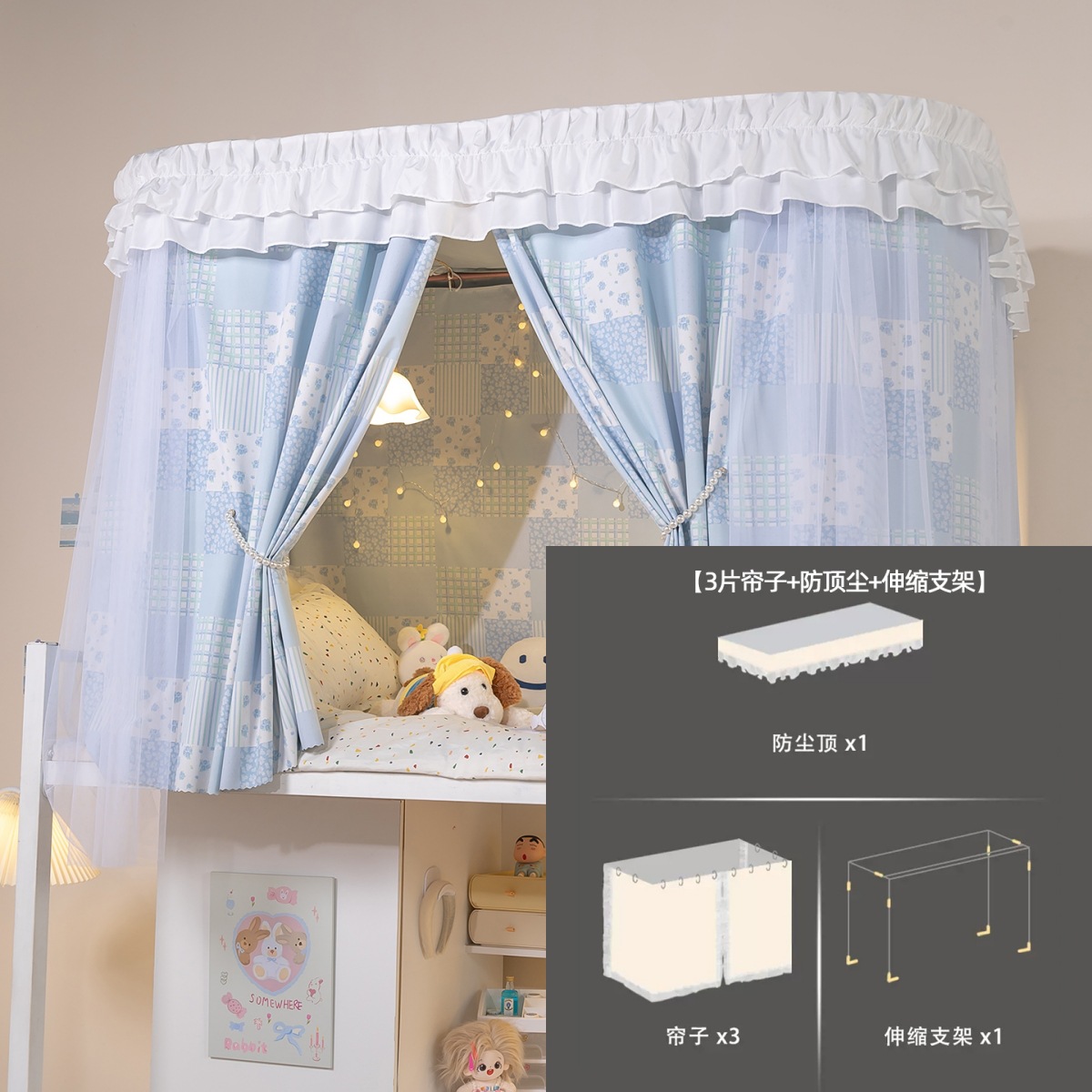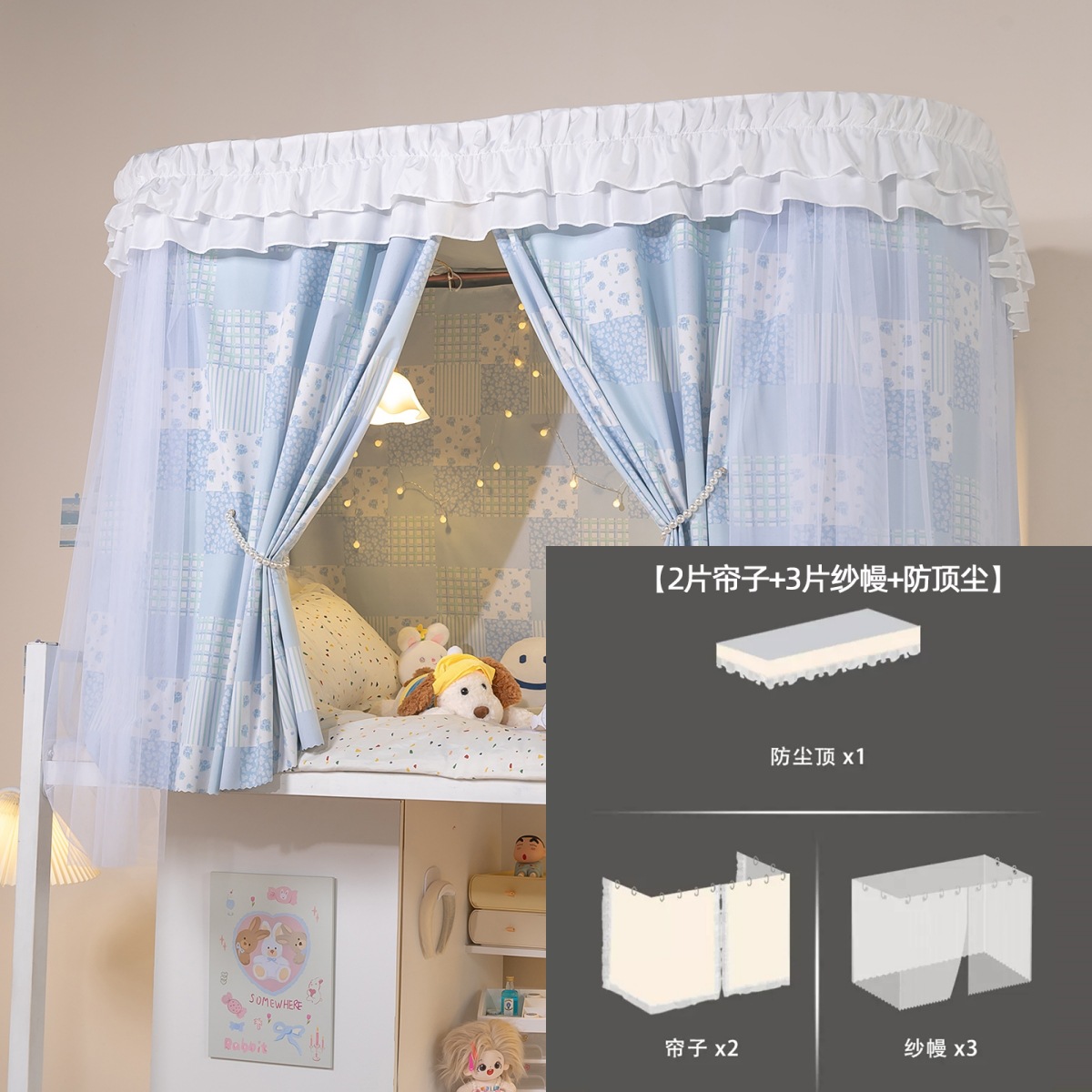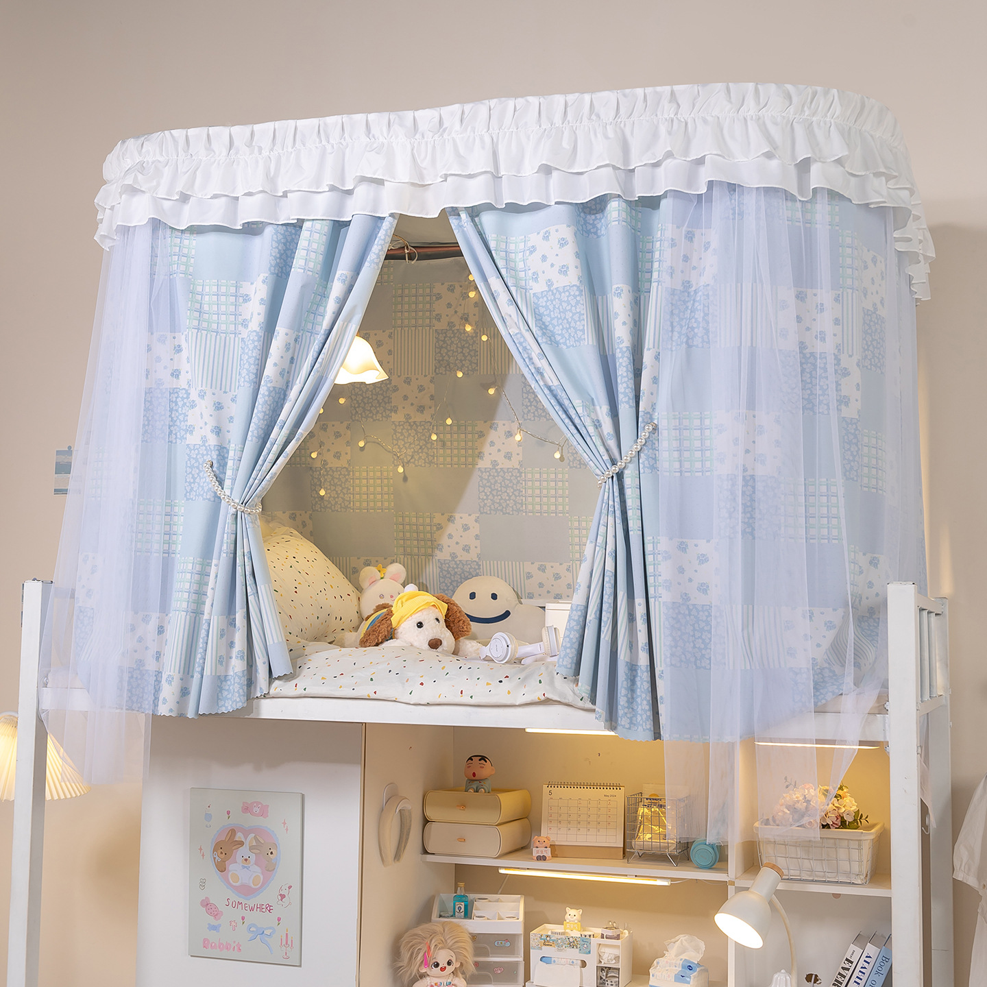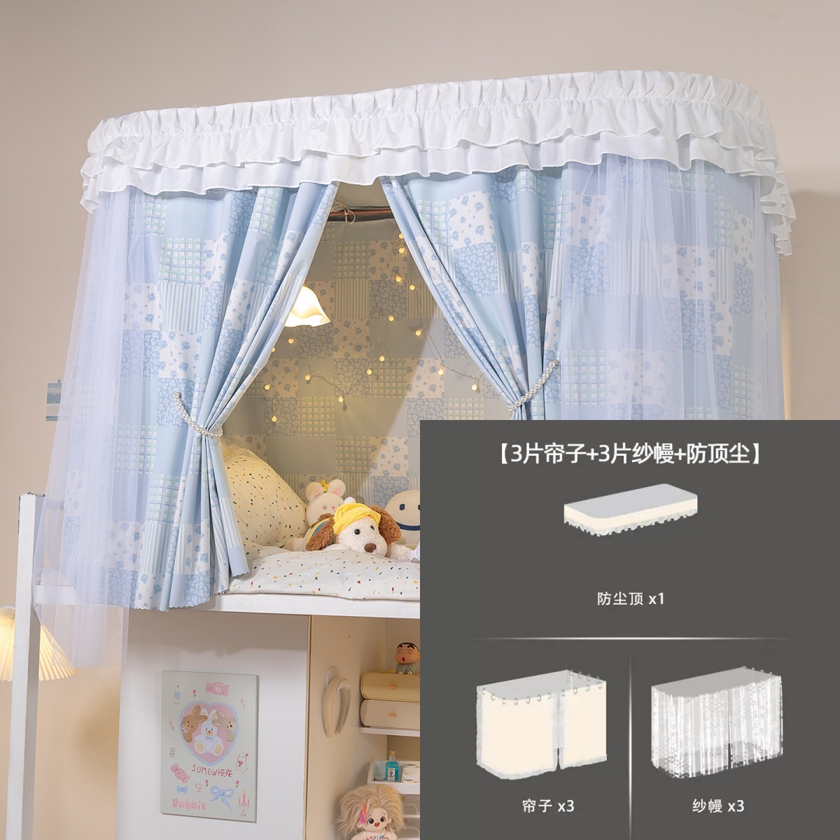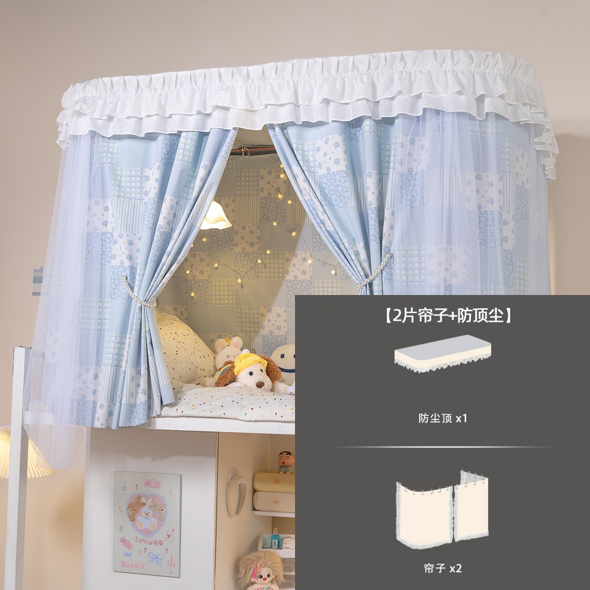 공주 스타일 U자형 더블 슬라이드 트랙 학생 기숙사 침대 커튼 모기장 일체형 강력한 차광 이층 슬라이드 커튼