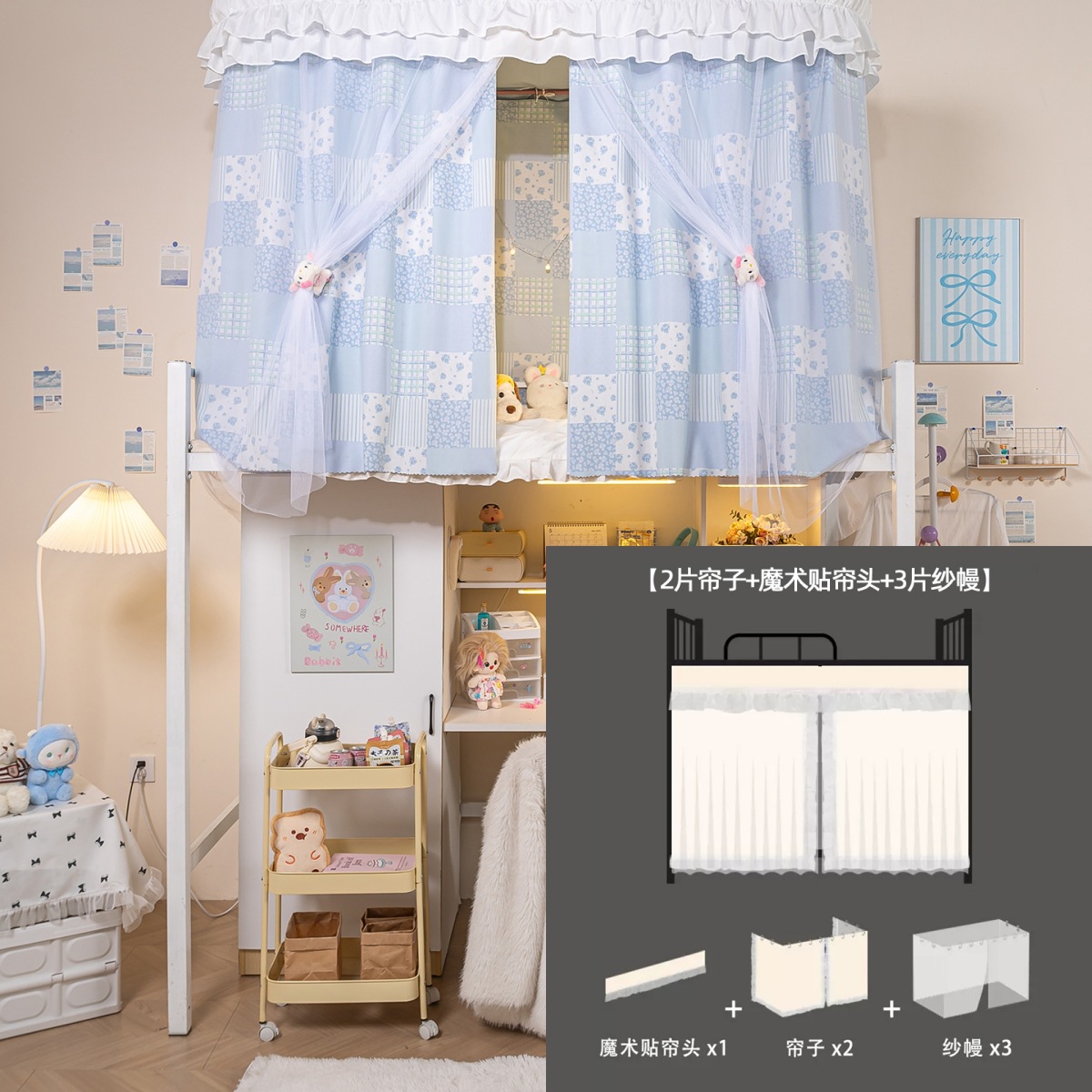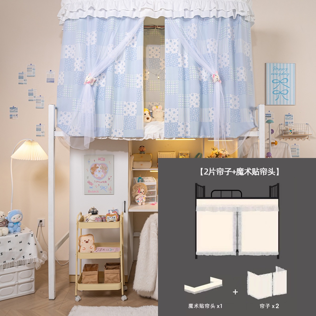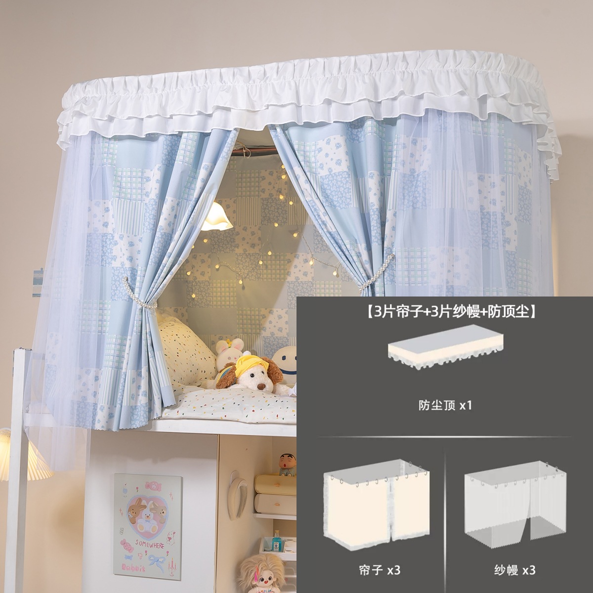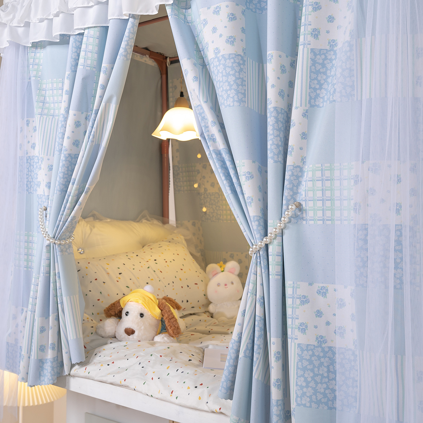 공주 스타일 U자형 더블 슬라이드 트랙 학생 기숙사 침대 커튼 모기장 일체형 강력한 차광 이층 슬라이드 커튼