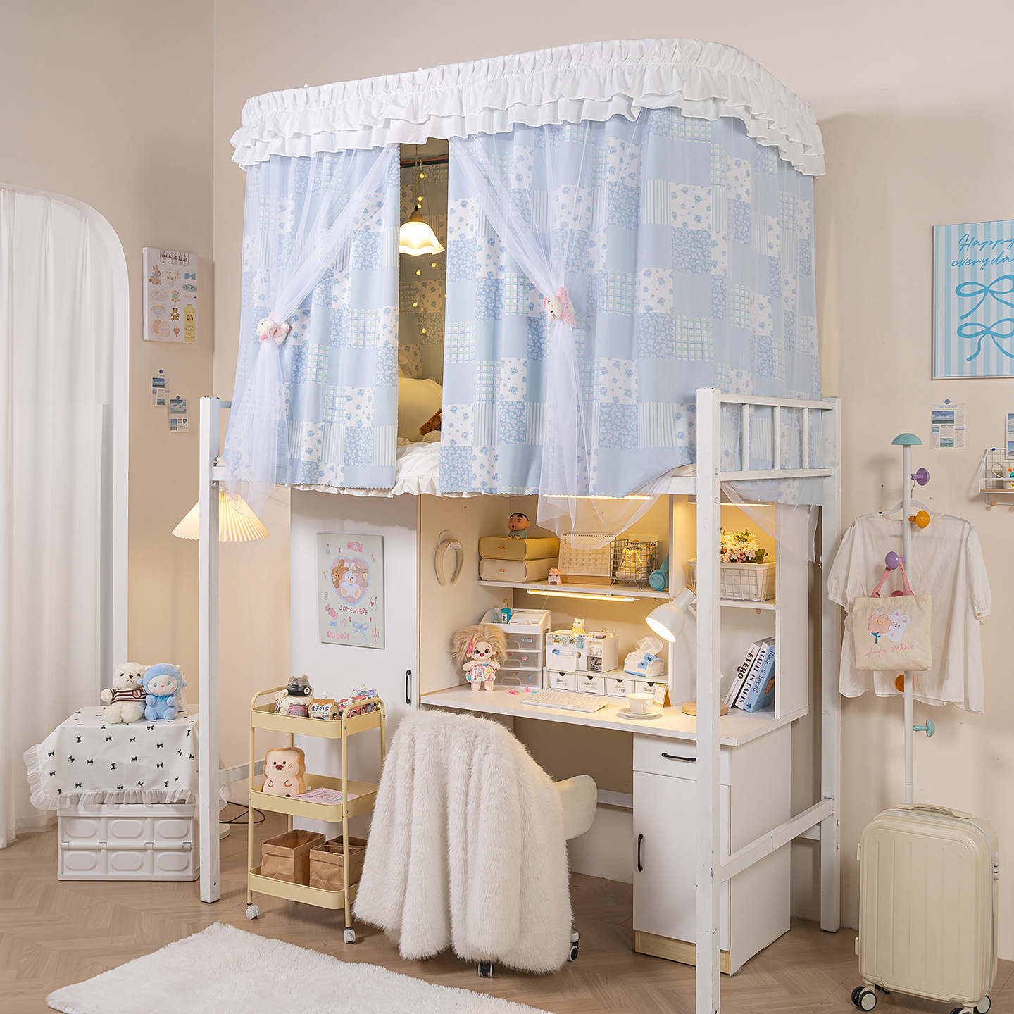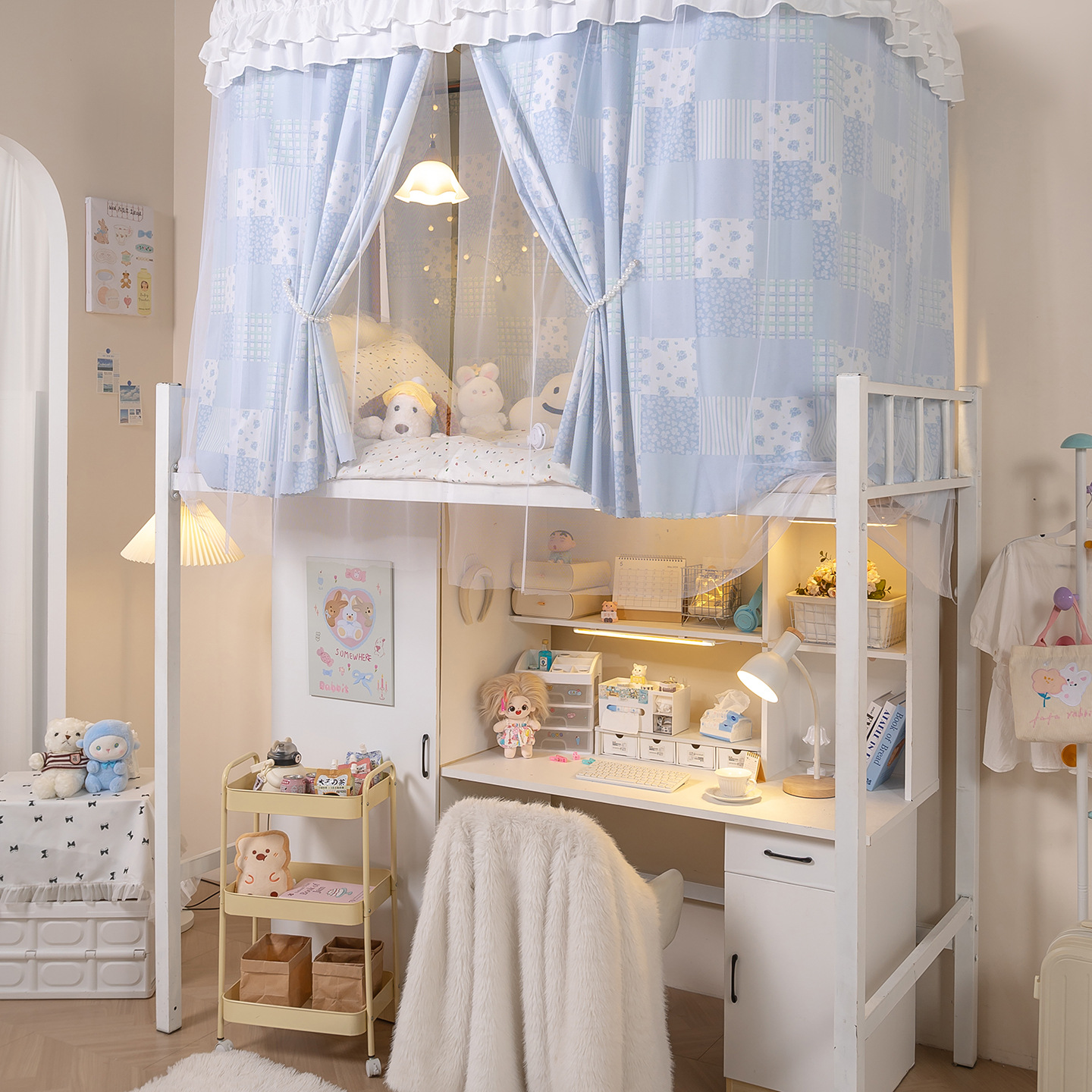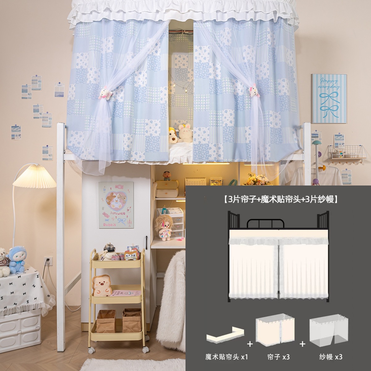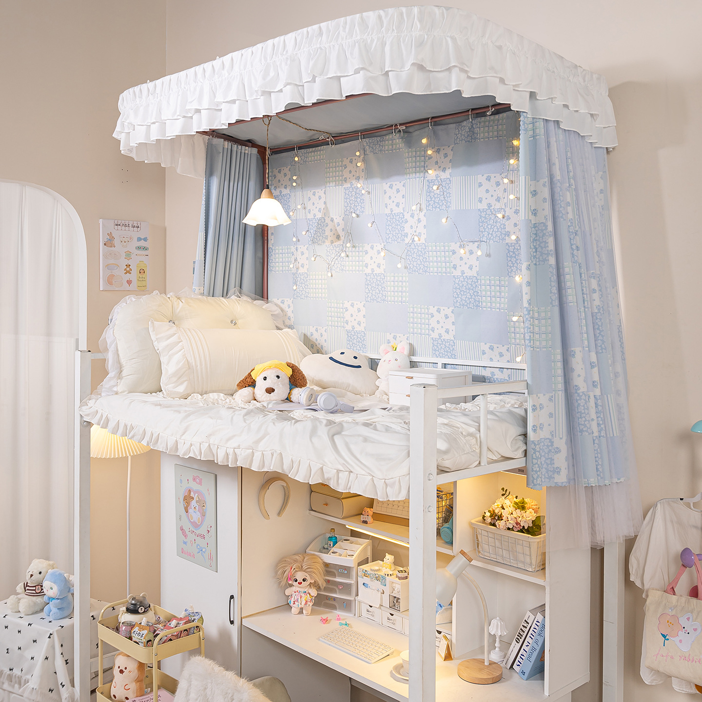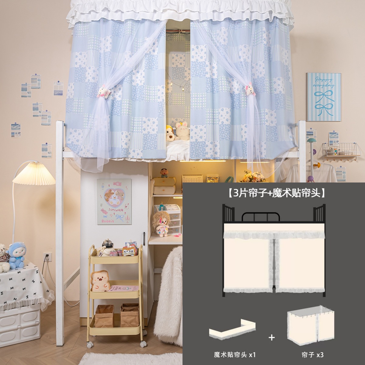 공주 스타일 U자형 더블 슬라이드 트랙 학생 기숙사 침대 커튼 모기장 일체형 강력한 차광 이층 슬라이드 커튼