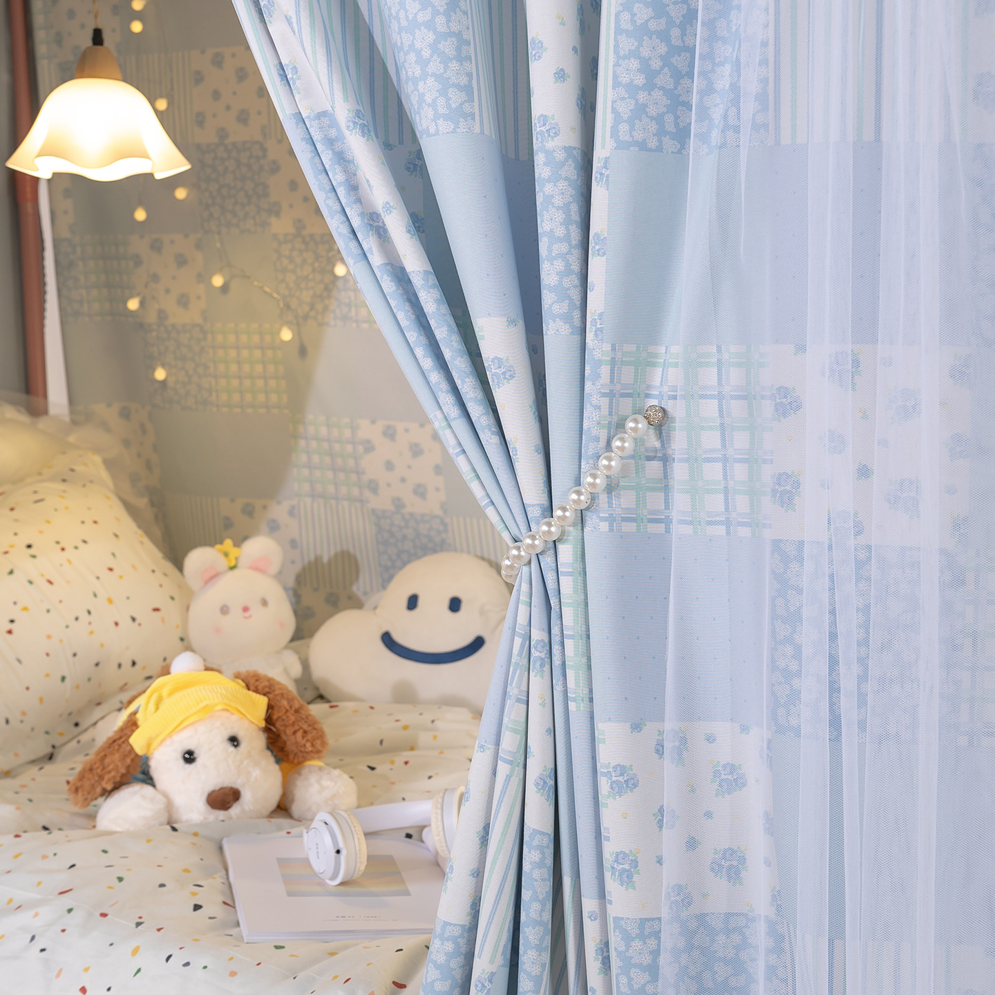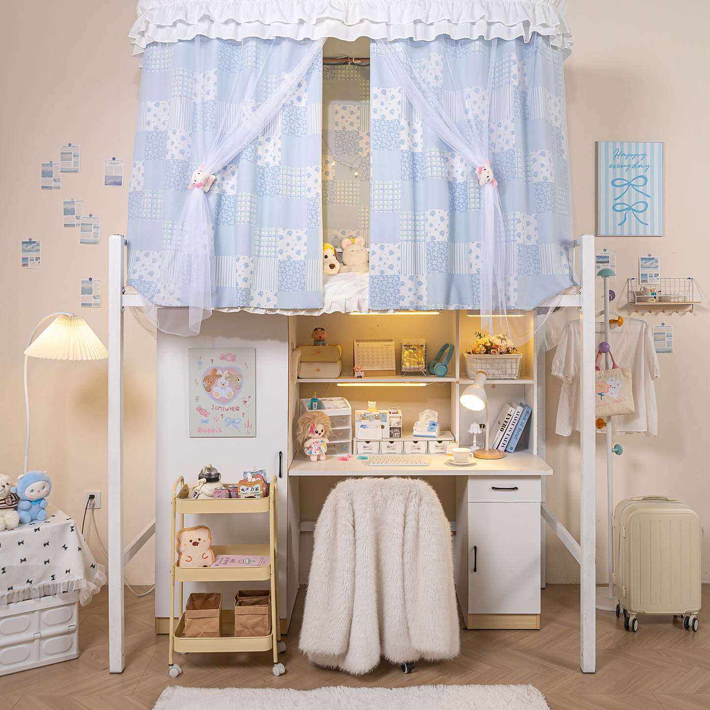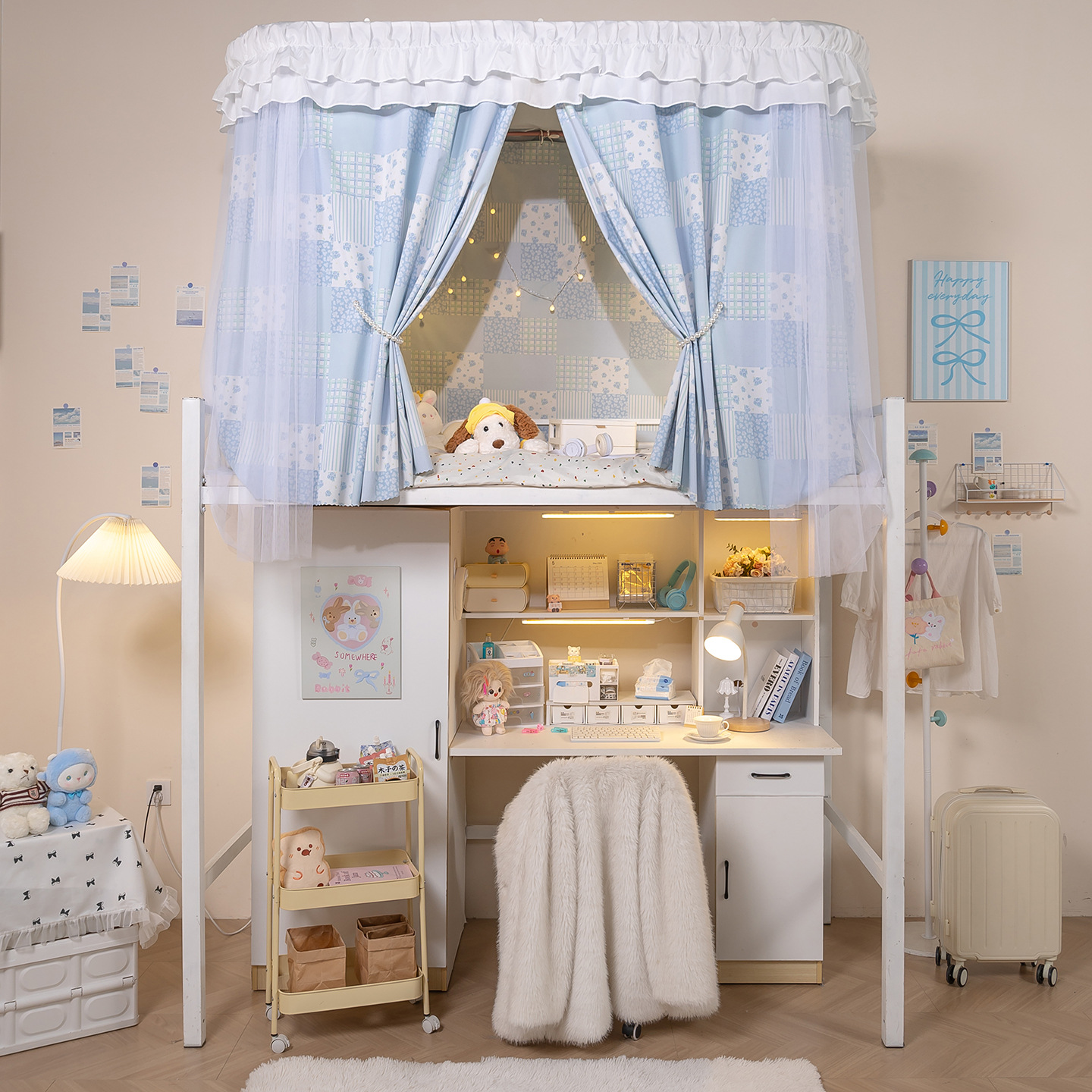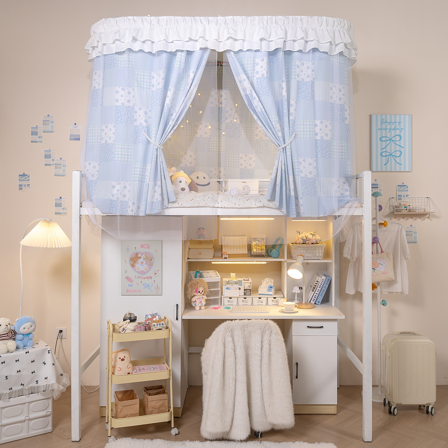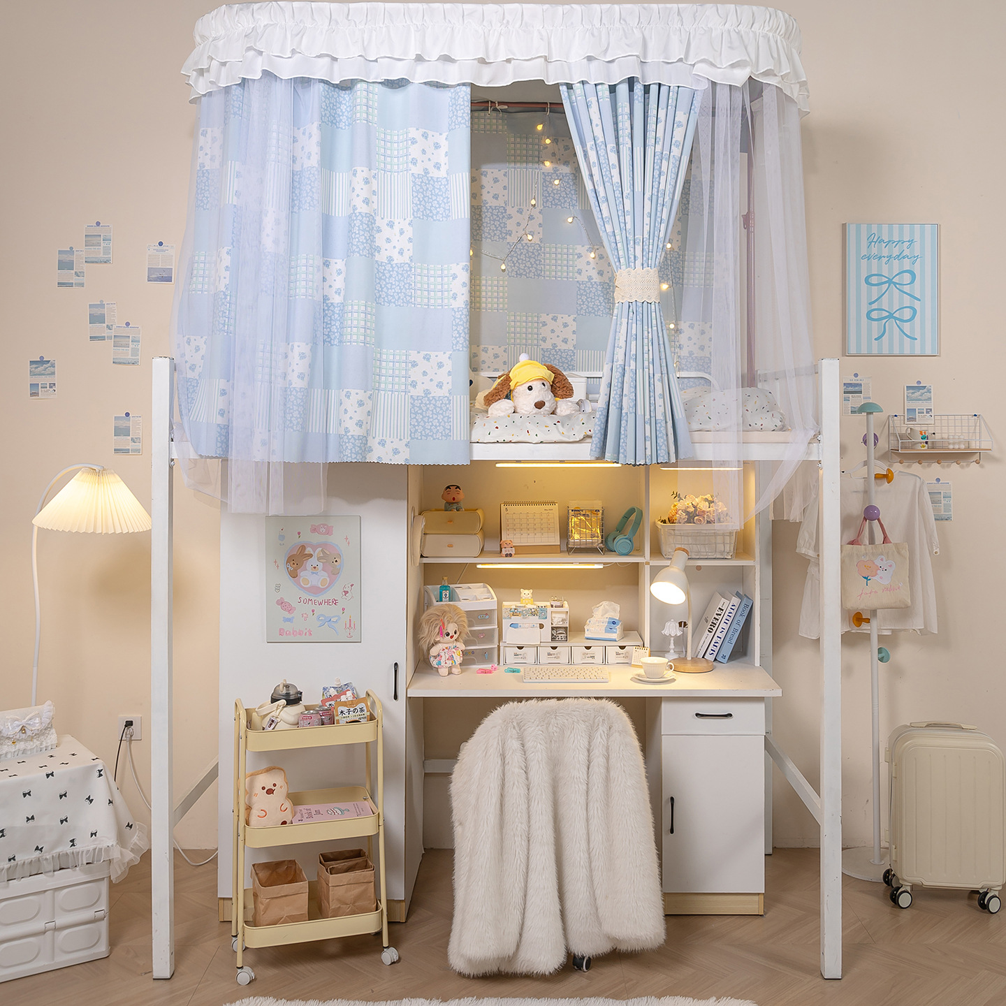 공주 스타일 U자형 더블 슬라이드 트랙 학생 기숙사 침대 커튼 모기장 일체형 강력한 차광 이층 슬라이드 커튼