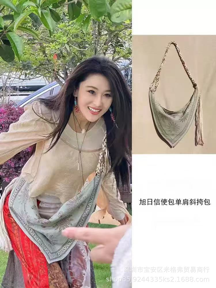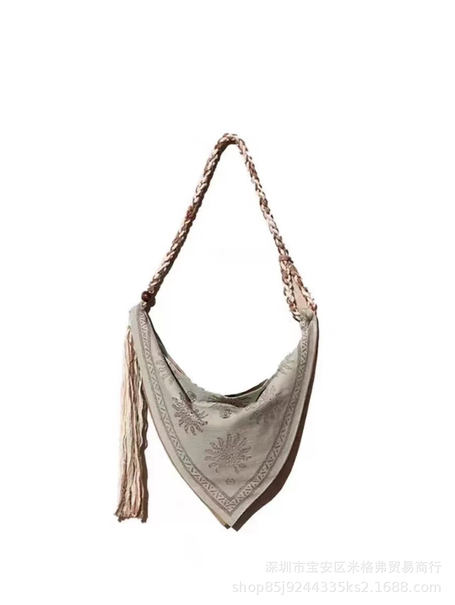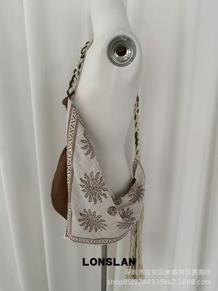 인터넷 연예인 같은 스타일 2025 새로운 캐주얼 보헤미안 스타일 태슬 린넨 로프 숄더 크로스백 여성용 트렌디 백