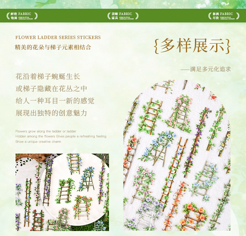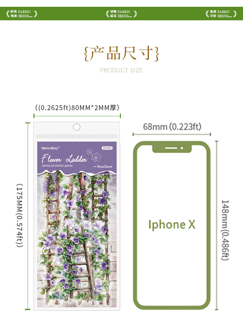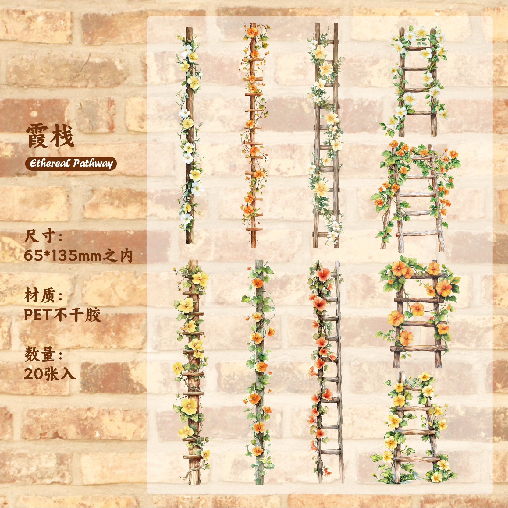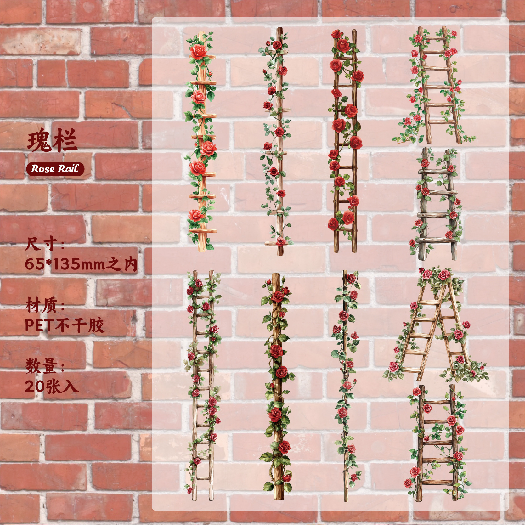 Retro.Story 꽃 사다리 시리즈 스티커 팩 만화 가벼운 중세 분위기 핸드북 장식 스티커 6가지 스타일