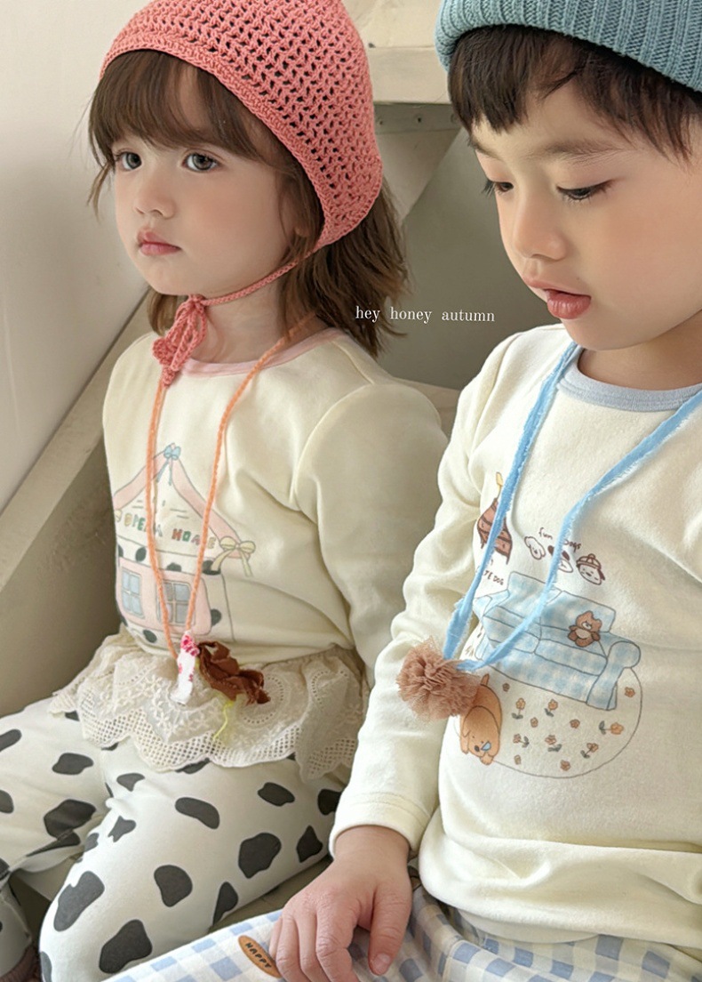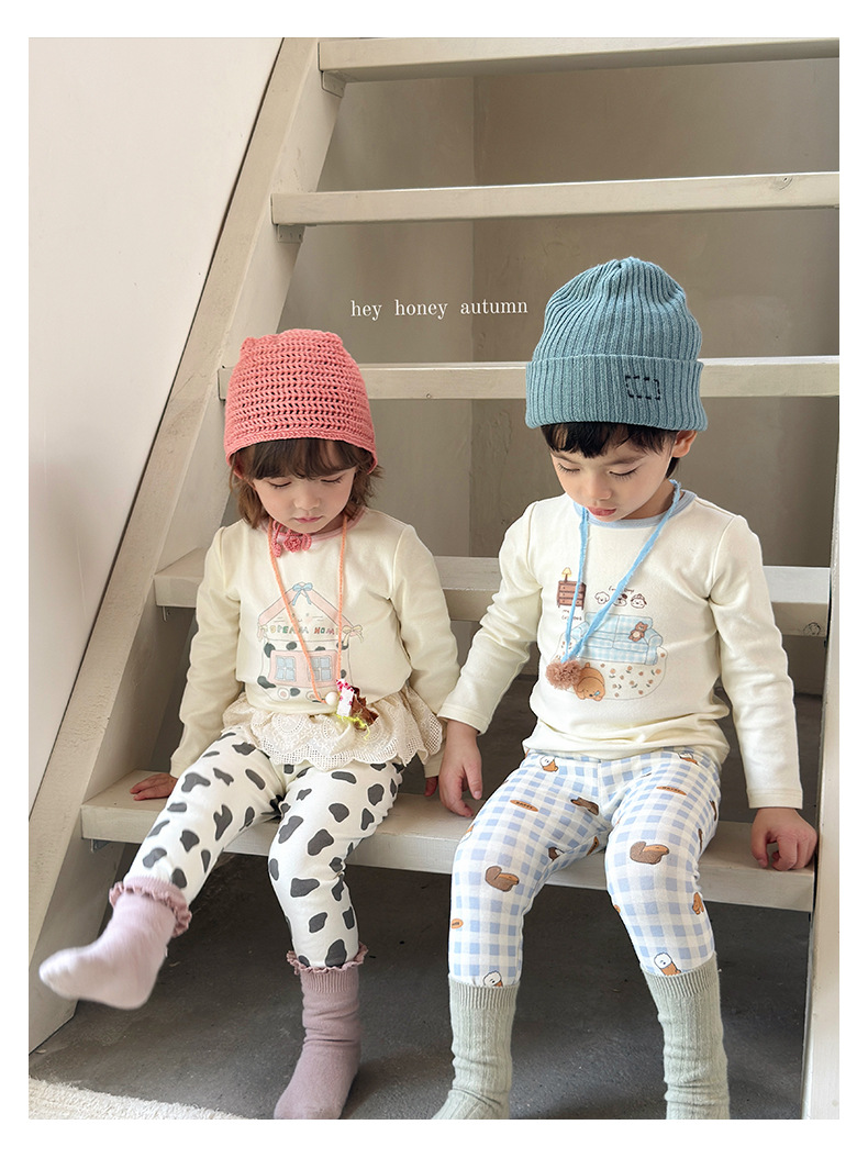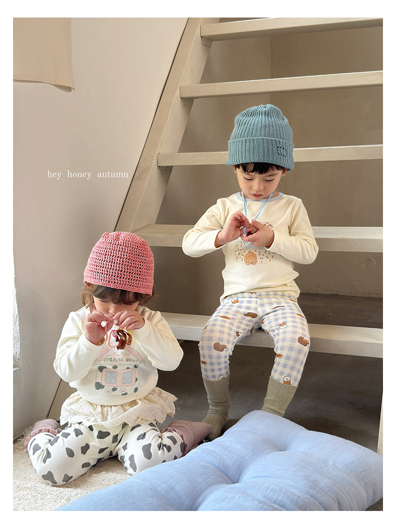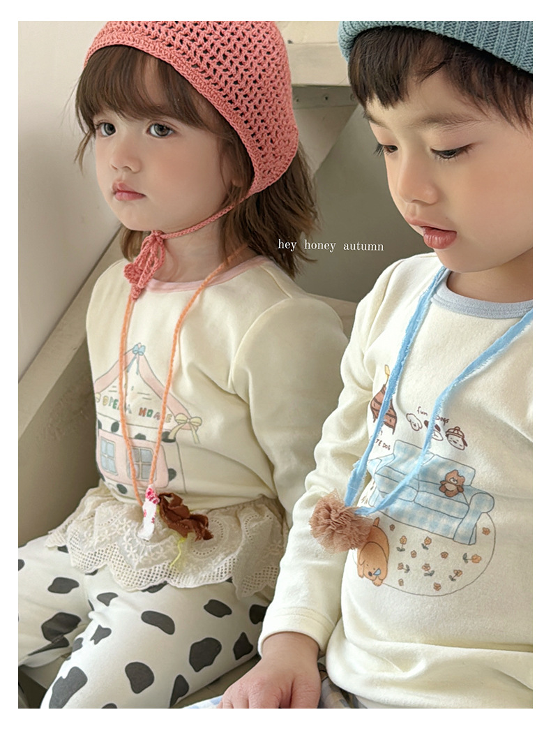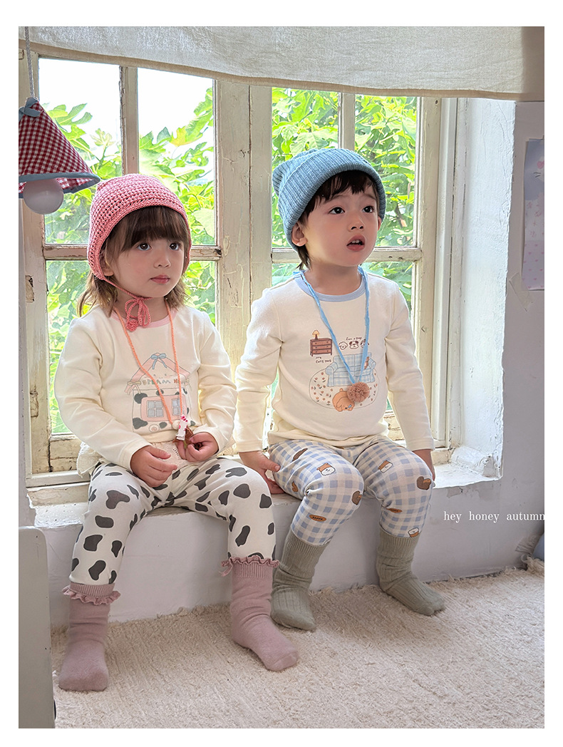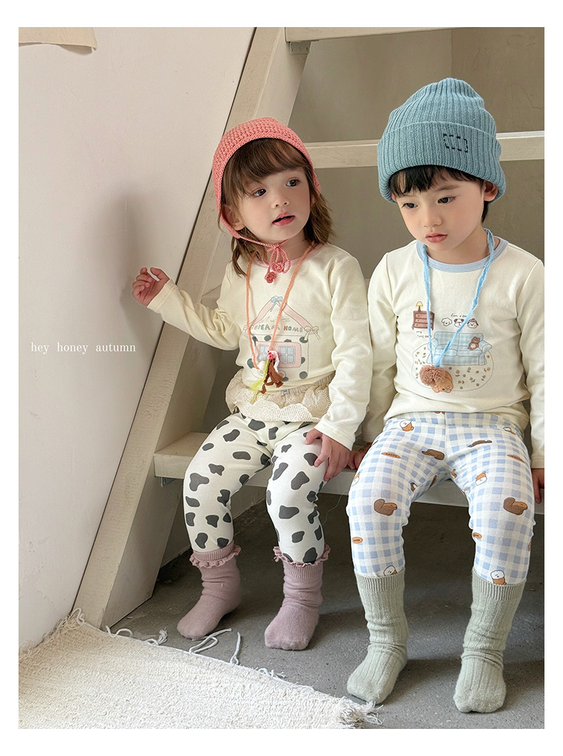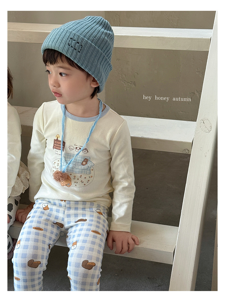 가을 겨울용 280g 어린이용 울 혼방 홈웨어 세트 여아용 A급 순면 잠옷 가을옷 가을바지스토어 가기