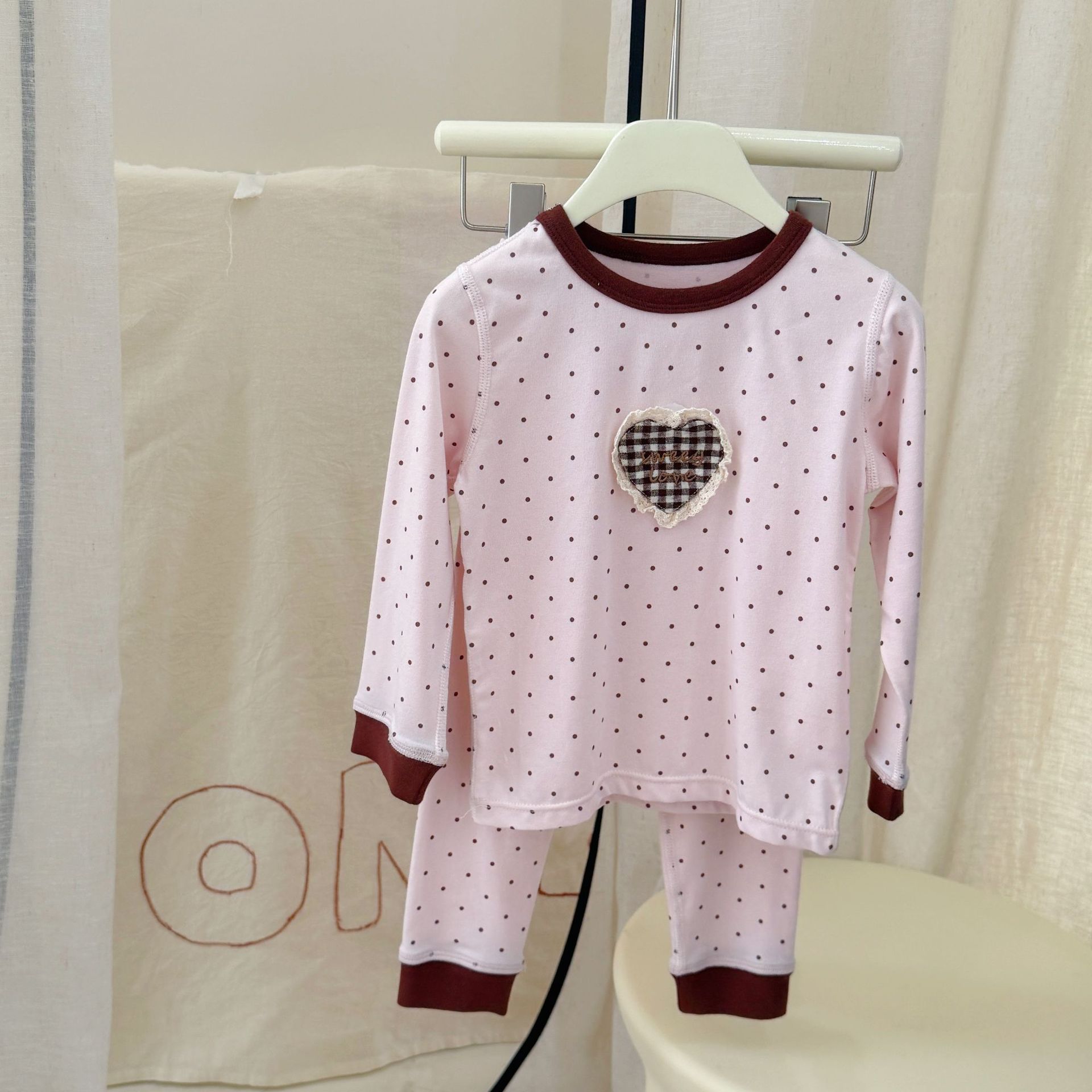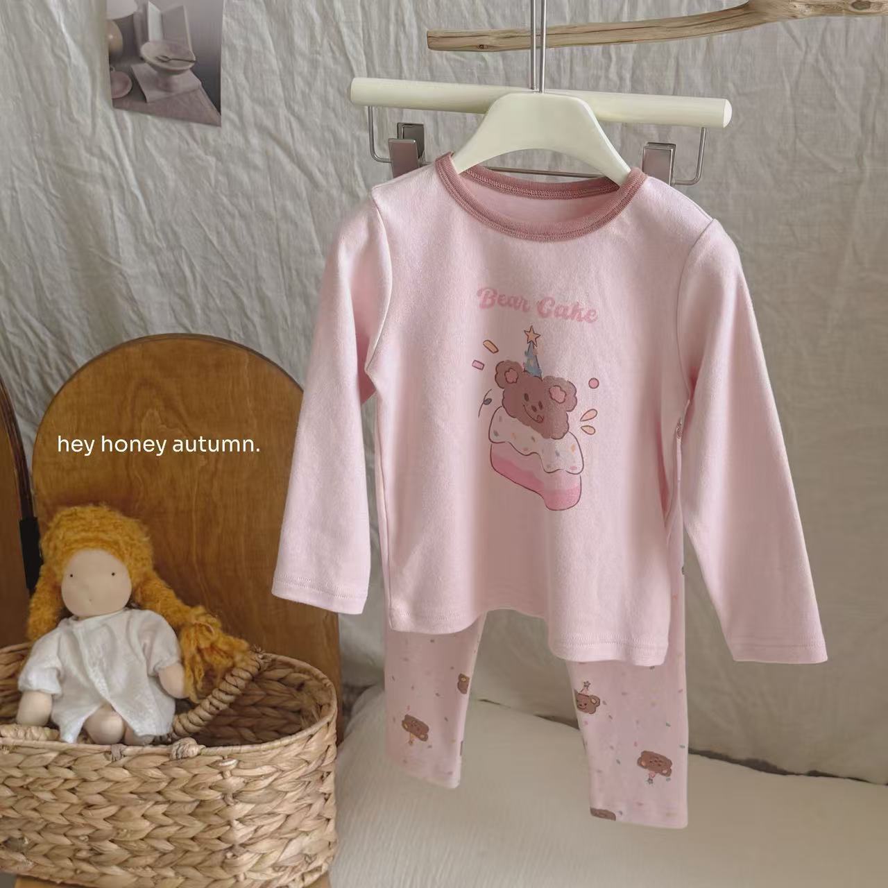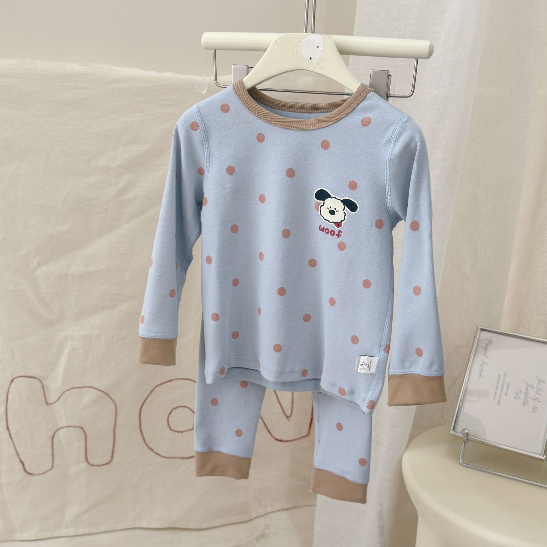 가을 겨울용 280g 어린이용 울 혼방 홈웨어 세트 여아용 A급 순면 잠옷 가을옷 가을바지