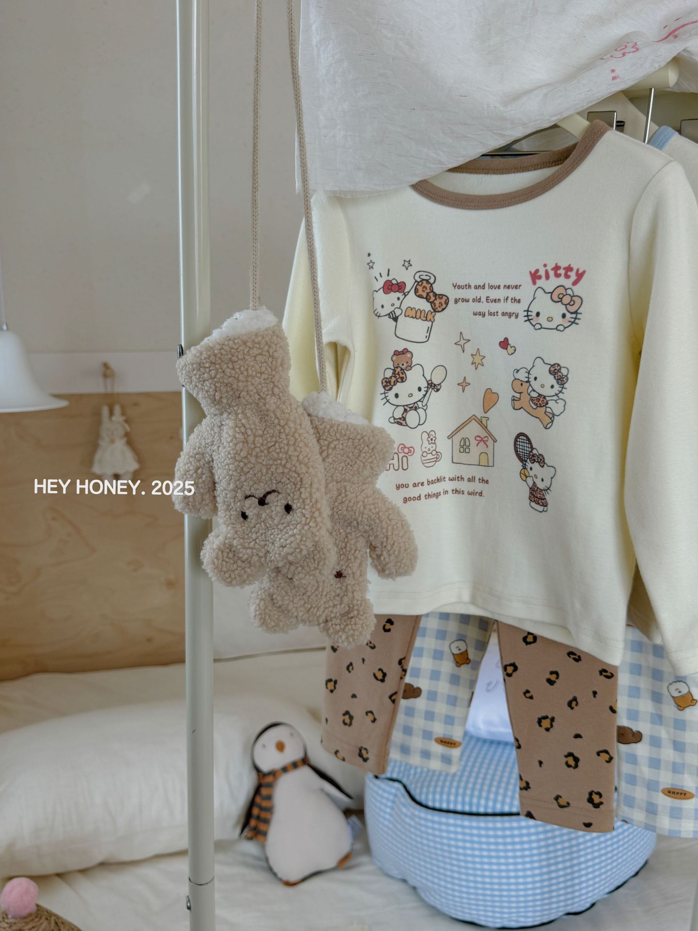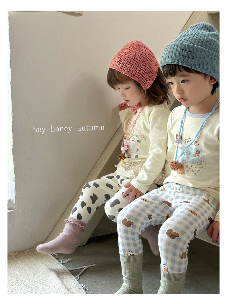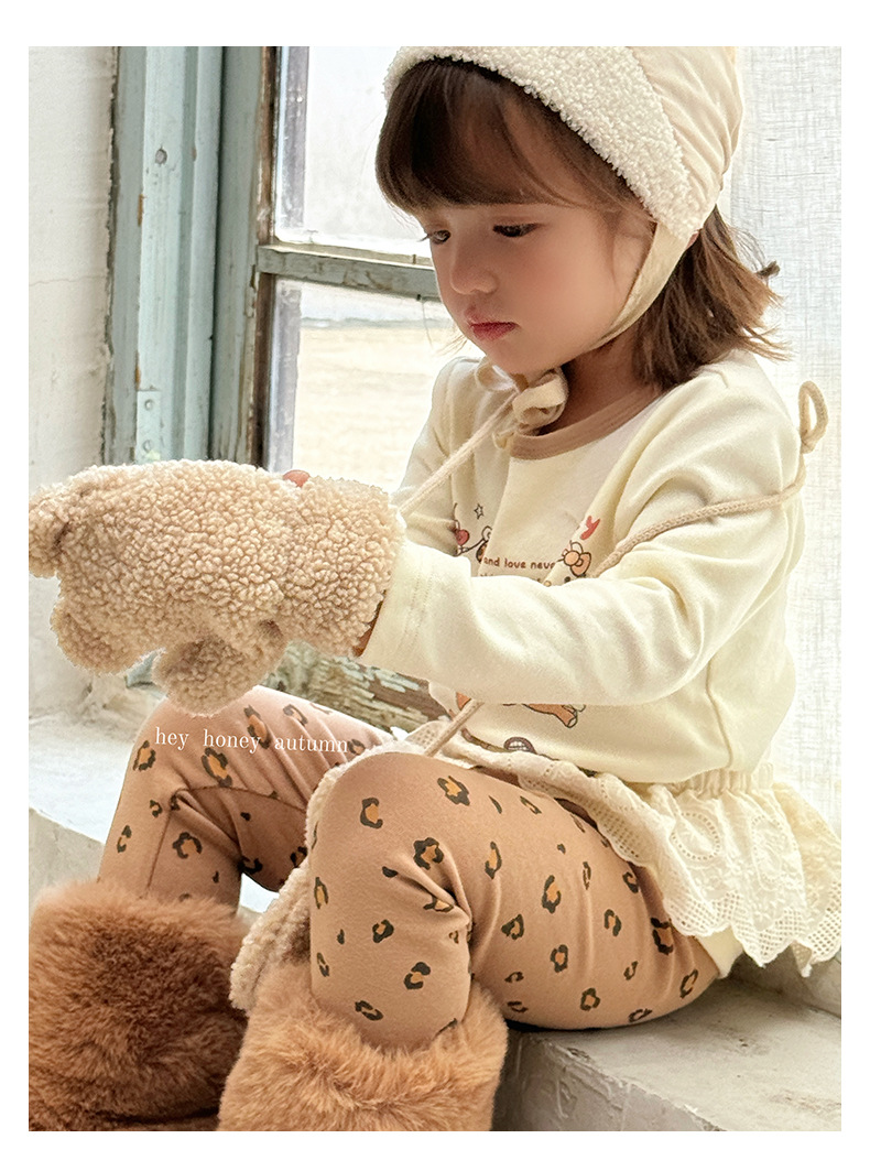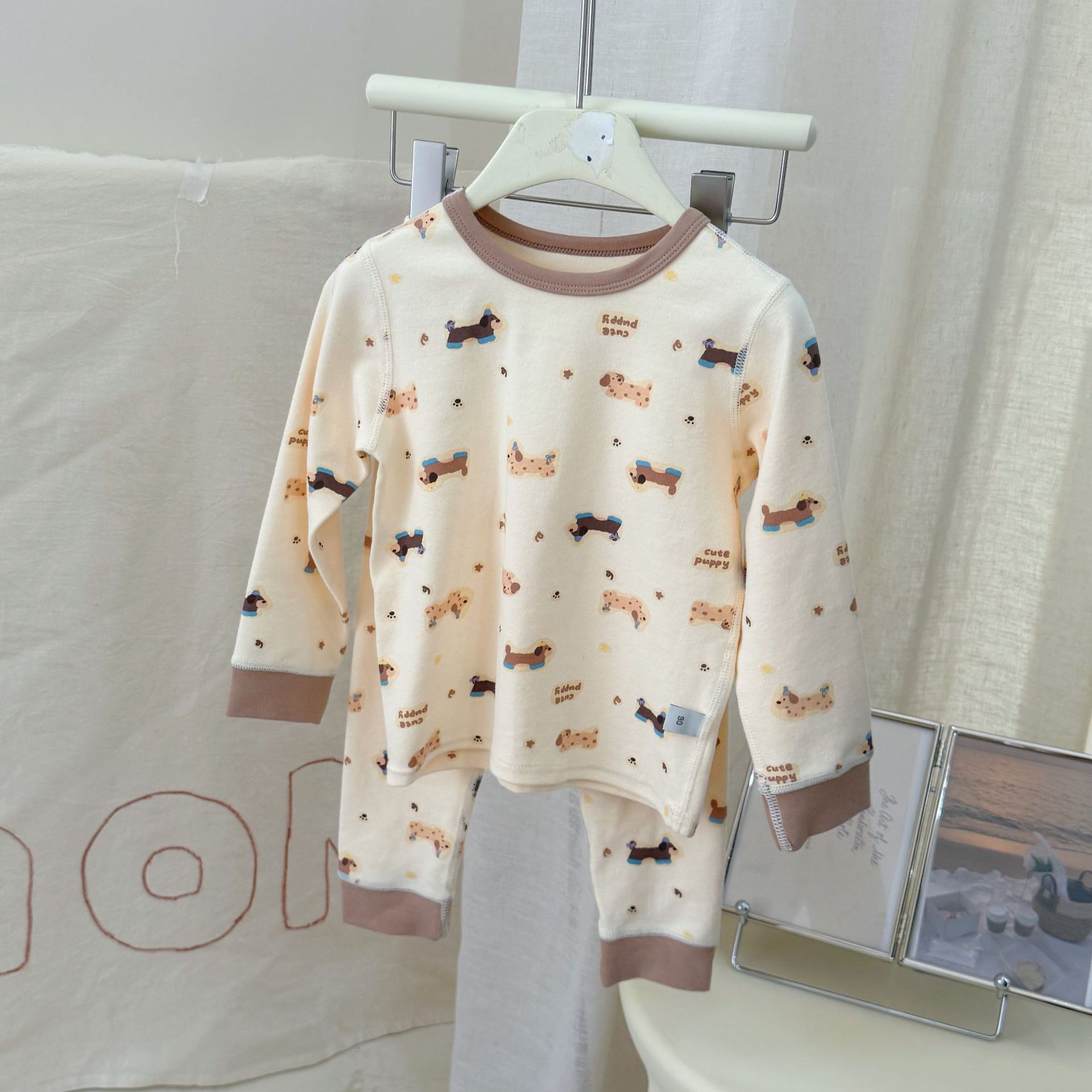 가을 겨울용 280g 어린이용 울 혼방 홈웨어 세트 여아용 A급 순면 잠옷 가을옷 가을바지
