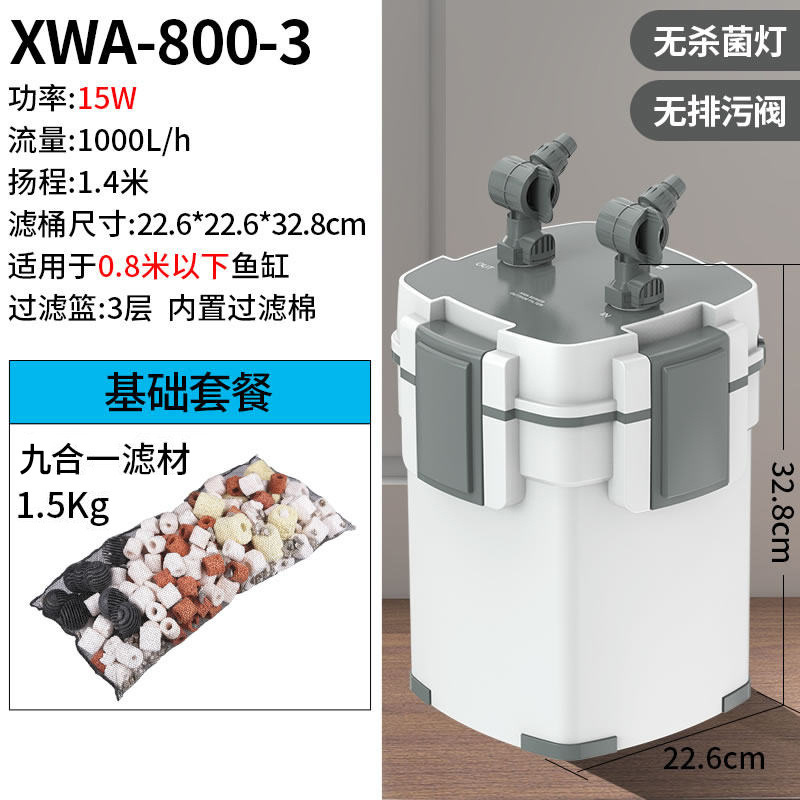 • 15W 일반 모델, 5중 필터, 배수구 포함(0.8 이하 수조에 적용 가능)