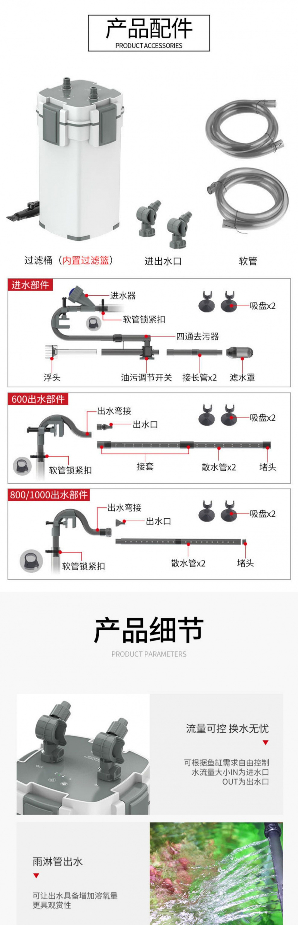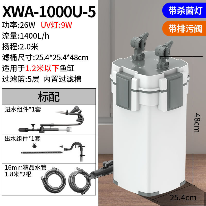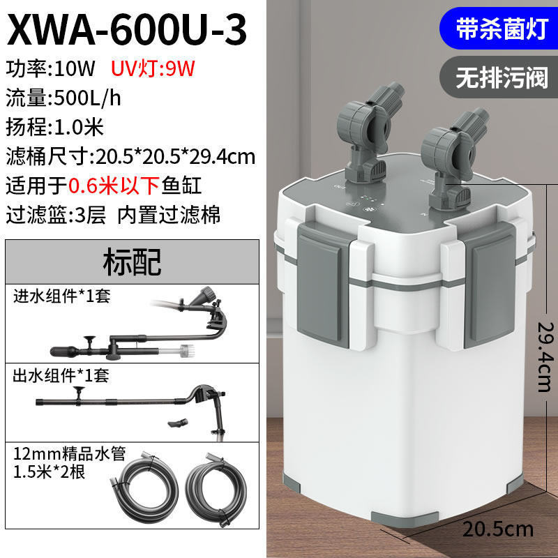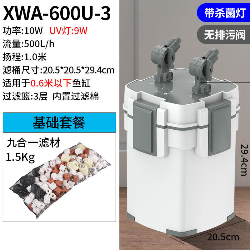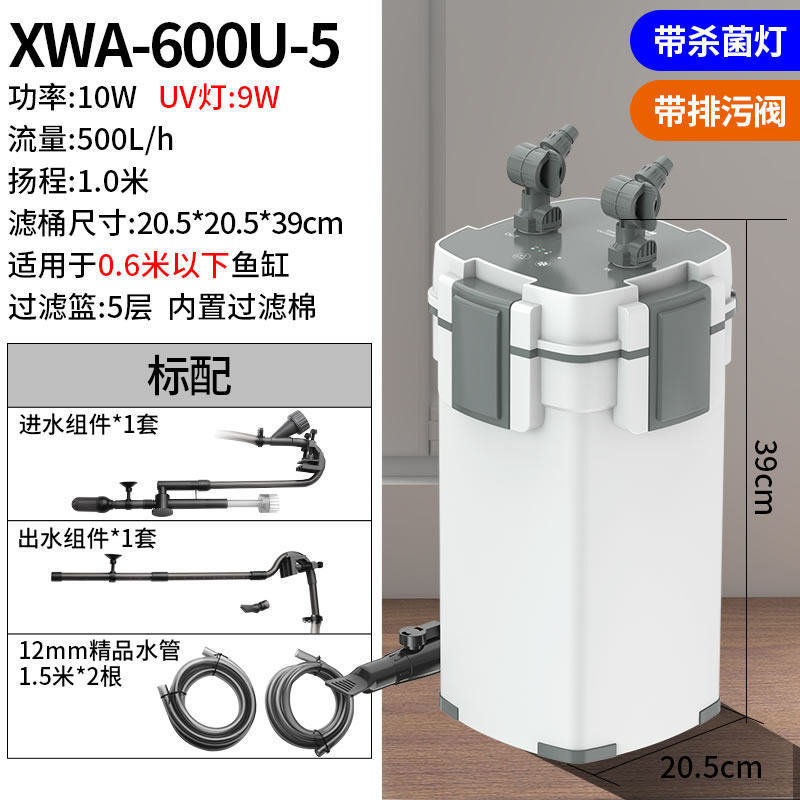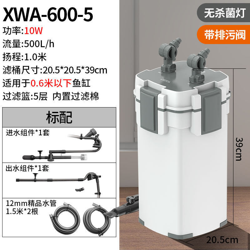 • 10W 살균 모델, 배수구가 있는 5중 필터(0.6 이하 수조에 적용 가능)