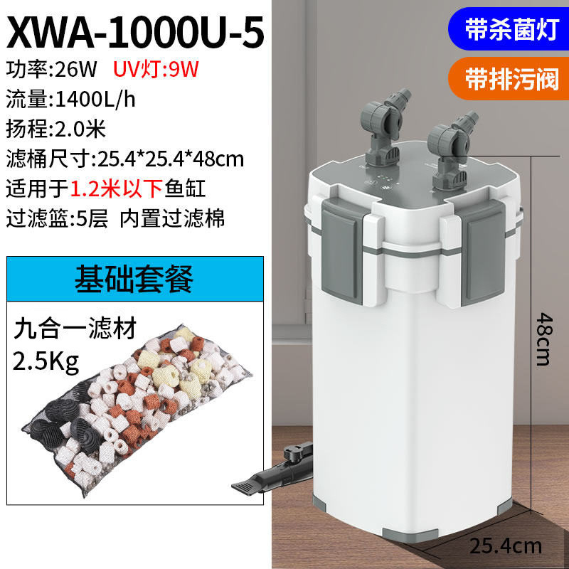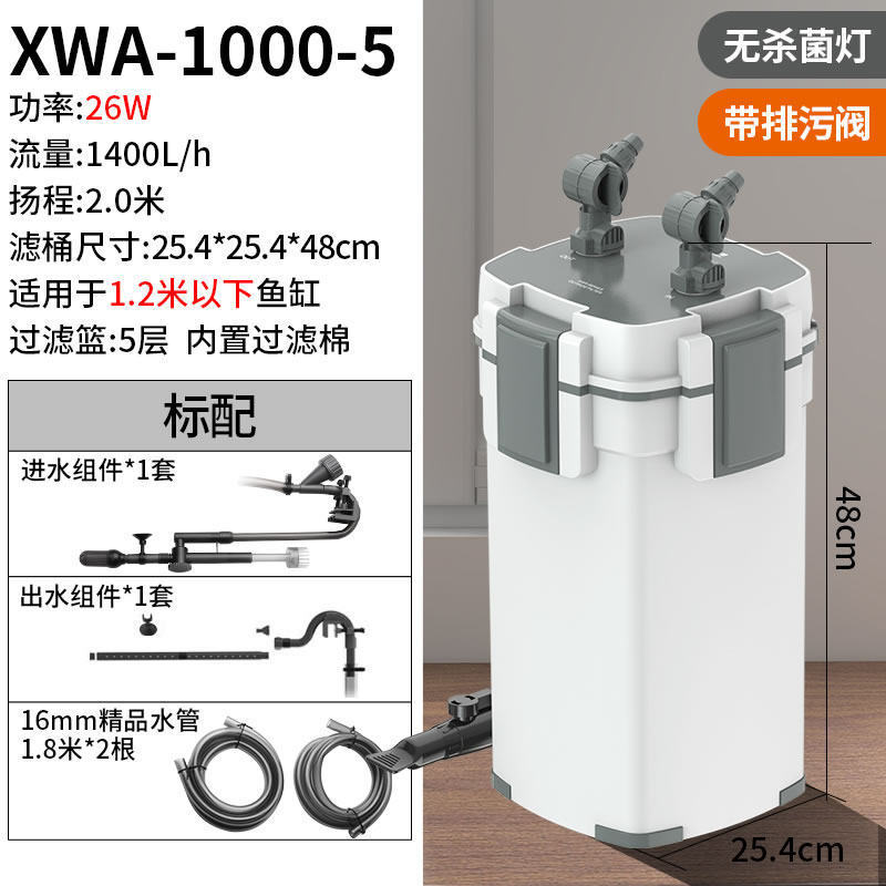 • 26W 살균모델, 5중 여과 (최대 1.2m 어항에 적용 가능)